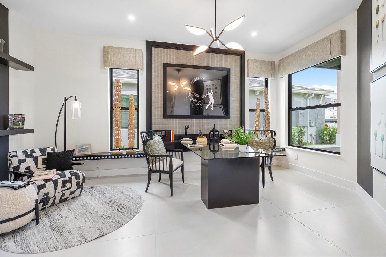 BUILDER MODEL HOME FULLY FURNISHED! Solana Bay is the newest coastal construction community in Avenir. This Laguna floorplan with a transitional exterior elevation is ideally situated on a homesite that provides privacy and offers 4 bedrooms, 3 baths, an open concept, and a 3-car garage. Features in this home include gas tankless water heater, gas W/D, free-standing soaking tub, 32x32 porcelain tile throughout, summer kitchen. This home is truly turnkey with a gourmet kitchen. The clubhouse has resort-style community amenities, including a fitness center, resort-style heated pool, lap pool, tennis courts, and pickleball courts. Square footage is approx.