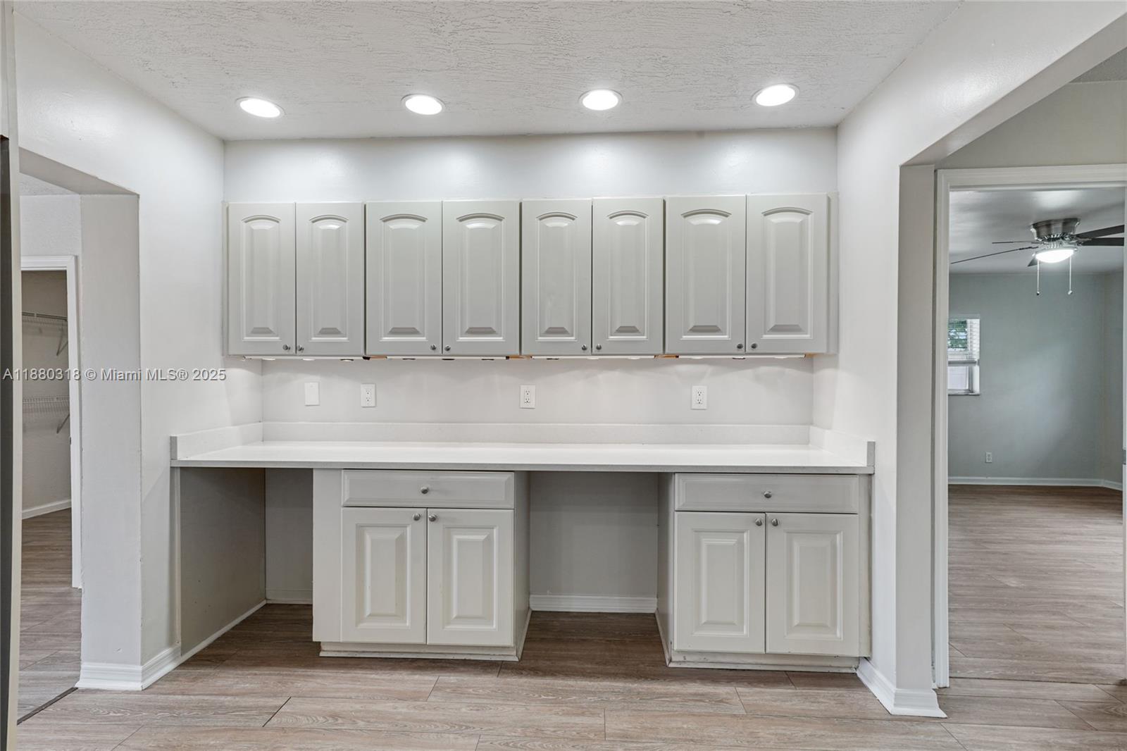 Corner-Lot Home! This 5-bedroom, 3-bath single-family home offers 2,350 sq. ft. of comfortable living space. Features include recessed lighting, ceiling fans throughout, a family room, and a mix of laminate and tile floors. The open kitchen features a large cooking island with a hood, wall oven unit, abundant cabinet storage, and a layout perfect for gatherings. The home also offers a convenient cabana bath with outdoor access. Additional highlights include a utility closet and a fenced pool, ideal for relaxation and entertaining.