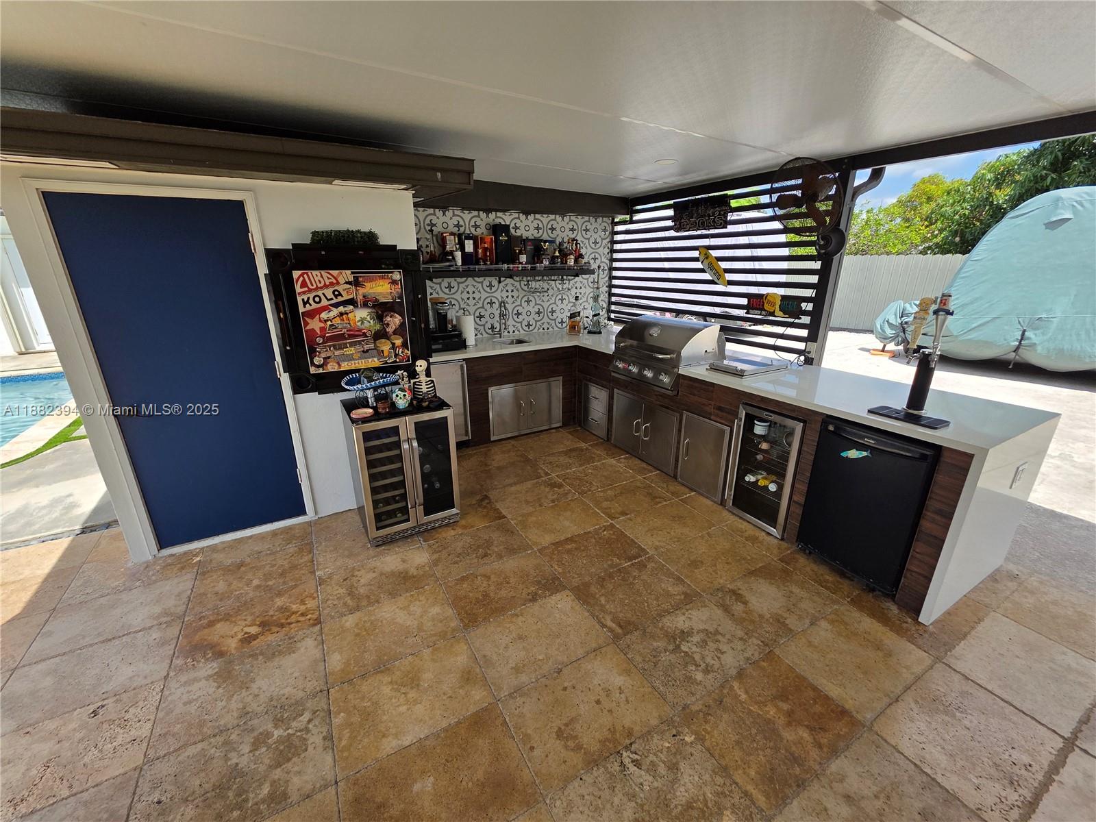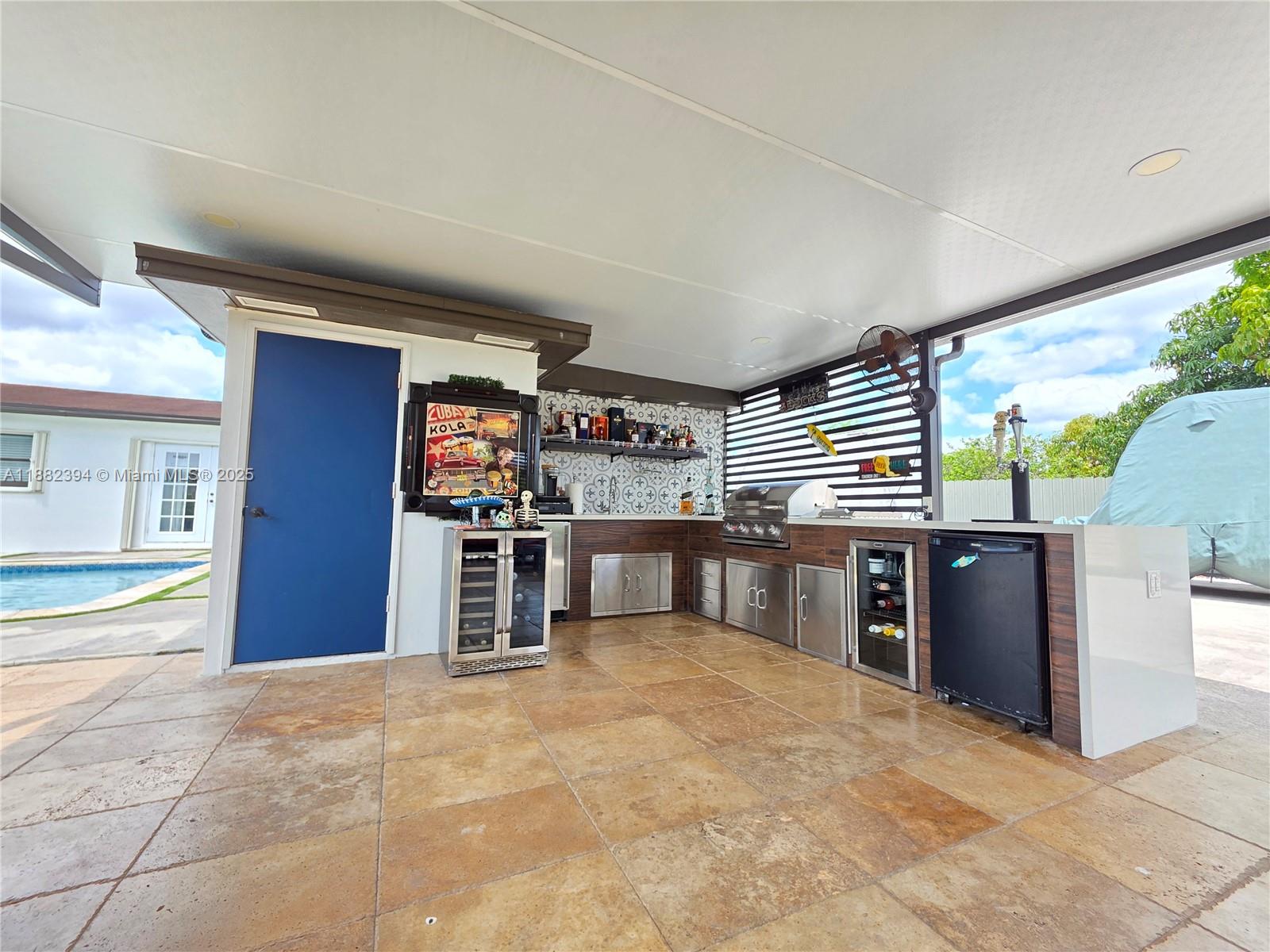 If you are looking for lavish Miami style living this is it! This lovely gem of a home has all the comforts you want! At 4 bedroom and 2 baths, with over 1700 sq ft, with a lovely pool, expansive outdoor spaces, an outdoor kitchen, bar and pergola. You wont find such a complete home. With recent updates throughout, including the ceiling texture removed, updated kitchen bathrooms, roof, pool, terrace and outdoor spaces. The home boasts a large pie shaped lot, with a fenced dog area, concrete slab for RV, Boat and plenty of parking. Beautiful new palms and clusia hedges line the outside landscaping and a beautiful modern front gate protects your property. This home must be seen to be appreciated, pictures don't show the serenity of this beautiful home! Come feel it today!