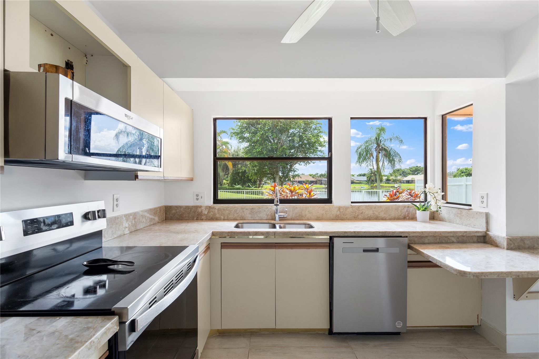 Welcome to Lakefront Living! Charming 3-bedroom, 2-bath desirable split floor plan, upgraded flooring throughout, and new 2024 roof. Wake up to tranquil lake views, watch breathtaking sunsets over the water, or even fish right from your backyard—many neighbors enjoy their own private docks! Community has been newly upgraded with lighted amenities including a pool, gathering space, playground area, tennis, pickleball, and basketball courts. With a super low HOA of just $225 per quarter, you’ll enjoy incredible value without the high costs. Best of all—no memberships or dues are required to play at the nearby Palm Beach County Golf Course, simply pay and play!Ideally located in a top-rated school zone and just minutes from shopping, dining, and conveniences, this home has it all.