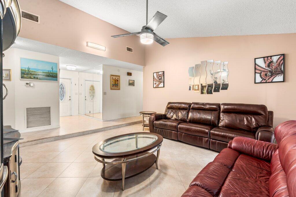 Welcome to this charming well-maintained 3-bed, 2-bath, single-family home in Greenbriar, Boca Chase (55+). This home offers 1,697 interior sqft of comfortable living space + a spacious 2-car garage. Step inside to find a bright and open layout with vaulted ceilings and tile flooring throughout. The updated kitchen connects seamlessly to the formal dining area, making it ideal for everyday living and entertaining. The primary suite features generous closet space and a private en-suite bath. A large Florida room opens to the backyard, where lush landscaping and serene canal views create the perfect setting to relax or host guests year-round. Additional highlights include a 3-year-old roof, low HOA fees, and a prime location just minutes from shopping, dining, golf, and parks.