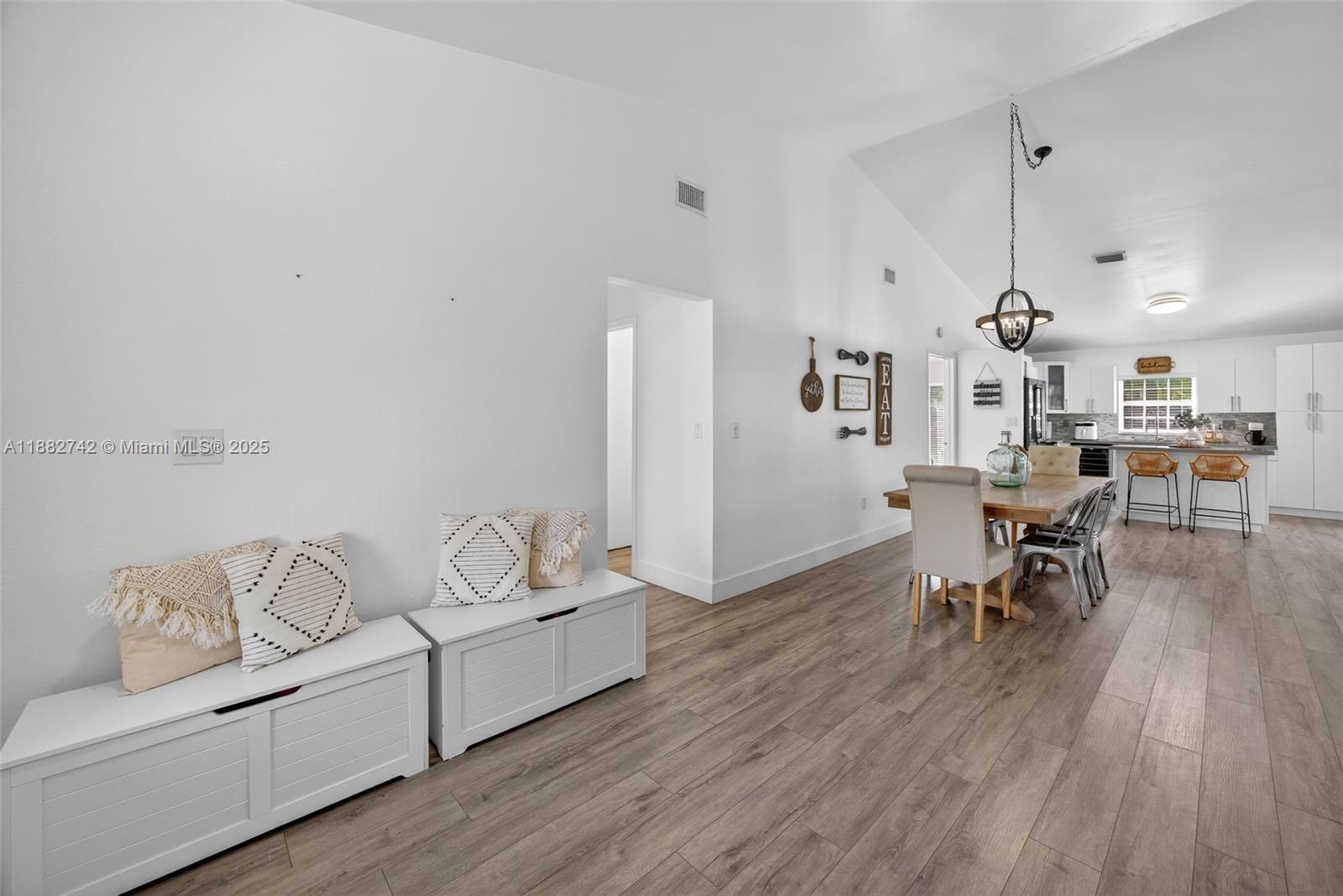 Great opportunity for this 3-bedroom, 1.5-bathroom single-family home. The garage serves as the 3rd bedroom. The property features luxury vinyl flooring throughout. Updated stainless steel appliances, washer, and dryer are included, along with a wine/beverage cooler that can easily be replaced with a dishwasher. Enjoy 2 outdoor covered terraces, a storage shed, a mango tree, and a spacious backyard. Accordion shutters protect all windows. This home is tastefully designed and located in a great neighborhood with nearby schools and shopping. By appointment only.