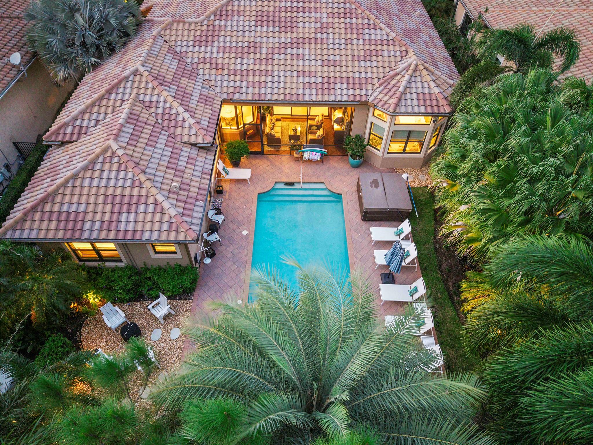 CONTINGENT UNDER CONTRACT-SELLER WILL CONTINUE TO ALLOW SHOWINGS AND WILL WELCOME BACKUP OFFERS! Welcome to your private retreat! This stunning home features soaring ceilings and a bright open floor plan with sought-after southern exposure. The chef’s kitchen impresses with Sub-Zero fridge, Viking gas range, double ovens, walk-in pantry & island seating. Step outside to a screened patio with built-in grill, hot tub, heated saltwater pool framed by lush landscaping and privacy-no rear neighbors. The primary suite enjoys its own wing with dual walk-in closets, while a private in-law suite opens to the pool. Porcelain tile & wood look floors flow throughout home. Impact glass, full-house generator & versatile media/exercise/playroom add convenience. Amenities offer a tremendous lifestyle.