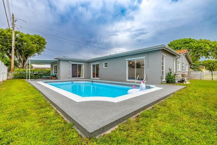 Two master bedrooms , 4 Bedrooms total and 3 Full Bathrooms with garage, Pool and RV Parking. Large open floor plan plus den, porcelain tile floors and Updated Kitchen with sleek countertops, stainless steel appliances, and ample storage.. Close to top-rated schools, parks, shopping, and dining and only 20 minutes to Fort Lauderdale Beach. Submit all offers via MLS Offers. All information provided on MSL to be verify by buyer and buyer agent.