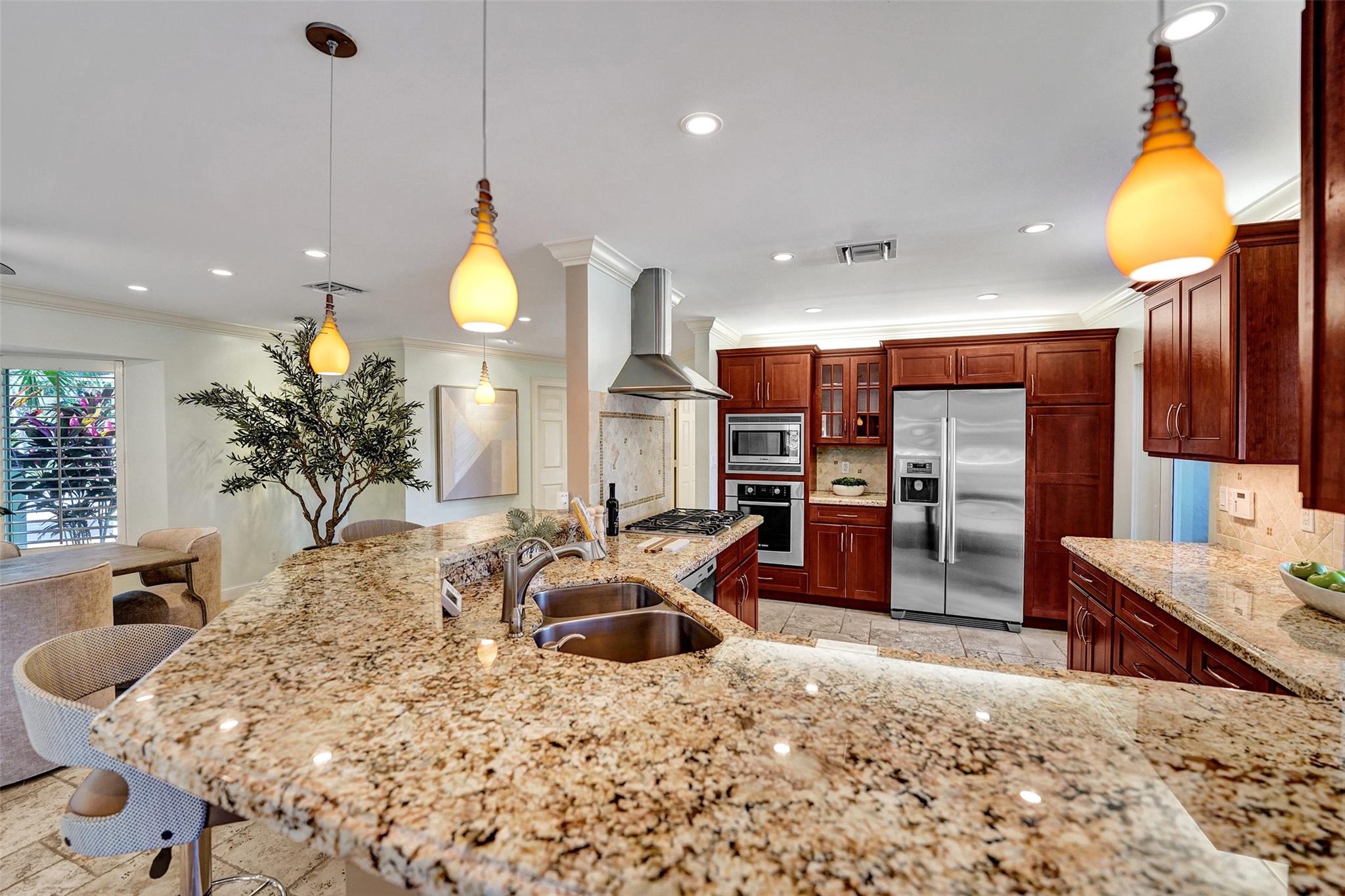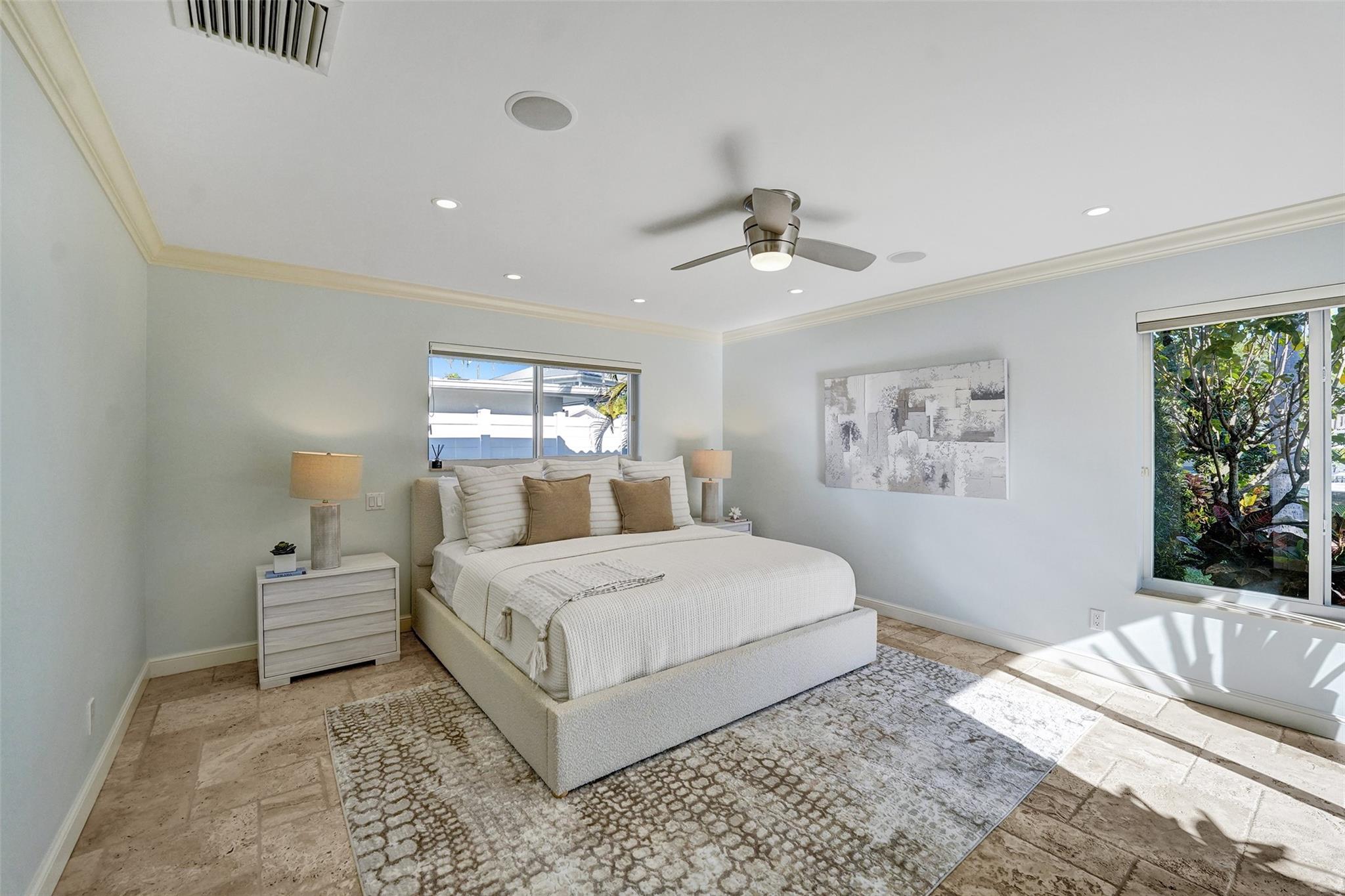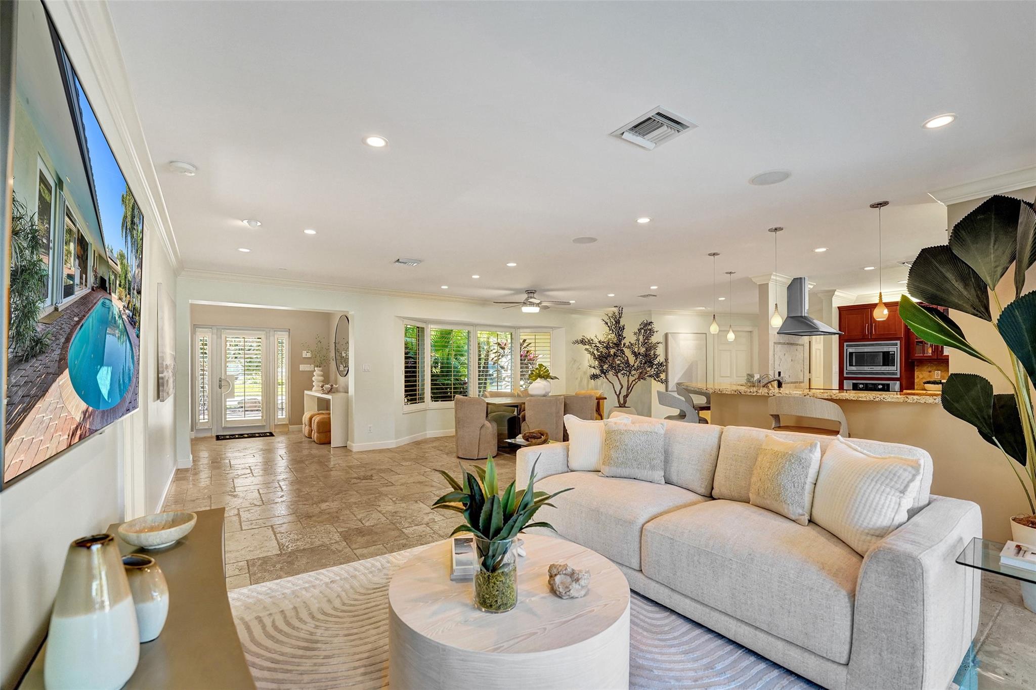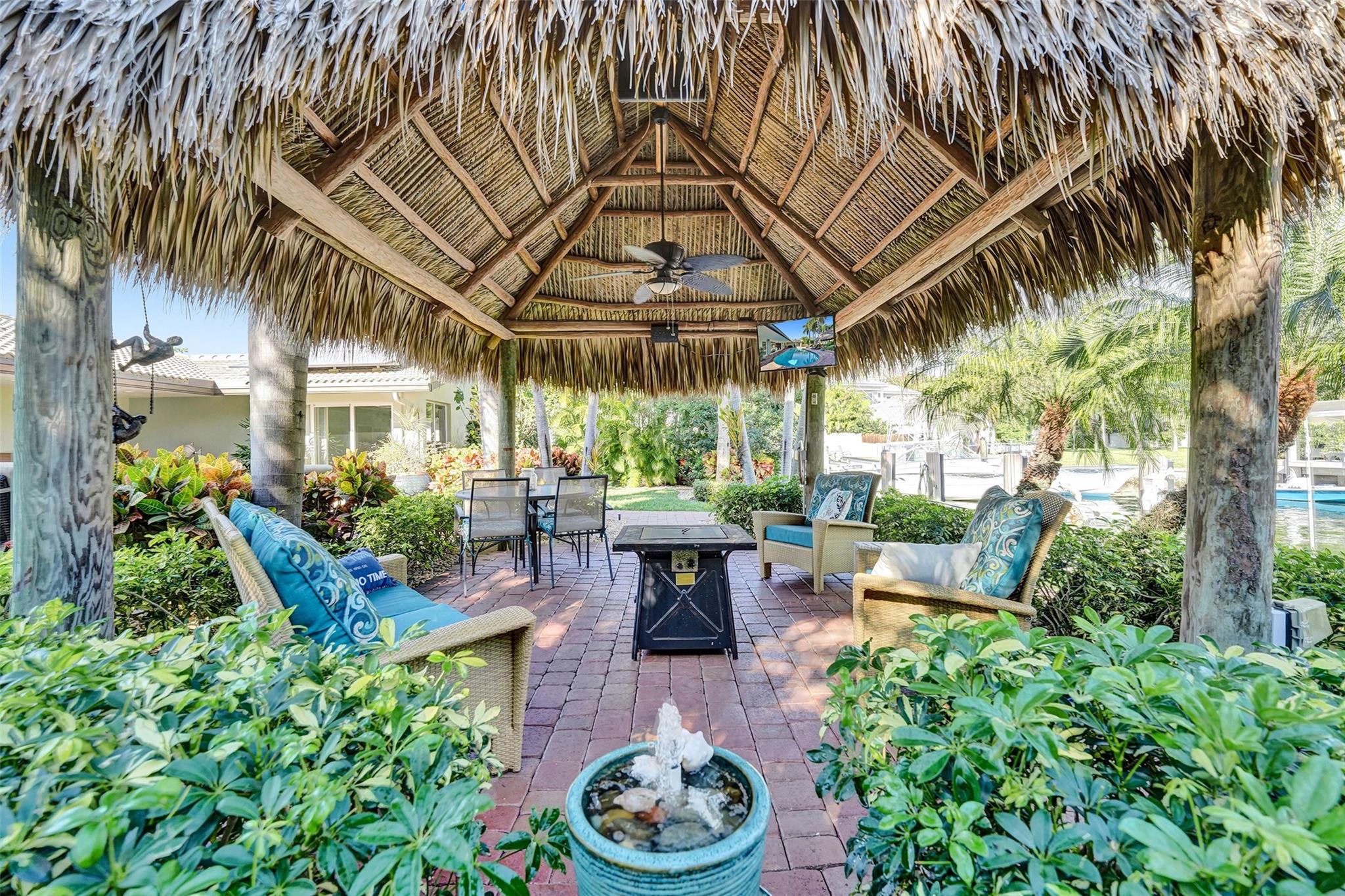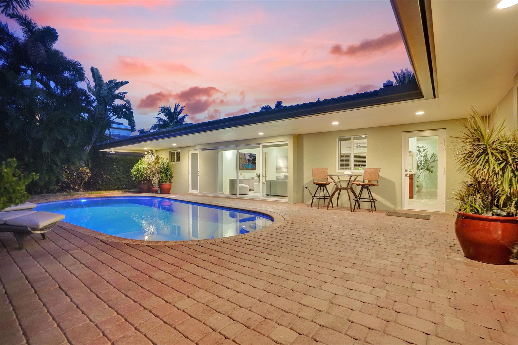 This stunning 2-bed 2-bath w/ office, fully rebuilt in 2008, home on a cul-de-sac offers 80 ft of waterfront & 60 ft of dock, no fixed bridges, & direct access to Intracoastal & ocean—just 6 houses in from the Intracoastal & minutes to the Hillsboro Inlet! Nestled on a spacious 9,600 sq ft lot, this home features a heated pool, an outdoor shower, & a tiki hut—perfect for evening entertaining. Enjoy the added benefits of solar panels & peace of mind w/hurricane impact windows & doors. The property includes a 2-car garage, w/plenty of storage & parking. Boating enthusiasts will appreciate the updated seawall/dock with view of the lighthouse! Income producing dock. A split floor plan provides privacy, & the kitchen boasts Bosch appliances w/ a gas range. Natural Travertine Floors thru out.