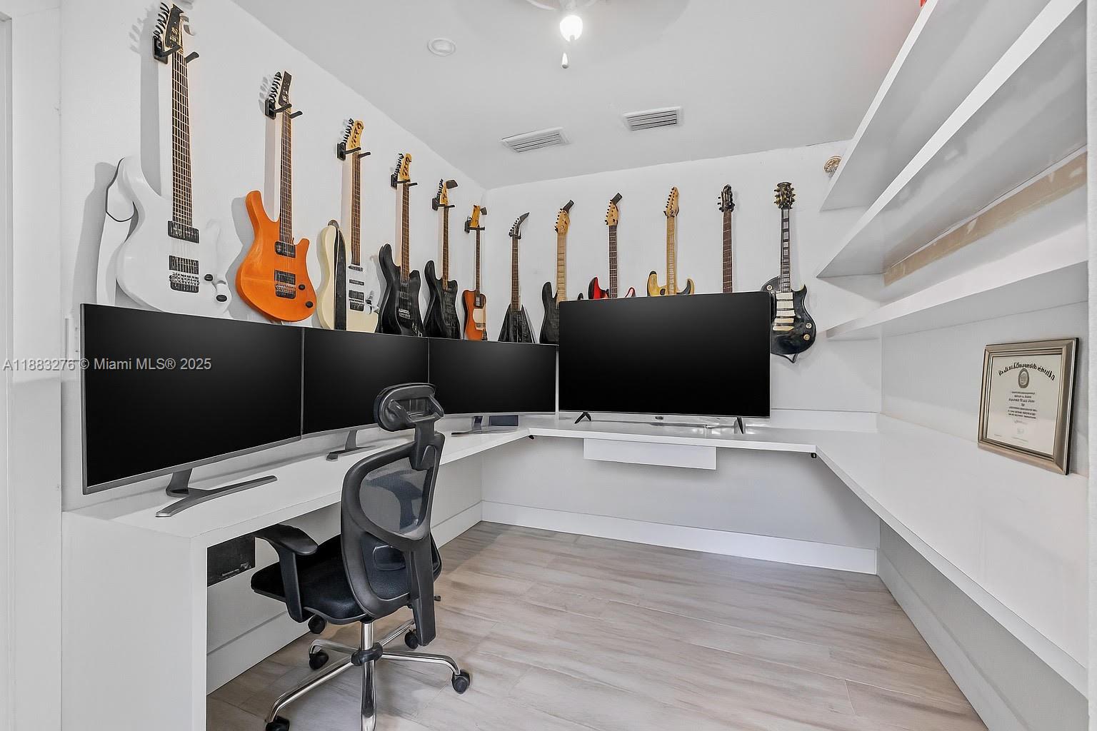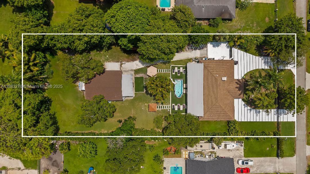 5467 SQ FT HOME. Main house is 3923 SQ FT Guest house is 1544 SQ FT Welcome to your luxurious oasis! Includes 9 real interior rooms; 4 rooms professionally converted to a fully furnished office, functional gym, game room, and Dedicated theater room. Stunning property on a private road, offers you the epitome of luxury, exclusivity, and privacy on a builder’s acre. Fully remodeled in 2024/2025. 6 bedrooms, 3.5 baths and new addition. Open kitchen design with island & quartz counters, SS appliances, impact windows, vaulted ceilings, fireplace, security cameras, putting green/playground, Heated Endless Pool with slide, 2 gazebos, electric aluminum fence, gym, home theater, commercial water purification, lush landscaping featuring 175-ft Royal Palms, 33,500 ft concrete driveway, carport, basketball court, double roof design with skylights 2016/2024. Huge luxurious 700sf master suite with 2025 master bath and family room. Original owner