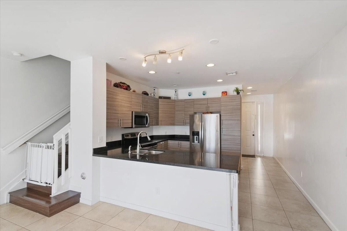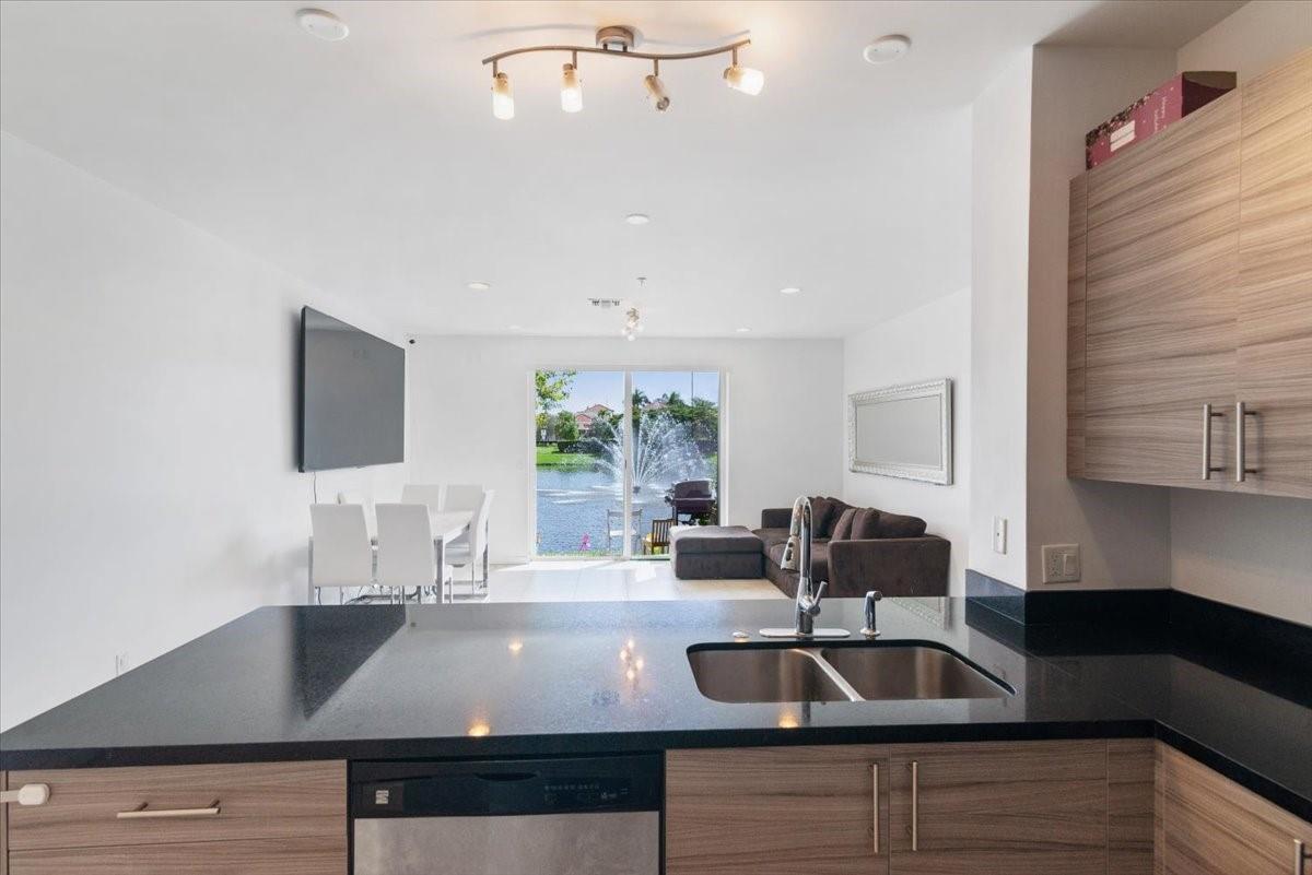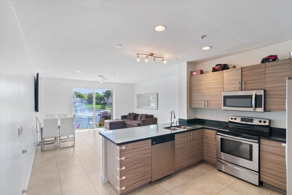 Immaculate 3-bedroom, 2.5-bath townhouse with 1-car garage in the sought-after community of Calabria Phase II. This spacious 2-story residence showcases an open-concept layout with soaring ceilings, tile and laminate flooring throughout, and hurricane-impact windows and doors. The stylish kitchen features stainless steel appliances, granite countertops, and plenty of storage. The upstairs primary suite features a luxurious bath with dual vanities and a walk-in shower. Newer washer & dryer. Residents enjoy community amenities including pools, playgrounds, and a scenic lake trail. Relax at home with serene private lake views, all in a prime location near shopping, dining, and the Turnpike. Low HOA.