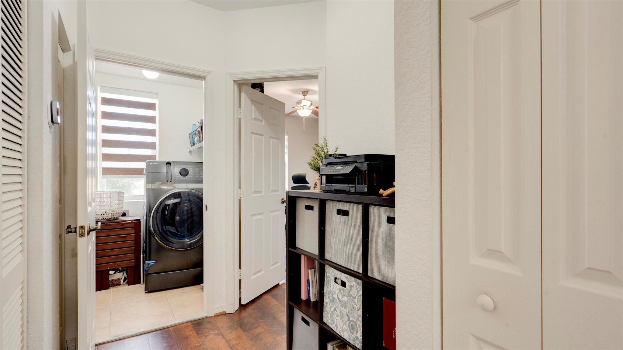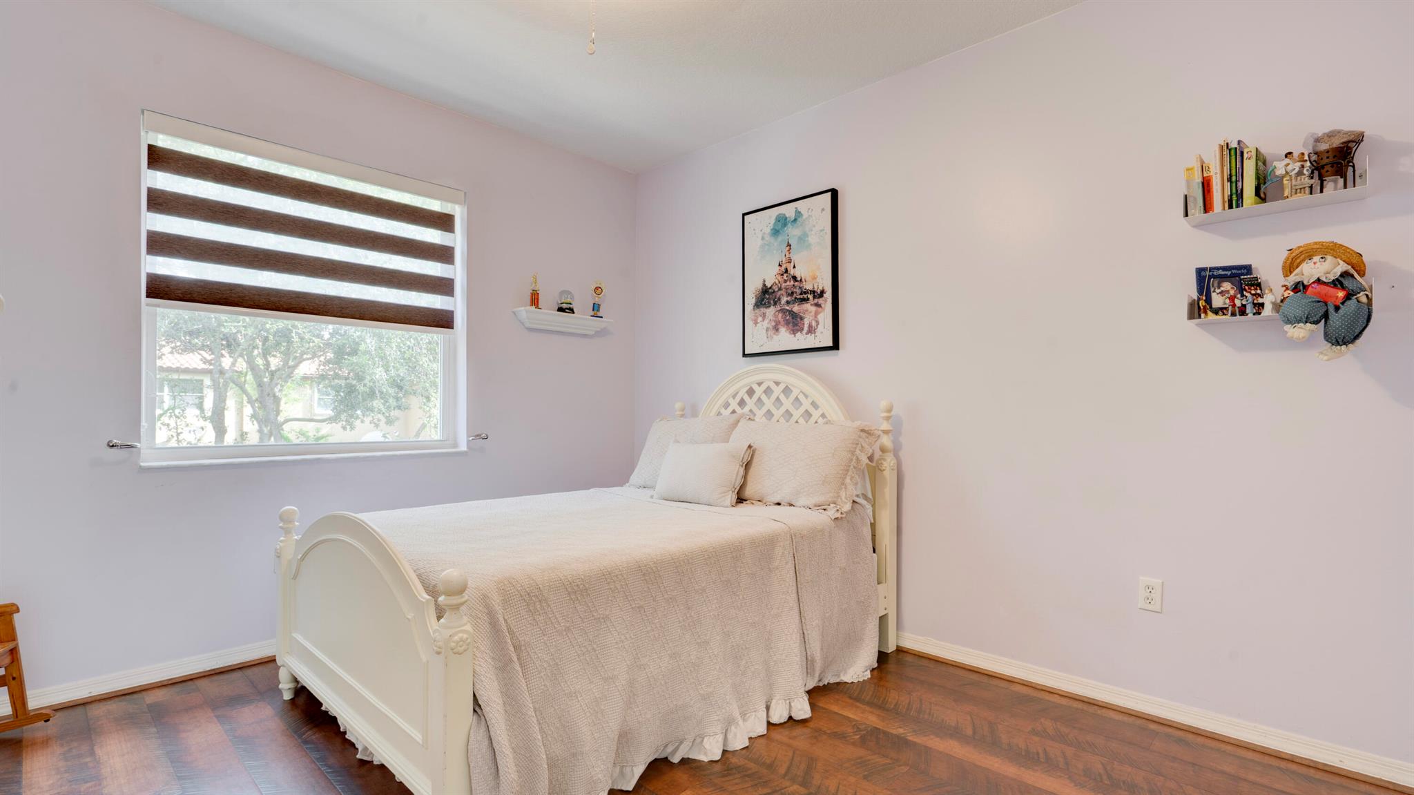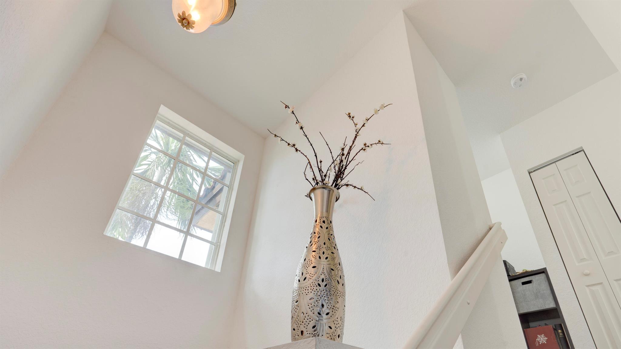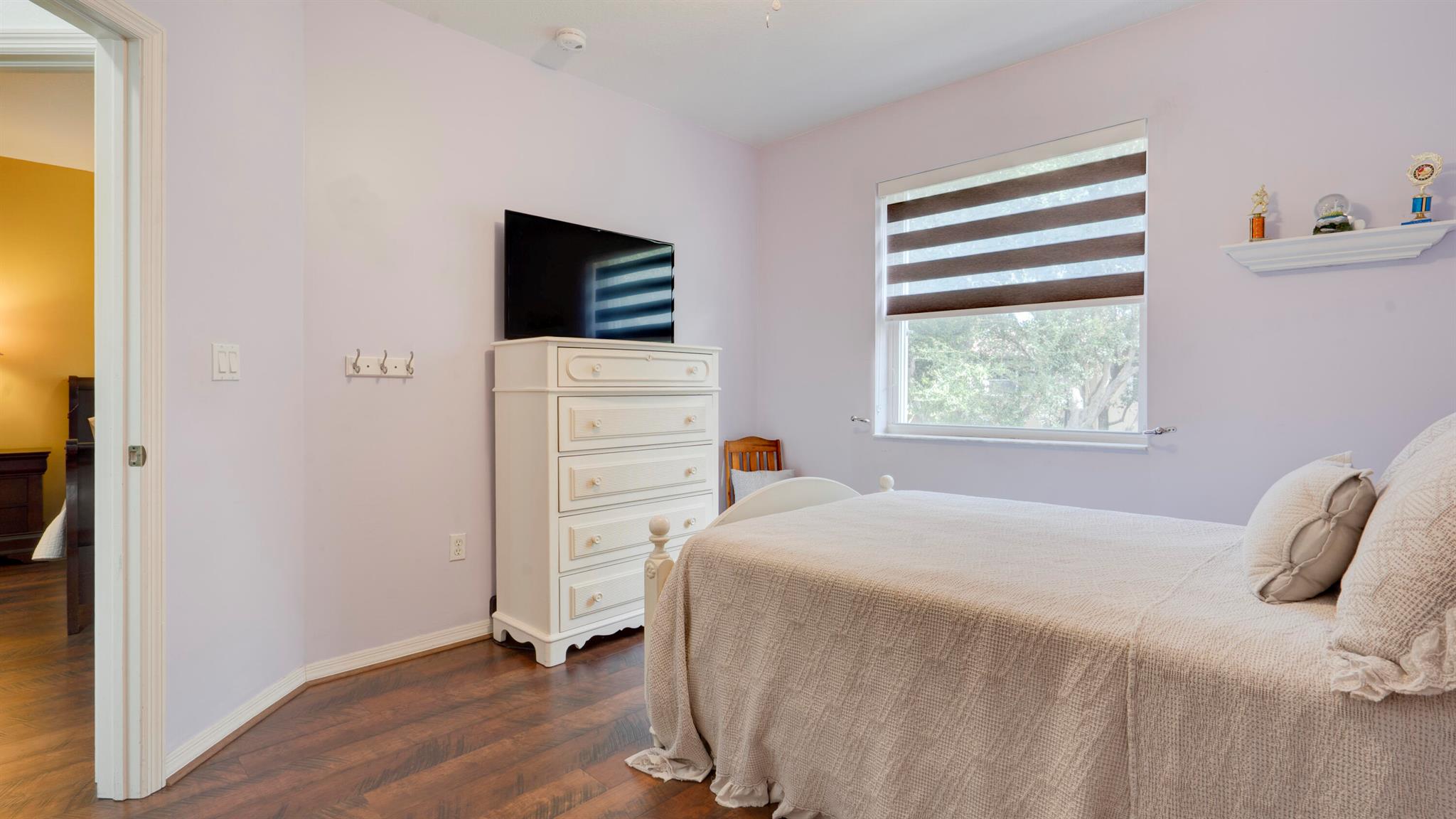 Beautiful corner-lot home featuring soaring ceilings, tray-ceiling dining, and master suite with garden tub. Kitchen boasts granite counters, remodeled cabinetry, SS appliances including new fridge, plus washer/dryer combo. Baths upgraded with quartz, cabinets, and new toilets. Modern touches include new laminate floors, stamped driveway, window treatments, and smart home features: Ecobee thermostat, Ring doorbell, outdoor cameras. Built for efficiency with impact windows/doors, accordion shutters, 2018 high-efficiency A/C under warranty, attic insulation, and full re-pipe. Backyard oasis offers travertine tile, lighting, mature Clusia hedges, and peaceful park views. Community amenities include clubhouse, fitness center, and pool. Move-in ready!