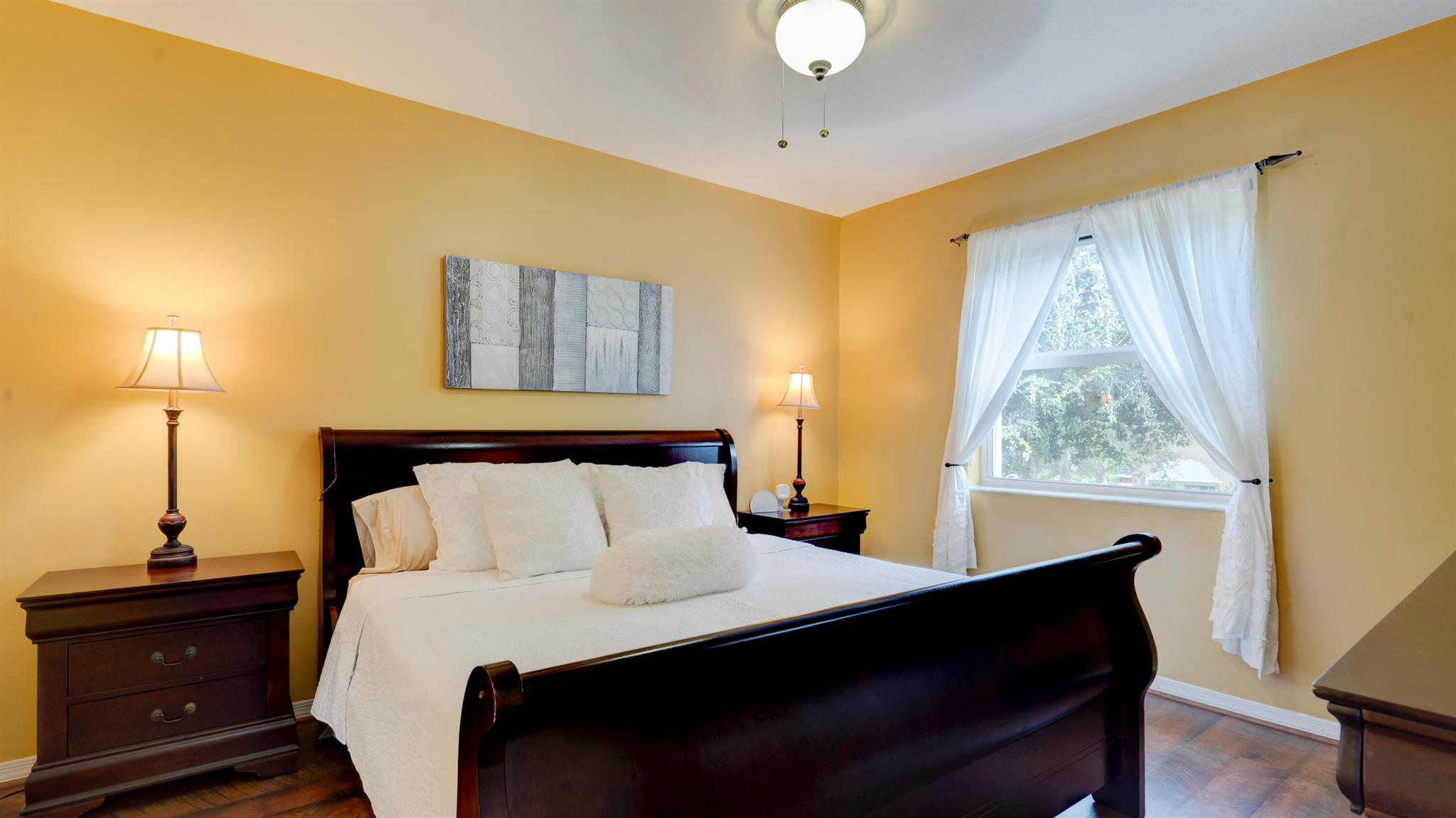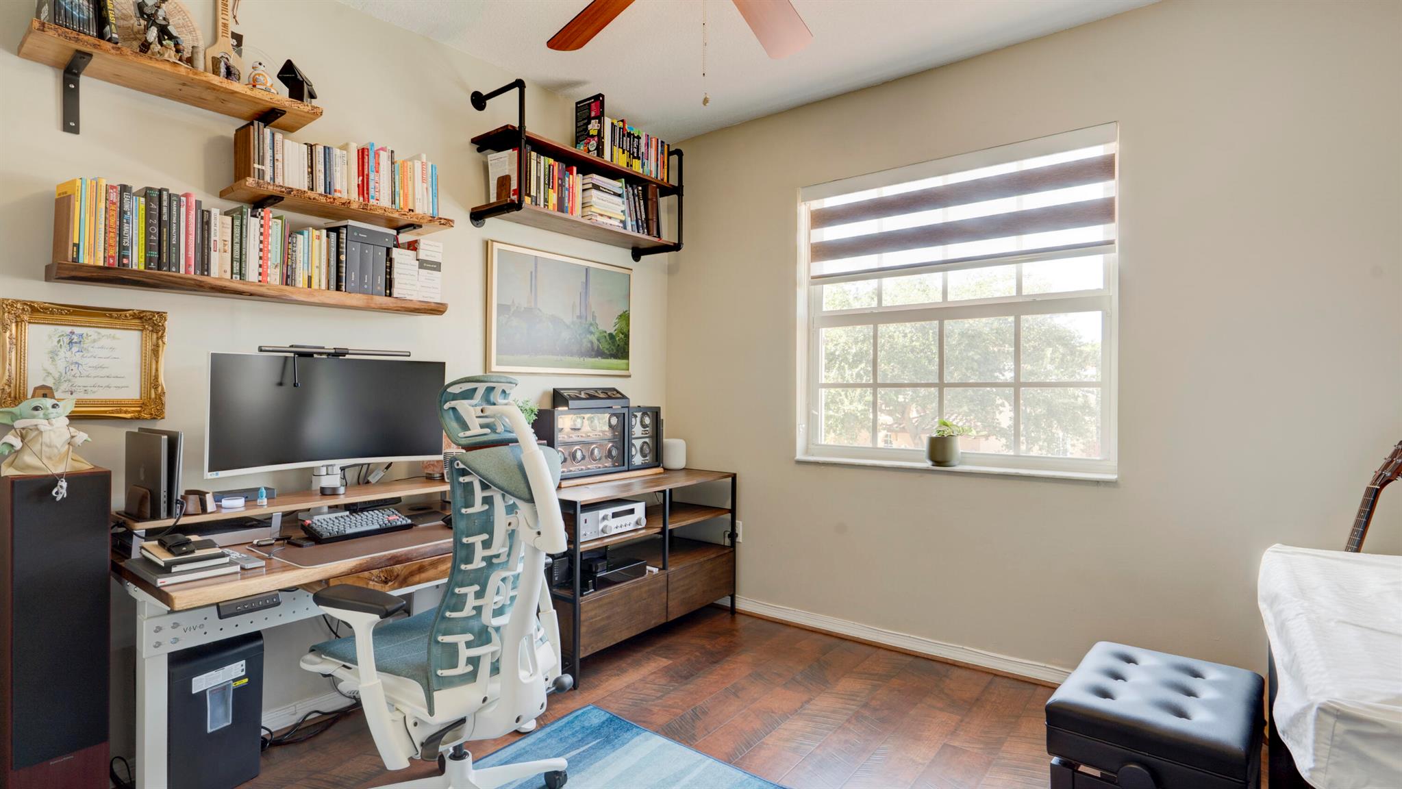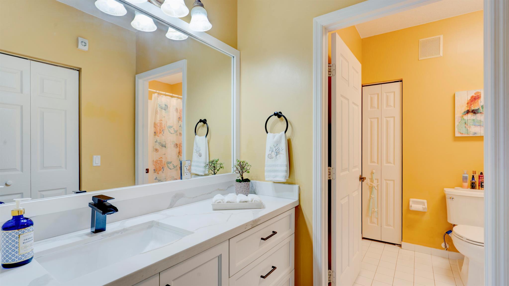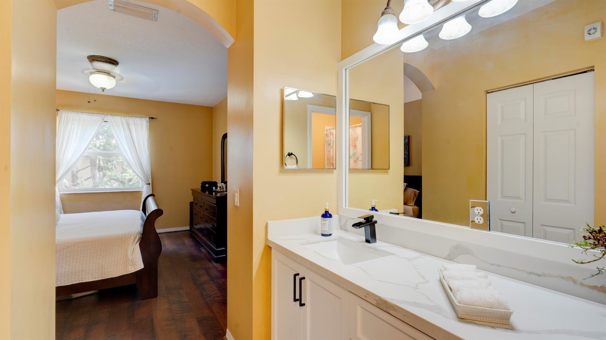 Beautiful corner-lot home featuring soaring ceilings, tray-ceiling dining, and master suite with garden tub. Kitchen boasts granite counters, remodeled cabinetry, SS appliances including new fridge, plus washer/dryer combo. Baths upgraded with quartz, cabinets, and new toilets. Modern touches include new laminate floors, stamped driveway, window treatments, and smart home features: Ecobee thermostat, Ring doorbell, outdoor cameras. Built for efficiency with impact windows/doors, accordion shutters, 2018 high-efficiency A/C under warranty, attic insulation, and full re-pipe. Backyard oasis offers travertine tile, lighting, mature Clusia hedges, and peaceful park views. Community amenities include clubhouse, fitness center, and pool. Move-in ready!