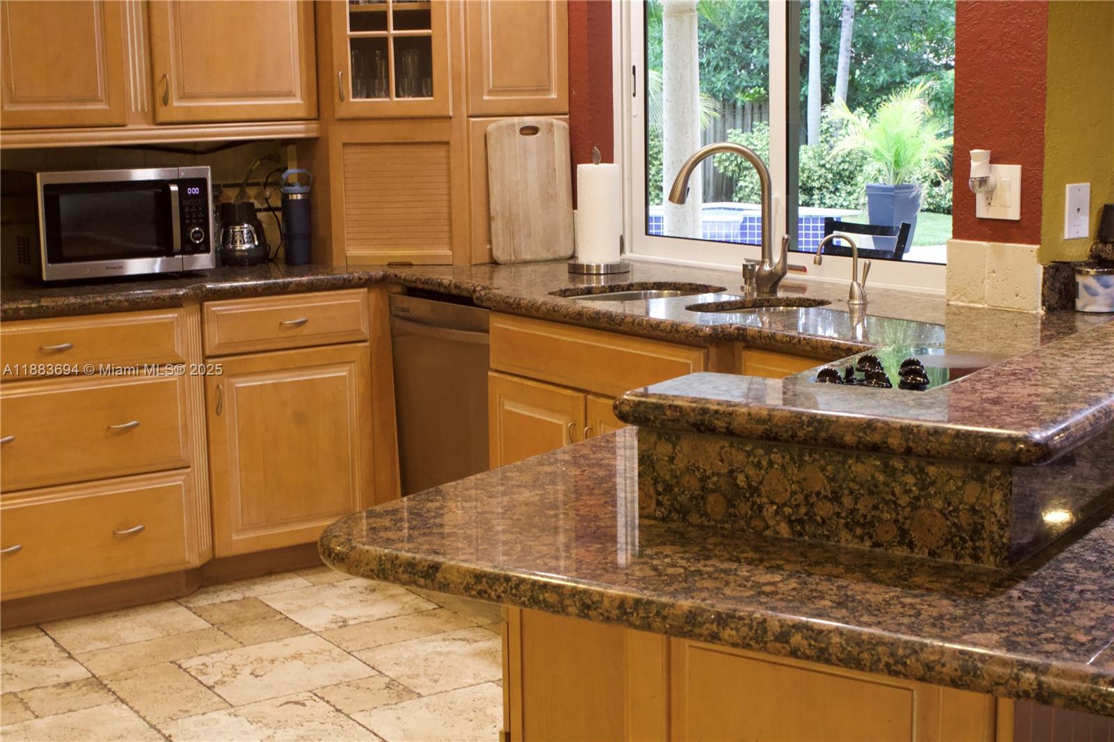 Luxury, comfort, and functionality. Step into the oversized master suite featuring a spa-like bathroom with a supersized shower, ceiling-mounted rainfall system, soaking tub, and a custom-designed walk-in closet with divided sections for maximum organization. The home is secured with impact windows and doors, and the spacious kitchen is built for gathering—complete with a large counter bar that invites family and friends to come together. Enjoy the beautifully designed backyard oasis with a sparkling pool, waterfall feature, and serene waterfront views. Feel the refreshing breeze as you relax outdoors, or fire up the built-in brick pizza oven for the ultimate entertaining experience. Granite countertops throughout add the perfect finishing touch to this already impressive home.