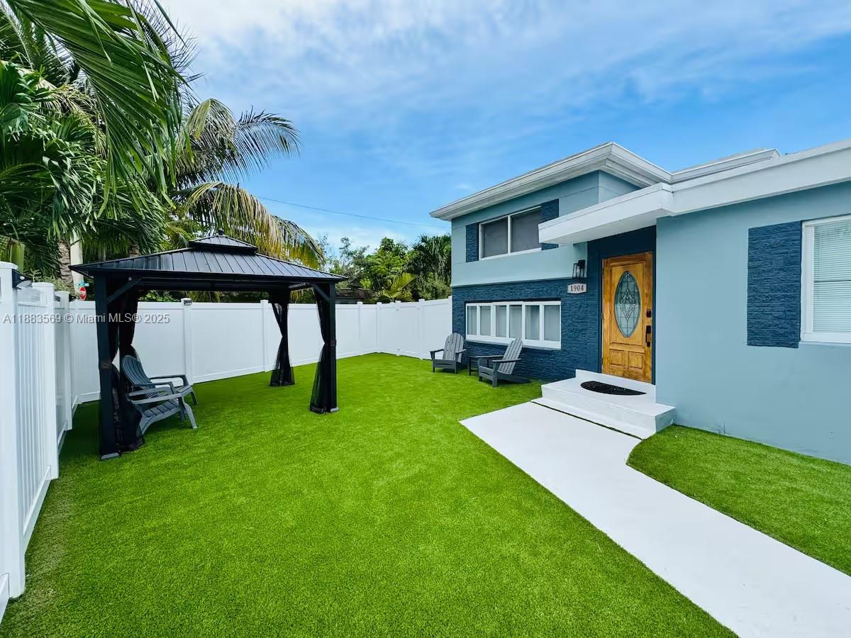 This unique multifamily property offers two separate residences on a spacious corner lot, blending style, comfort, and investment potential. The main home is a fully furnished 3-bedroom, 2-bathroom retreat featuring marble and tile flooring, an open-concept layout, and abundant natural light. Adjacent to it is a private 2-bedroom, 1-bathroom guest house with its own entrance and utilities—ideal for family, guests, or rental income. Located just 10 minutes from the Hard Rock Hotel & Casino, 12 minutes to Las Olas Boulevard, and only 7 minutes from the airport, this property offers exceptional convenience. Whether you're seeking a refined primary residence or a smart income-generating opportunity this home delivers versatility and modern appeal in one of South Florida’s most desirable areas.