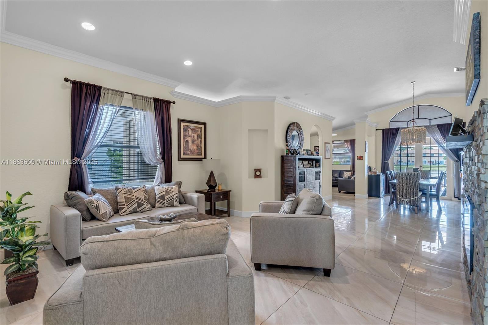 This beautifully remodeled single-story lakefront home is tucked away on a peaceful street and sits on an oversized lot of nearly 10,000 sq. ft. with more than 80 feet of water frontage, offering stunning sunset lake views, & a fully private yard with a pool, spa, & custom covered terrace ideal for entertaining. Featuring 4 bedrooms & 3 bathrooms, the home offers a split floor plan, high ceilings, a remodeled kitchen & bathrooms, oversized porcelain tile floors, crown molding, recessed lighting, & spacious living, dining, & family rooms. Large primary suite, walk-in closet, upgrades such as a newer tile roof, accordion shutters, & a 2-car garage add peace of mind. Somerset Country Club/Vizcaya is a 24-hr gated community, easy access to I-75, the Florida Turnpike, shopping, and dining.