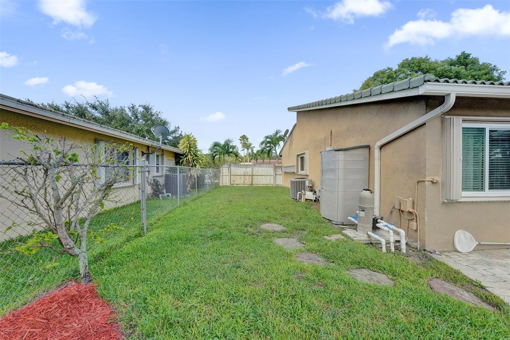 Great price adjustment!! Corner lot, large backyard, open air patio, mature trees, swimming pool. Glass sliders across the back of property allow for the beautiful outside view. New energy efficient windows Aug 24, Accordion shutters, New Crown Molding through out, granite kitchen counters, stainless appliances, bamboo flooring in two of bedrooms, under air laundry, two car garage, impact garage door. No HOA. This neighborhood is one of the best in Coral Springs, walking distance to three great schools, nearby tennis center, aquatic center, dog park and ice rink. Easy access to the Sawgrass Expressway.