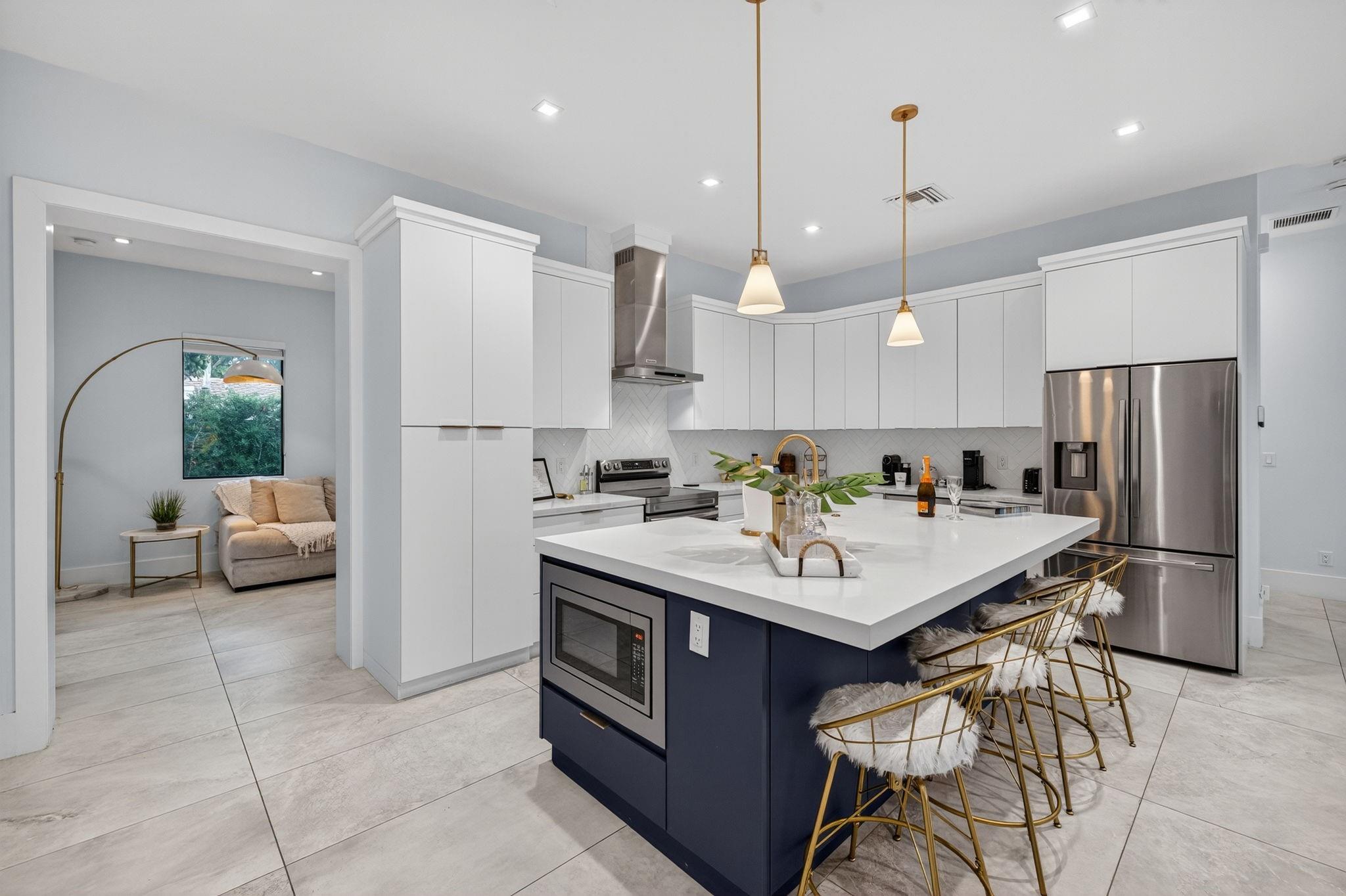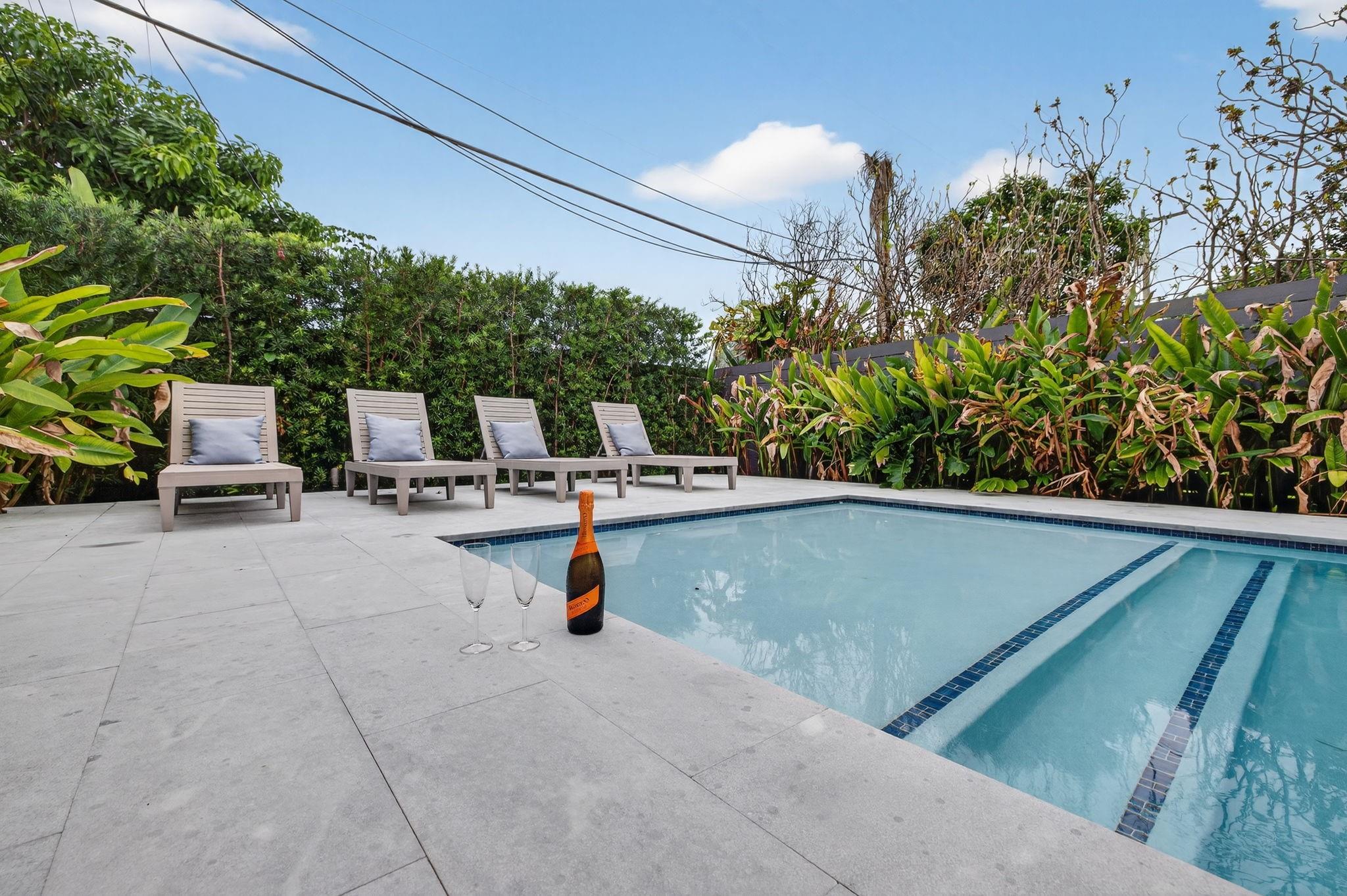 Step into a world of refined coastal glamour with this decorator-designed, 3 bedrooms plus bonus room, turnkey new construction home in south-after North Andrews Garden. From the moment you arrive, greeted by a large circular driveway, framed by soaring 50-ft. palms and a striking facade of a 2023 custom-built masterpiece. Indulge in the Florida lifestyle with a heated saltwater pool & expansive covered patio for seamless indoor-outdoor living, professionally landscaped grounds, interior special features:10-foot vaulted ceilings, open, coastal inspired kitchen designed for entertaining, split bedroom floor plan, each with custom California closets and spa-inspired bathrooms. Primary suite sanctuary. This home offers also a unique sister property for buyers seeking choices!