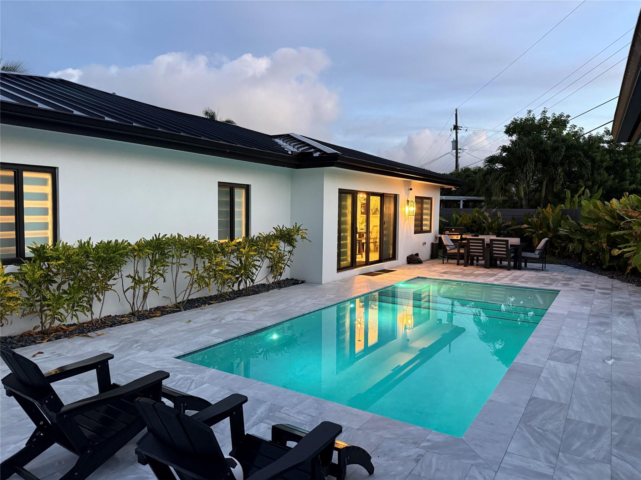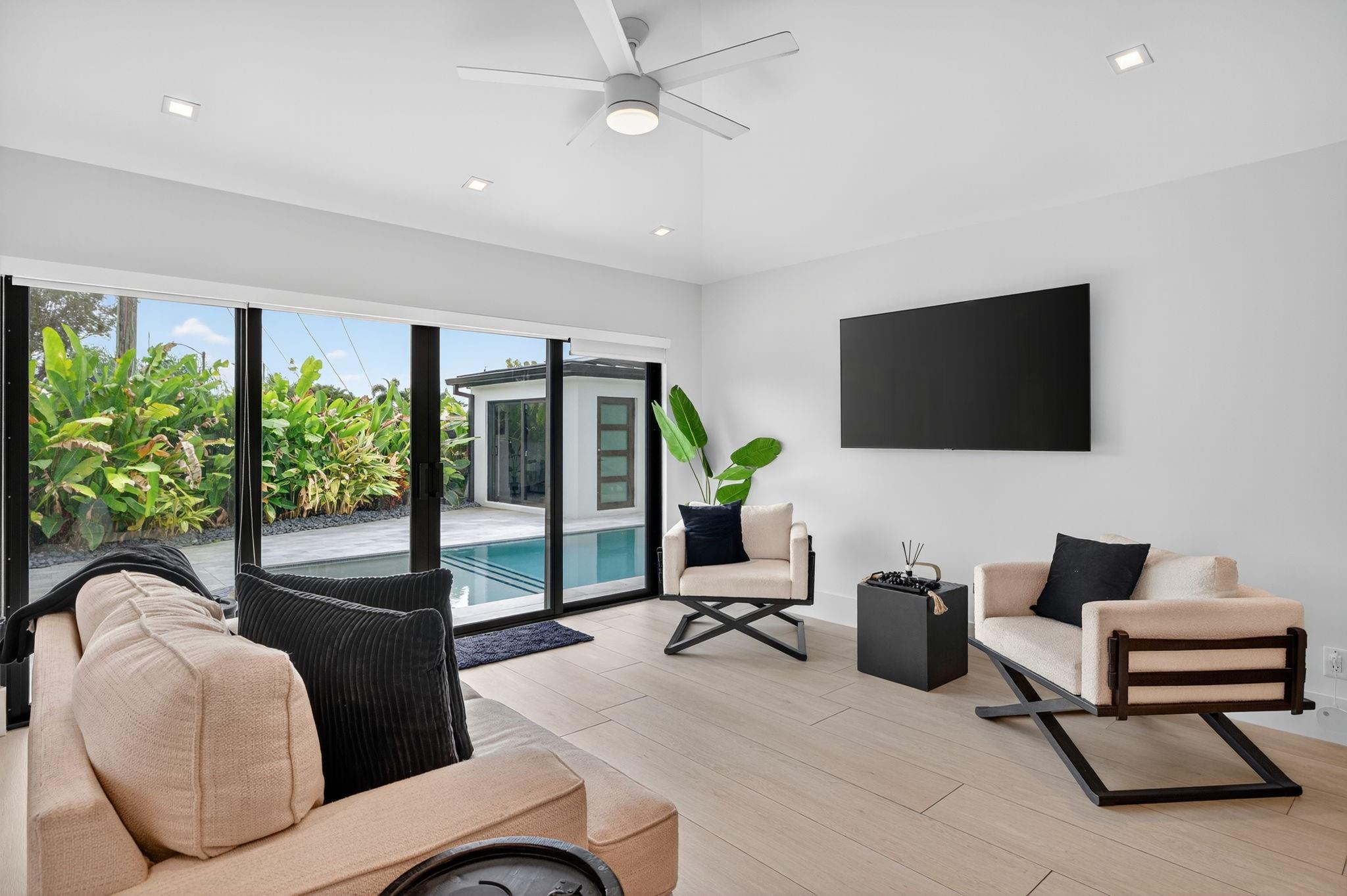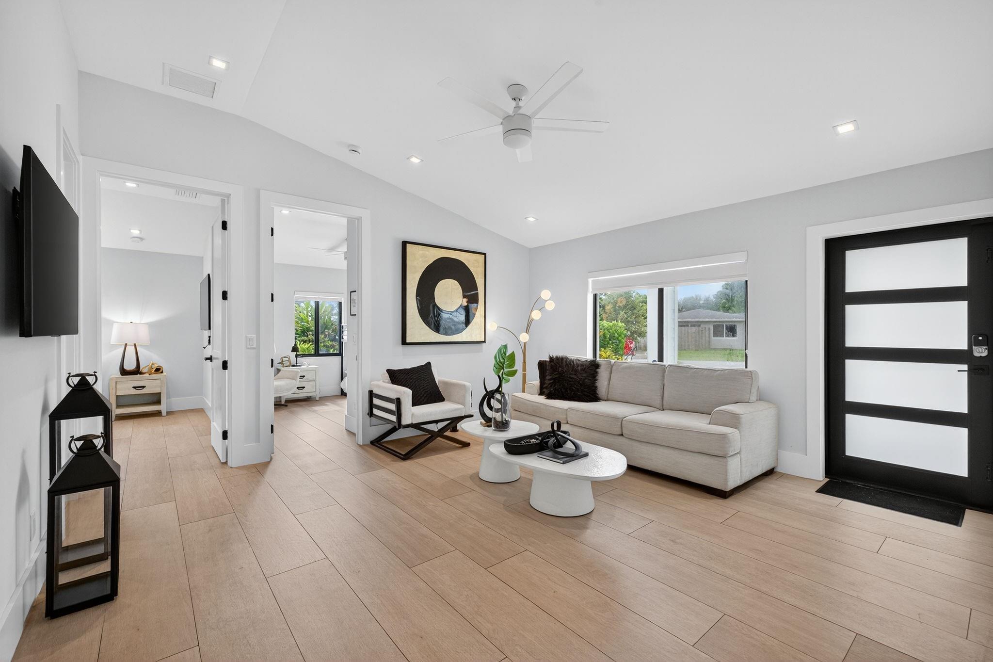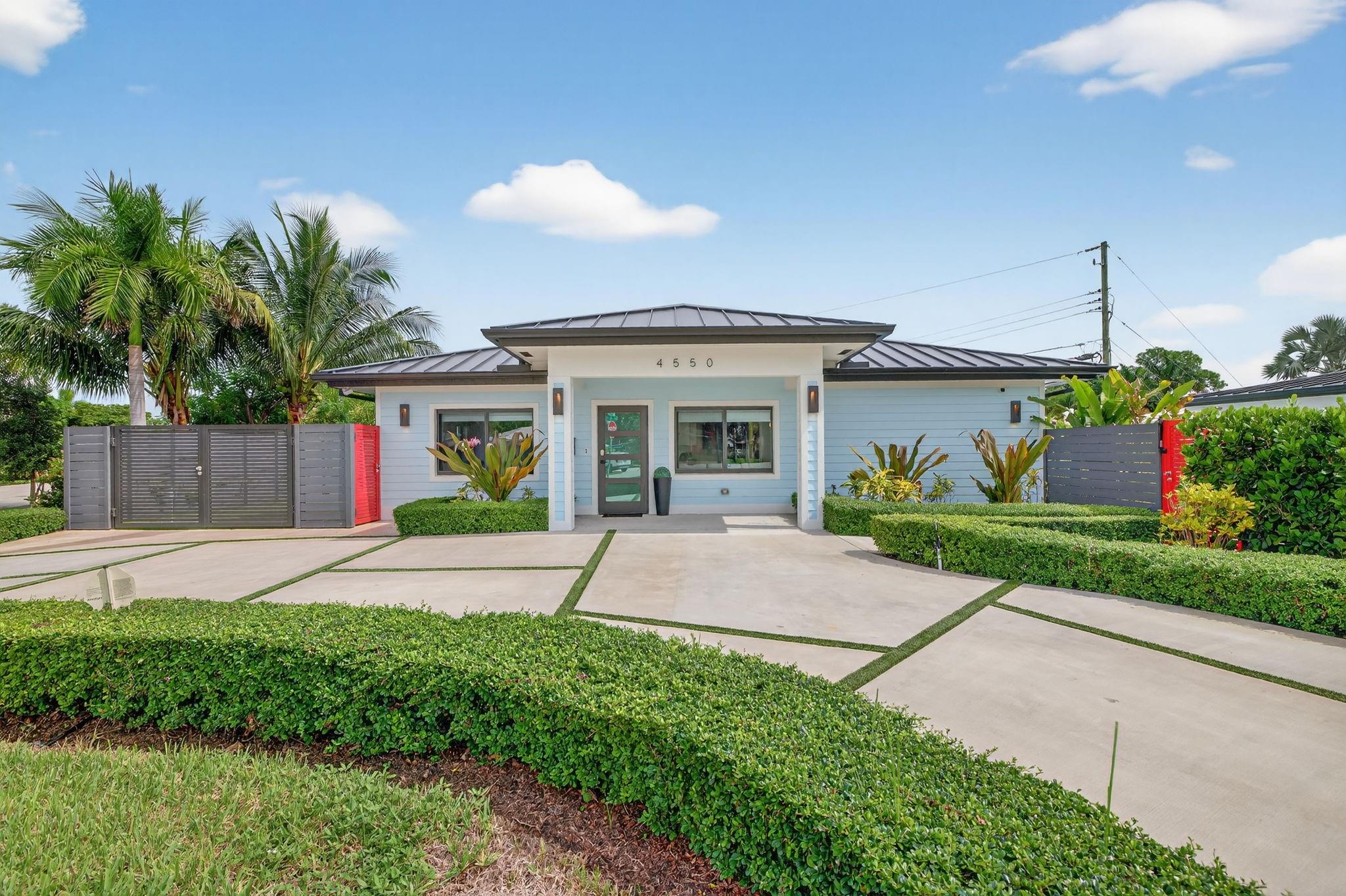 The grand reveal of a modern coastal residence on a 7,572 SF corner lot. A raised circular driveway welcomes you to 1,873 SF of living space with 10-ft ceilings & a split floor plan. The primary suite is a true retreat with spa-inspired bath. The chef’s kitchen features vaulted ceilings & oversized counters, flowing into spacious living & dining. Step outside to your Florida oasis with a saltwater pool & private air-controlled pool house. Flexible side yard ideal for a putting green or extra storage. Wheelchair accessible & offered turnkey—ready for luxury living!