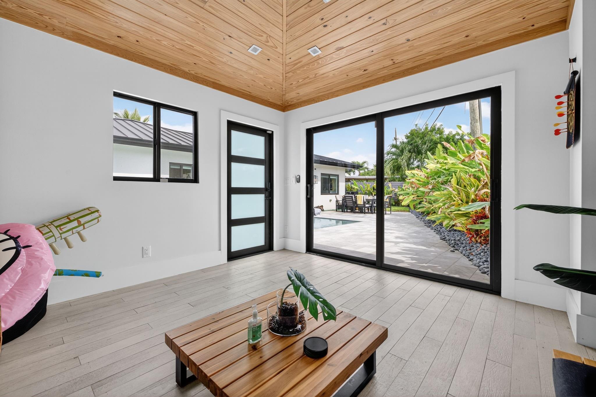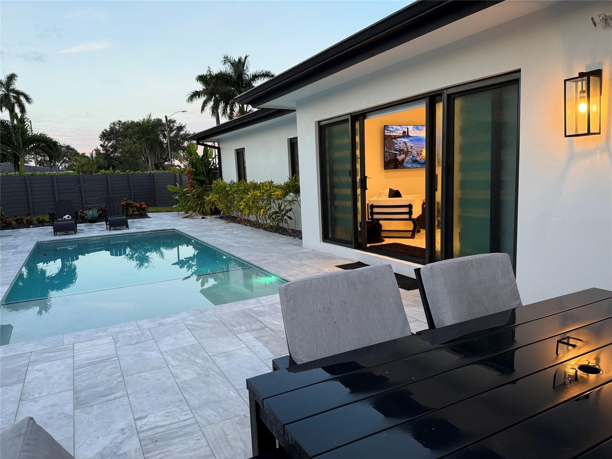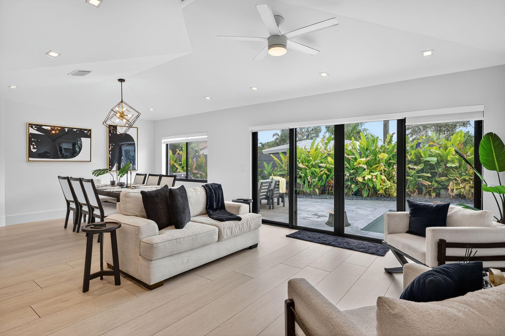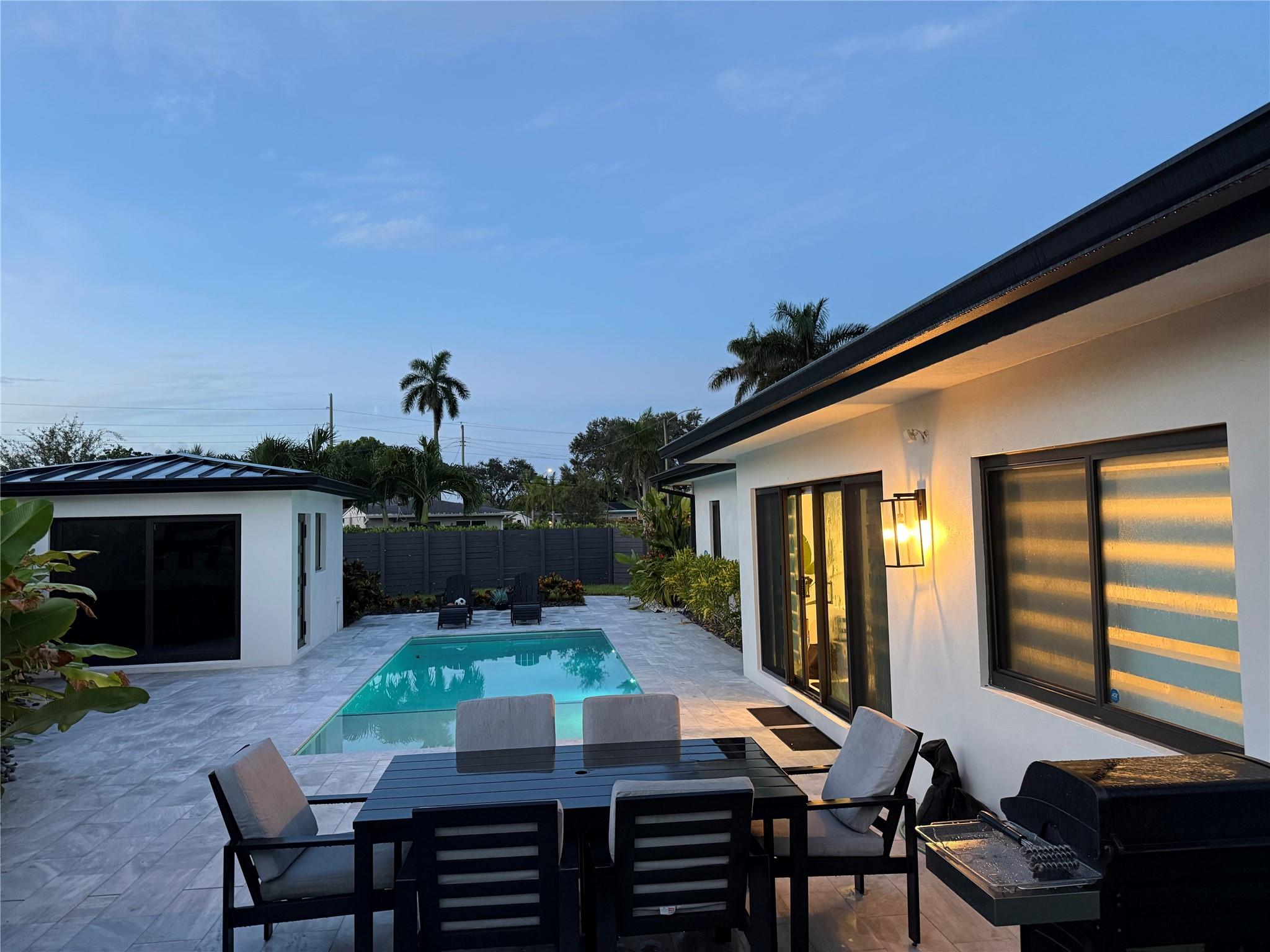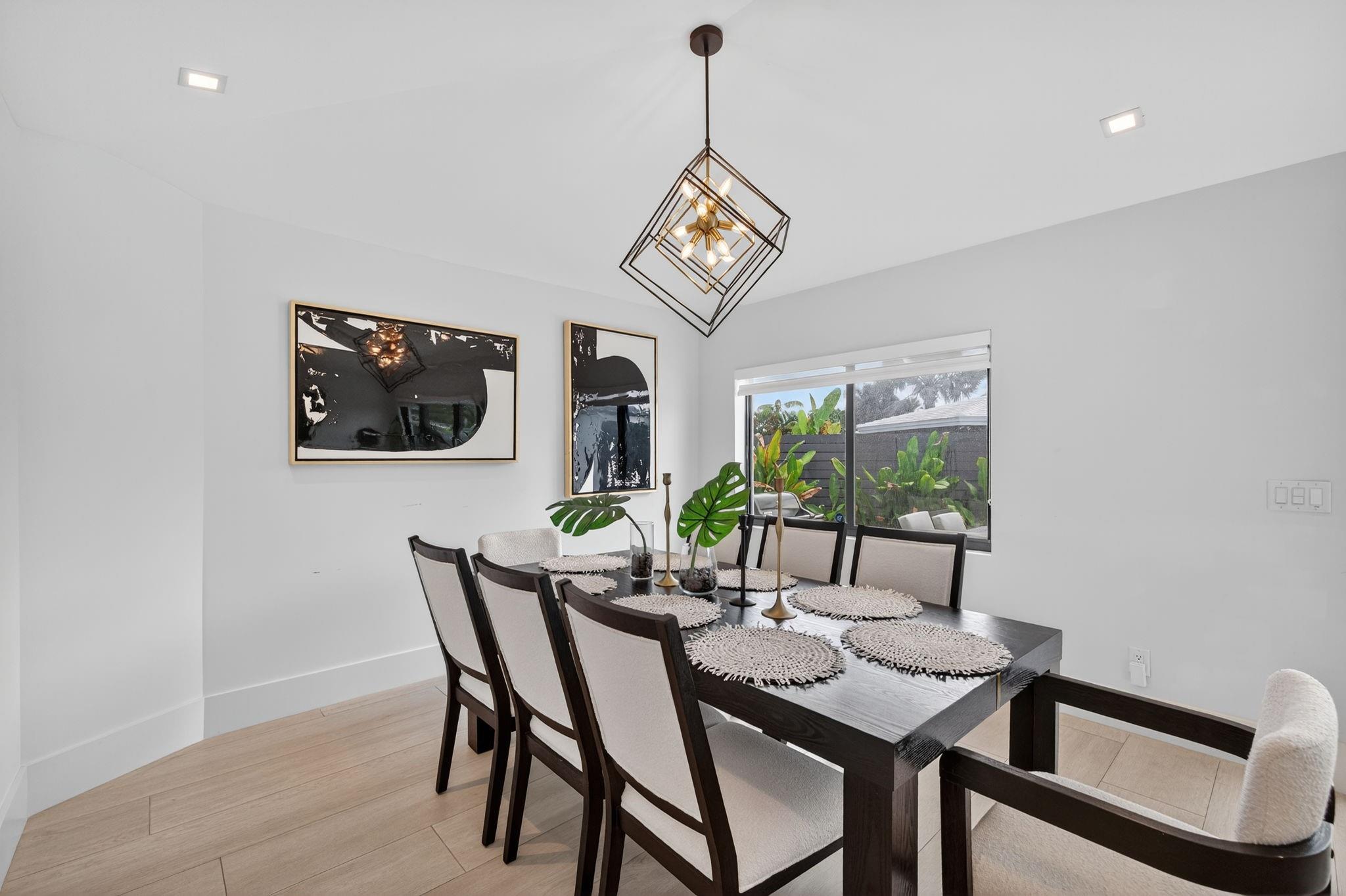 The grand reveal of a modern coastal residence on a 7,572 SF corner lot. A raised circular driveway welcomes you to 1,873 SF of living space with 10-ft ceilings & a split floor plan. The primary suite is a true retreat with spa-inspired bath. The chef’s kitchen features vaulted ceilings & oversized counters, flowing into spacious living & dining. Step outside to your Florida oasis with a saltwater pool & private air-controlled pool house. Flexible side yard ideal for a putting green or extra storage. Wheelchair accessible & offered turnkey—ready for luxury living!