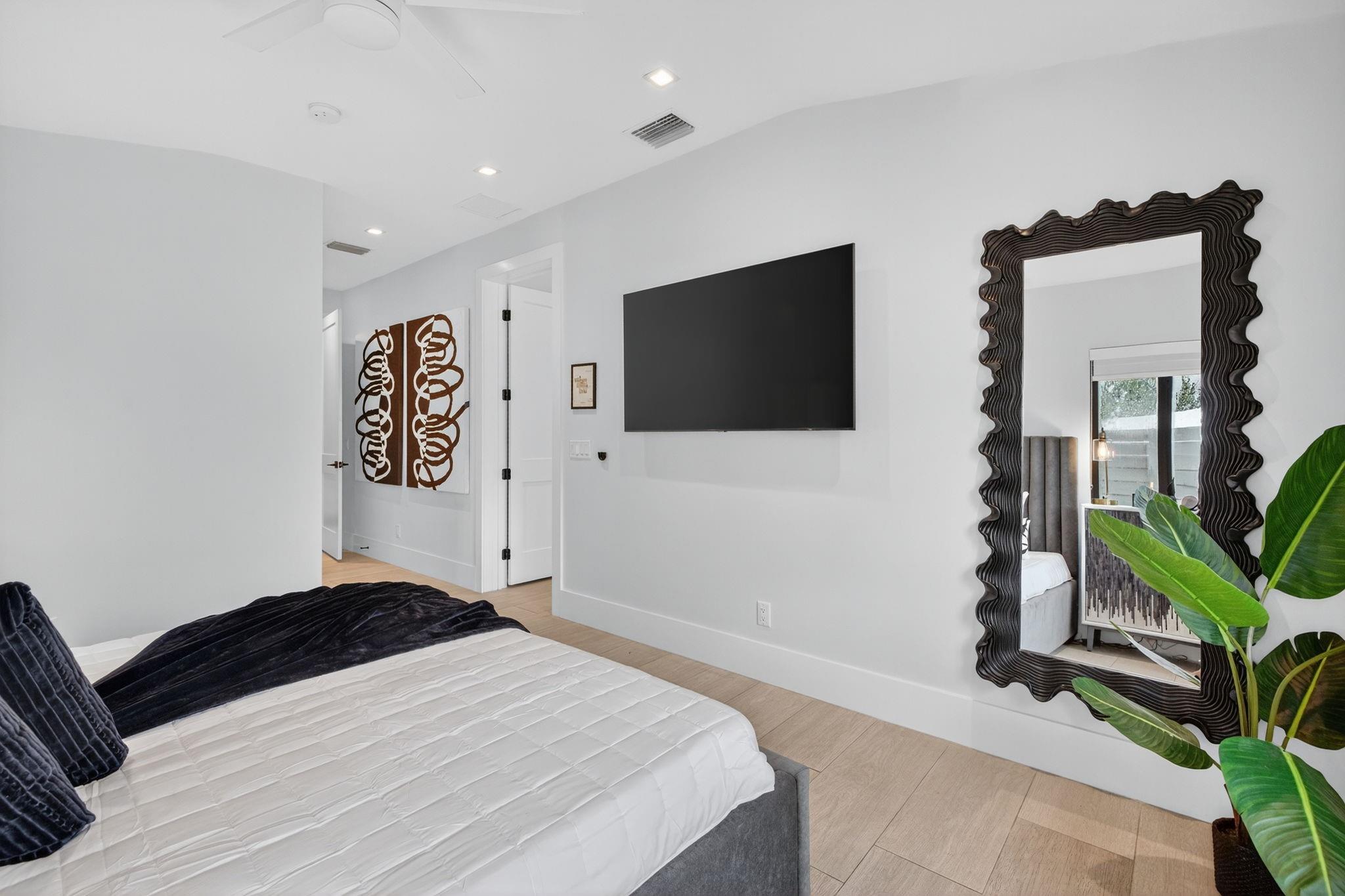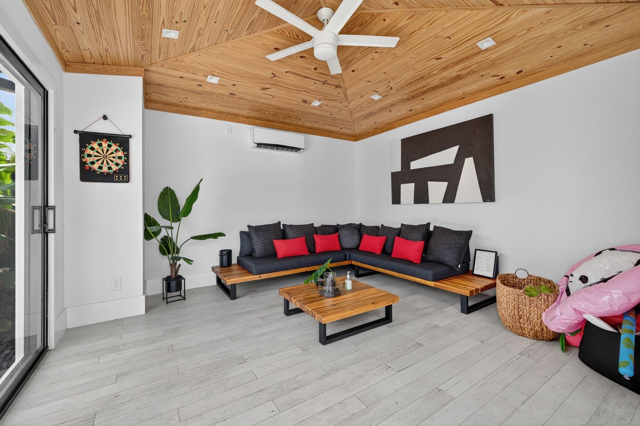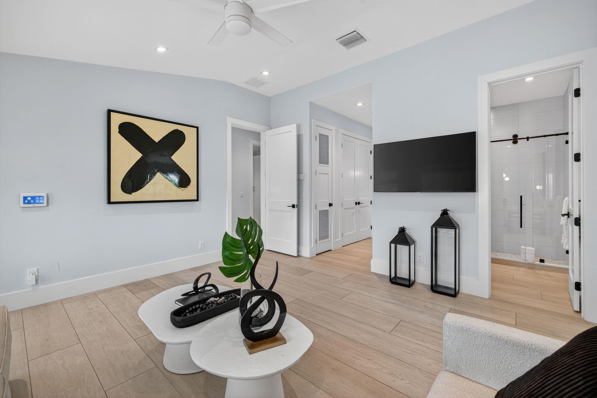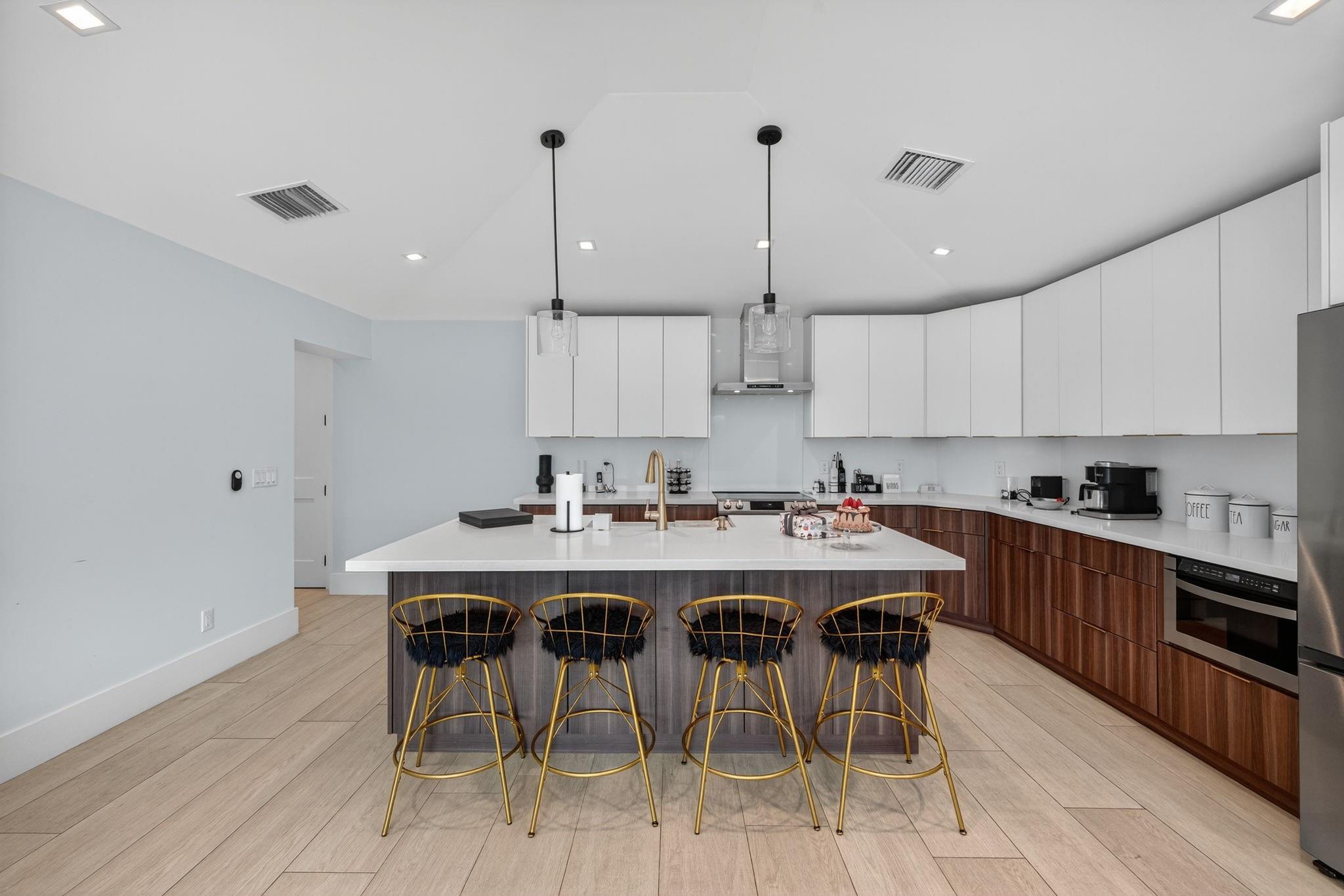 The grand reveal of a modern coastal residence on a 7,572 SF corner lot. A raised circular driveway welcomes you to 1,873 SF of living space with 10-ft ceilings & a split floor plan. The primary suite is a true retreat with spa-inspired bath. The chef’s kitchen features vaulted ceilings & oversized counters, flowing into spacious living & dining. Step outside to your Florida oasis with a saltwater pool & private air-controlled pool house. Flexible side yard ideal for a putting green or extra storage. Wheelchair accessible & offered turnkey—ready for luxury living!