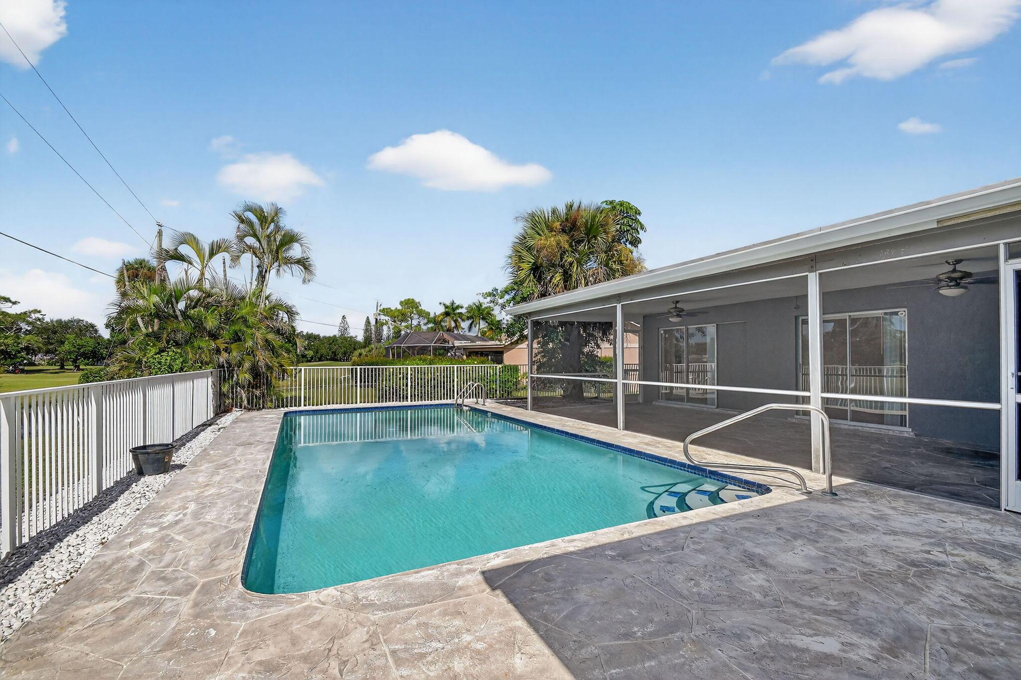 MAJOR PRICE ADJUSTMENT This stunning 3-bedroom, 2-bathroom home is nestled in one of the area's most sought-after neighborhoods in West Lake Worth/Wellington Area with no HOA fees. Enjoy sweeping views of the Palm Beach National Golf Course right from your backyard. The fenced pool area connects seamlessly to a fully screened outdoor living space, making it ideal for entertaining friends and family. Take in breathtaking evening skies from the spacious patio. The home features a newer roof and gutter system, fresh paint inside and out, an updated kitchen with a dedicated pantry, and a large indoor laundry area. Located on a peaceful cul-de-sac, you're just minutes from shopping, dining, major roadways, parks, and recreation. State of the Art Golf Course is located in the Community.