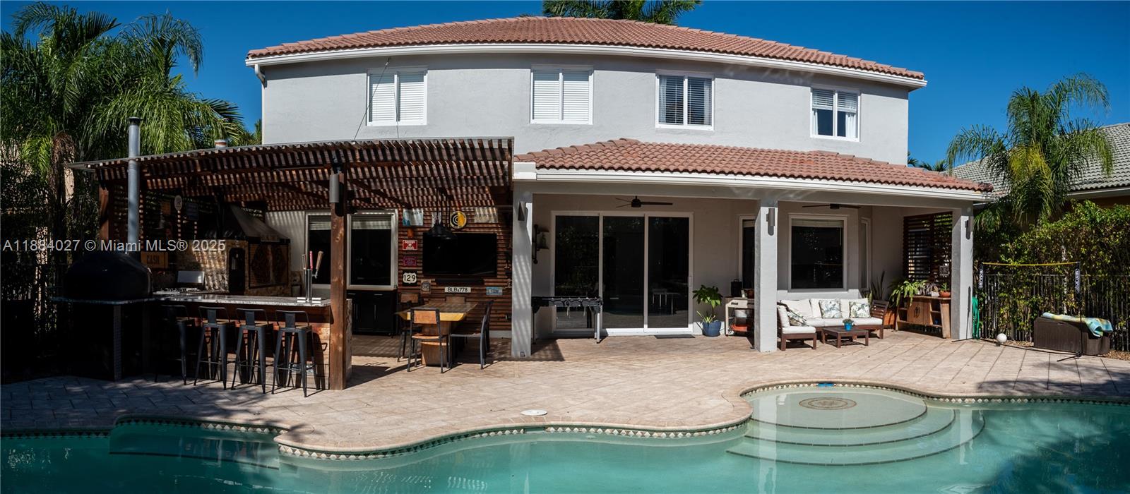 Exceptional 5BR/4BA pool home w/ impact windows & doors in the exclusive Savanna Community! Step into elegance and comfort w/ this fully renovated residence featuring open living spaces, sleek laminate floors, and a striking glass staircase & abundant natural light. Gourmet kitchen w/ quartz counters, custom cabinets, stainless appliances, designer bar & wine cellar. Office/den w/ glass barn doors & built-ins. Family room w/ natural stone accent wall. All bedrooms feature custom closets. Lavish primary suite w/ sitting area, dual walk-ins, and spa-style bath w/ tub, shower & double vanities. Resort-style backyard: outdoor kitchen w/ wine fridge, gas stove, pizza oven, 3 beer taps, charcoal BBQ, wood deck, pergola & fire pit lounge. Zoned for A+ schools. Seller to contribute on closing cost
