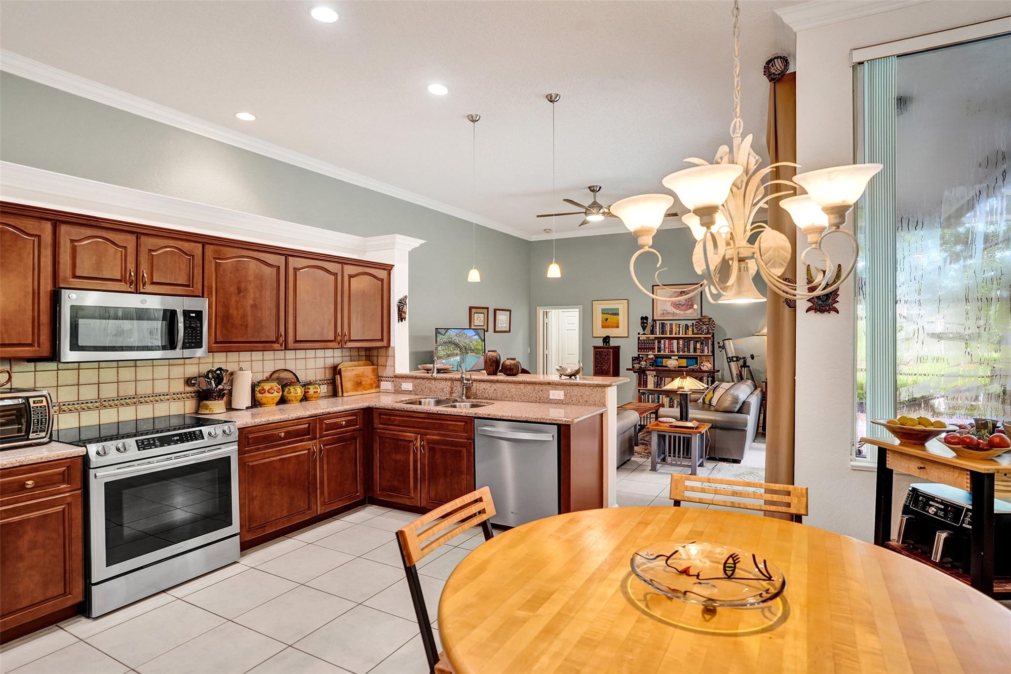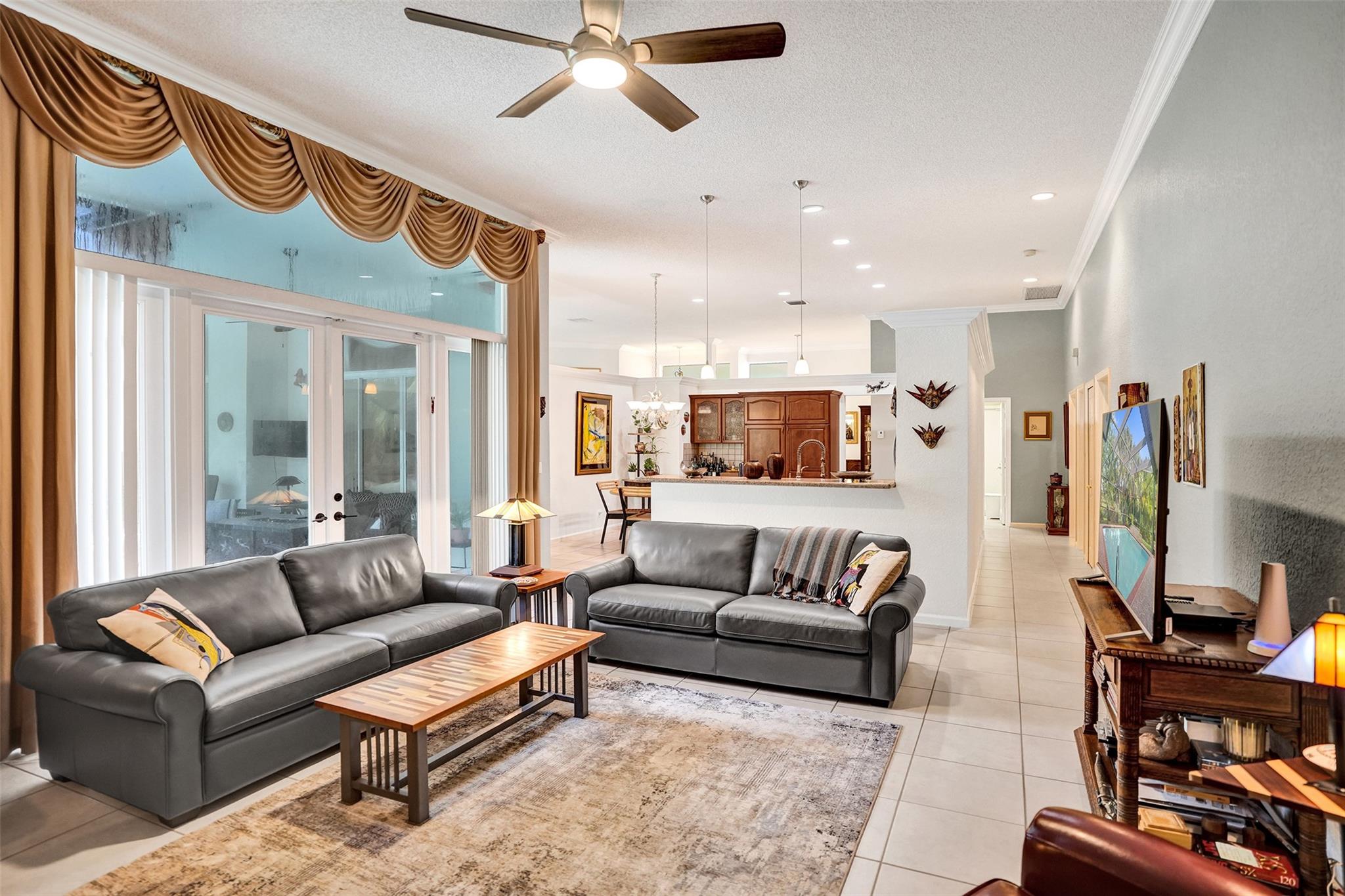 Spectacular waterfront one story 5 bedrooms, 3 baths and 3 car garage, pool home on cul-de-sac lot with very low HOA. Over $200K+ in updates, roof 2017, high end remodel baths, pool resurfaced/new heater/pump/water feature, all appliances replaced, bedrooms new beautiful neutral floors, whole house water treatment and more. A very well-maintained home features volume ceilings throughout, light and bright large eat in kitchen opens to the family room, formal dining room and living room. The triple split bedroom plan, includes an inviting large primary bedroom with views of the pool area and water, 1 bedroom can be utilized as an office with a closet. The back patio area is screened it with a peaceful waterfall and large pool and overlooking the water for beautiful Florida sunsets.