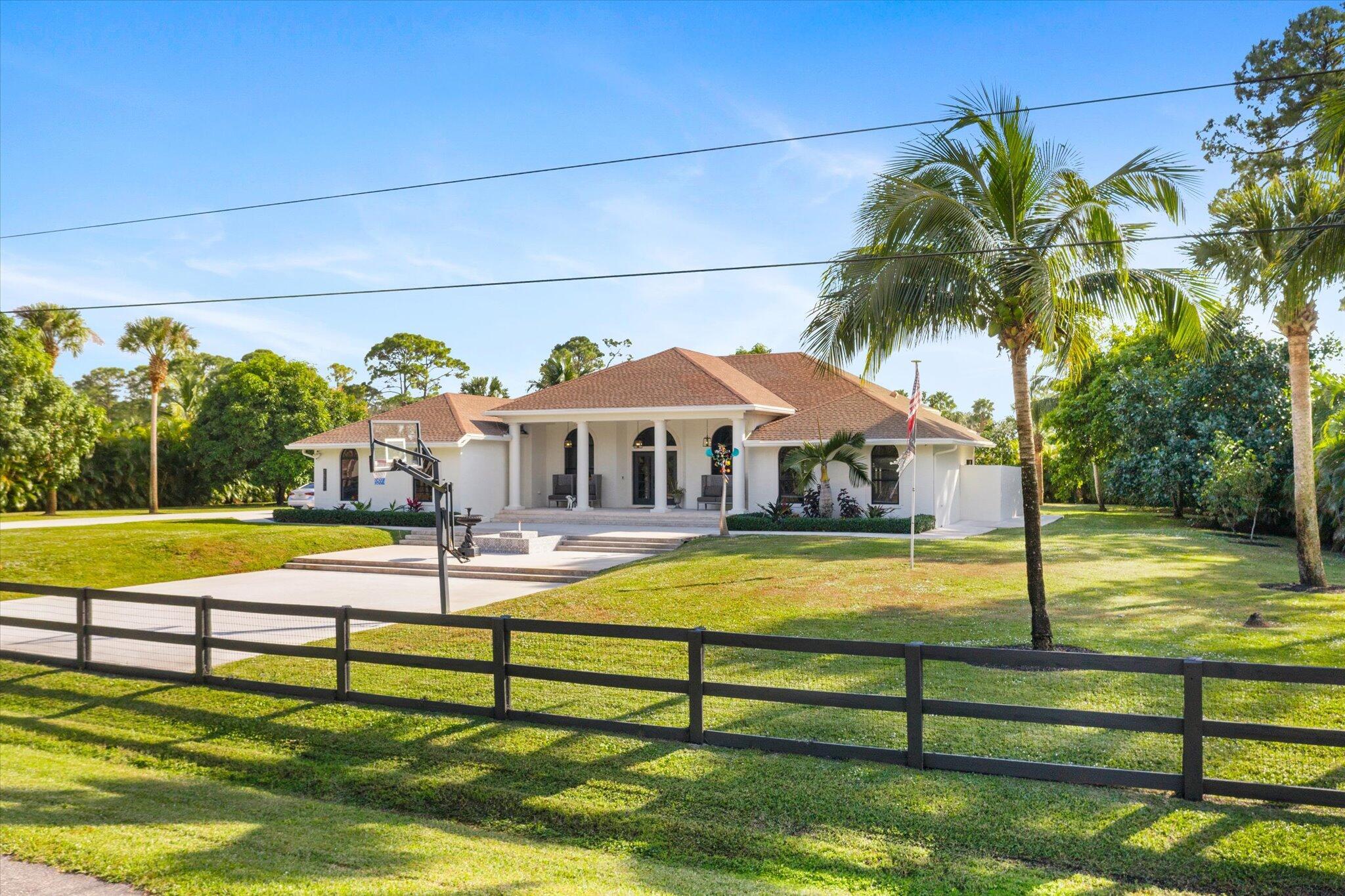 Perfectly Located on the North end of The Acreage on a paved road, fully fenced with gated entry, right off of Northlake Blvd, this exquisite 1.4 Acre estate offers the perfect blend of privacy, space, and luxury. This Freshly painted, stunning residence boasts Beautiful Marble floors, Vaulted Ceilings, 4 spacious bedrooms, an office/den, indoor laundry room, a 3 Car Garage with separate side loader, encompassed in an abundance of comfortable living space. A wealth of natural light highlights this thoughtfully designed Split Floor Plan seamlessly flowing into the spacious Open Floor Plan of the living and dining areas, offering a separated bonus room right off of the Master Bedroom creates a warm, yet sophisticated ambiance throughout.