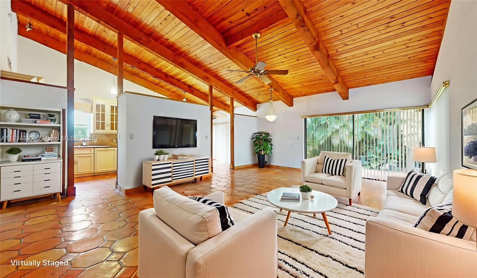Welcome to a truly exceptional home located in the gated community of Pepperwood, where every detail has been thoughtfully designed for comfort and elegance. This home boasts a spacious layout with a light-filled living area and primary suite, both of which feature stunning high wood-beam ceilings that create an airy and grand feel. The kitchen features ample cabinet space and stunning granite countertops. Step outside to discover the private, lushly landscaped front and backyards, perfect for relaxation and outdoor gatherings. Beyond your doorstep, the community offers a resort-like lifestyle with a sparkling pool, spa, tennis courts, and a tot lot. This prime location is just moments away from the esteemed Kenwood K-8 school, Baptist Hospital, Dadeland, and various shopping centers.