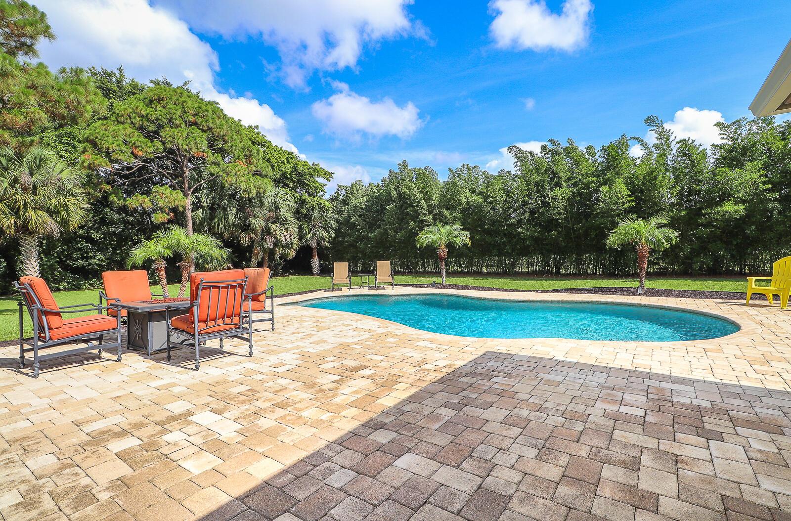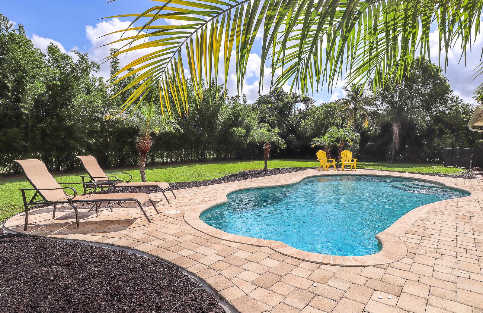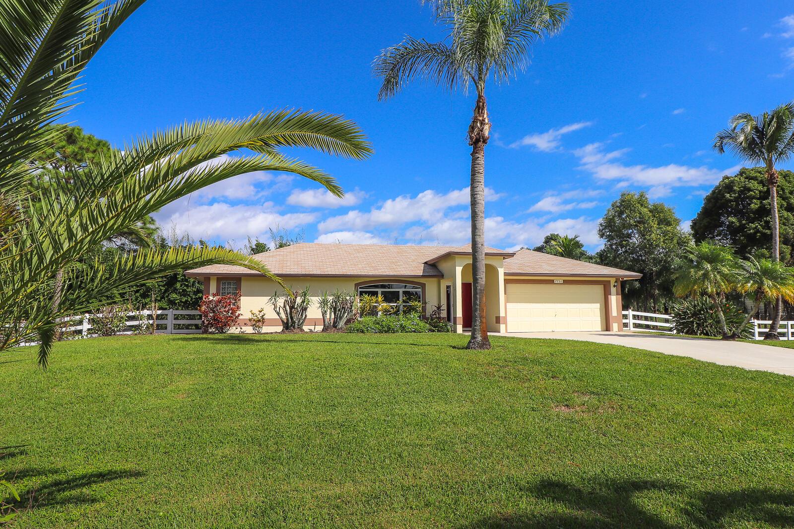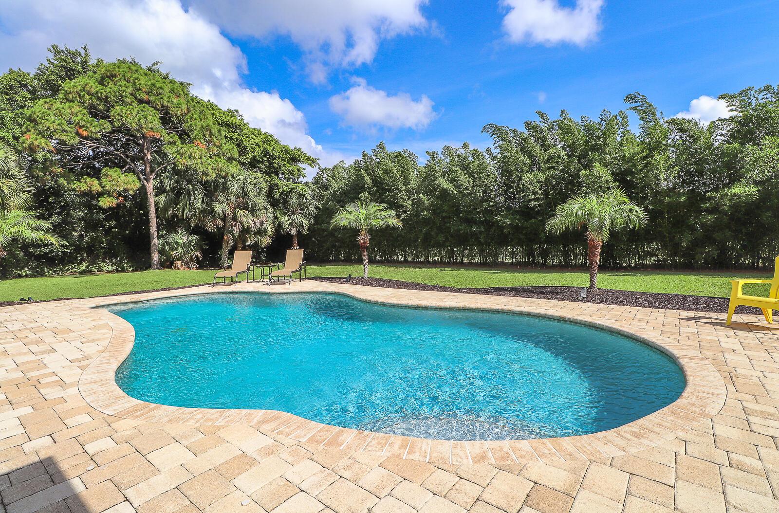 Buy direct from REALTOR/owner and save $25,000. Immaculate CBS 3 BR, 2 BA, small den, 2-car garage, $100k+ 2021 salt system pool/ huge paver deck on very private 1.32-AC lot in Palm Beach Country Estates. NEW roof, HWH & HVAC in 2018 New interior & exterior paint & carpet. $75,000 in recent refurbishing. 300 feet from paved road (76th). Formal dining room and separate breakfast area off the kitchen. Split floorplan and vaulted ceilings. NEW decorative wood fencing. Lush treed level lot backs to a canal for extra privacy. Concrete pad perfect for storing an RV or boat. No HOA, city water, and close to Alton Town Center and Abacoa. All A-rated schools. IMMEDIATE OCCUPANCY. Replacement cost new would be over $1,600,000. 2026 price increases to $1,029,999.