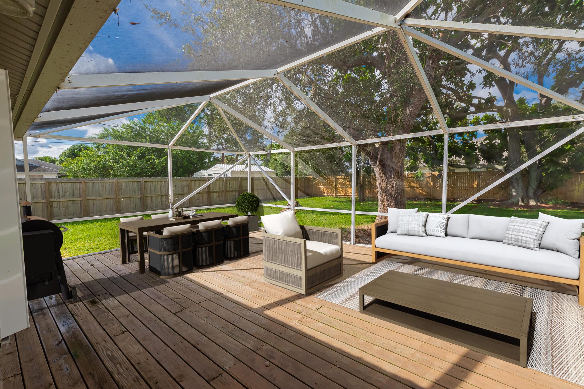 Solid CBS construction 2-bedroom, 2-bath home with versatile garage conversion offers easy 3rd bedroom complete with wall A/C and private entrance--ideal for guests, remote work, or hobby space. An enclosed lanai expands the living area, perfect for year-round enjoyment. The interior offers a welcoming flow with tile flooring, French doors, spacious living & dining rooms, stainless steel appliances & durable Formica counters. Freshly painted inside & out, this home feels light, bright & move-in ready. Bedrooms feature a mix of carpet & tile flooring for comfort and function. Outdoors, enjoy a partially fenced yard for privacy, plus accordion shutters for added peace of mind. A well-rounded property offering space, flexibility & security. Centrally located to all Port St Lucie has to offer!