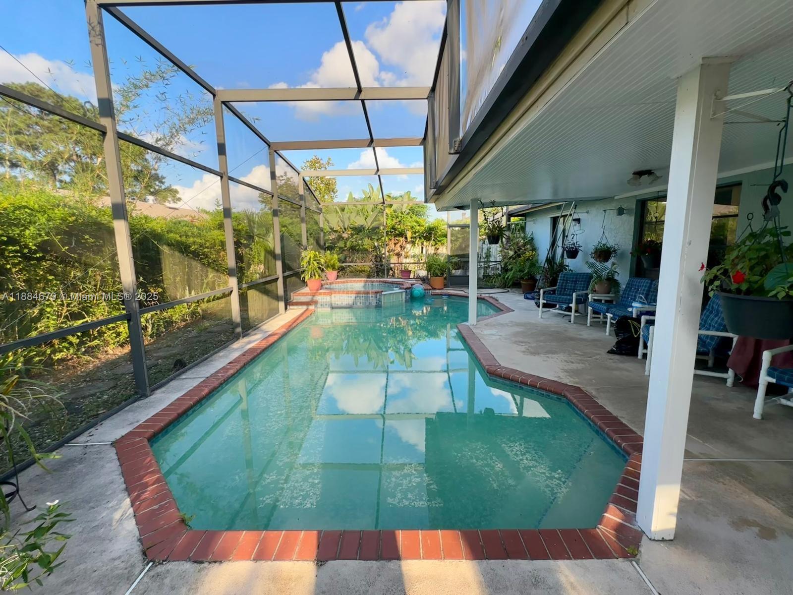 DRASTICALLY REDUCED. Corner lot in sought after Hunters Trace offering plenty of space and potential with a split floor plan and inviting outdoor retreat. The home includes a kitchen/living room with a cozy fire place, a formal family room, formal dining room, and laundry room. The master bedroom en suite is on one side of the home, while the three additional bedrooms are located on the opposite side providing both privacy and functionality. Outdoors, enjoy Florida living with a screened-in pool, and spa with a gas heater, ideal for unwinding or entertaining. While the home is well-maintained, it offers the opportunity for updates and personal touches. Conveniently located near shopping, dining, and major roadways, this home is full of potential to become your perfect Orlando retreat.