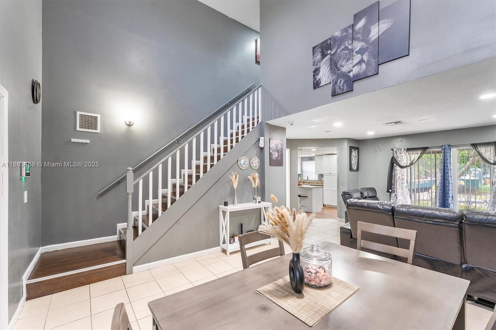 No HOA! Welcome home to style & comfort! This spacious home blends smart updates with a welcoming open design. Upon entry, you’ll be greeted by a grand two-story entry & a statement chandelier that sets the tone for the entire home. The open floor plan creates the perfect flow from living to dining, while the updated kitchen with modern appliances makes cooking a delight. Upstairs you’ll find updated flooring & nicely sized rooms, each with its own walk-in closet. Newer A/C & water heater, appliances included (plus an extra fridge in the garage!) & hurricane shutters for peace of mind. Garage, security cameras & thoughtful updates throughout make this home truly move-in ready. Whether entertaining or relaxing, this home offers a lifestyle of comfort & practicality with a touch of elegance.