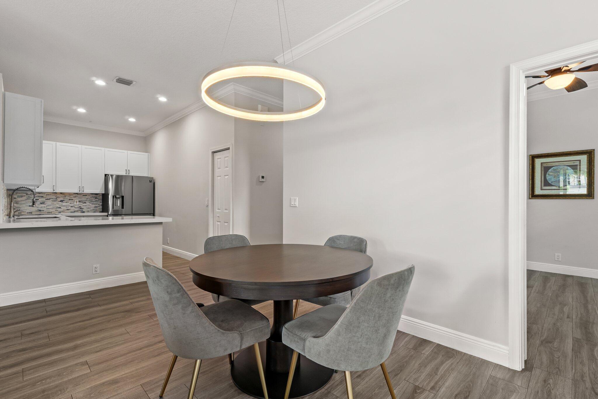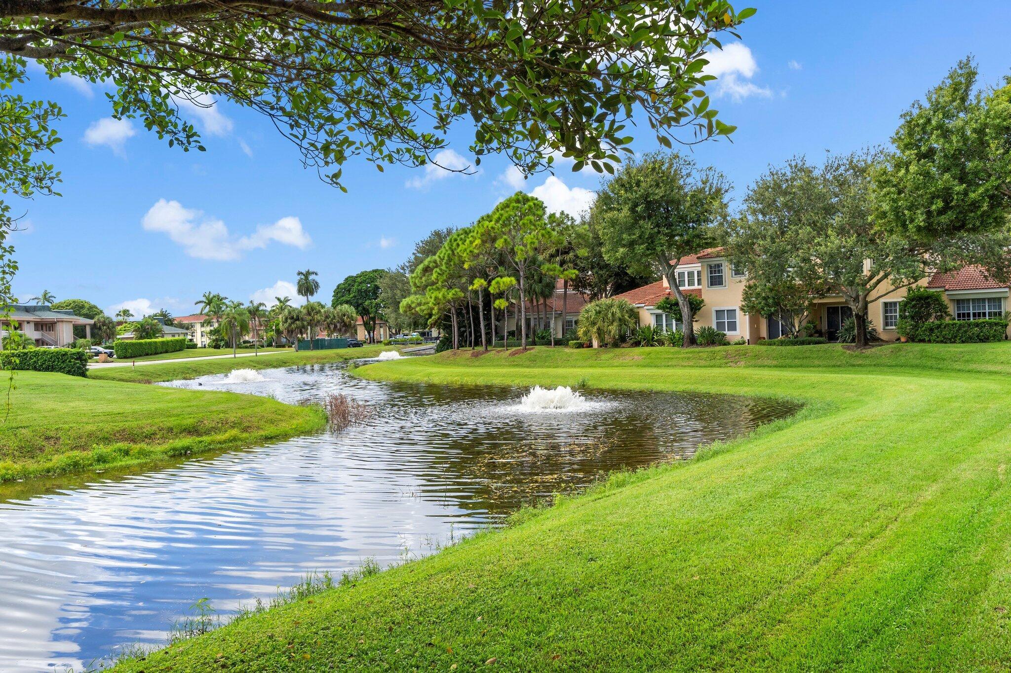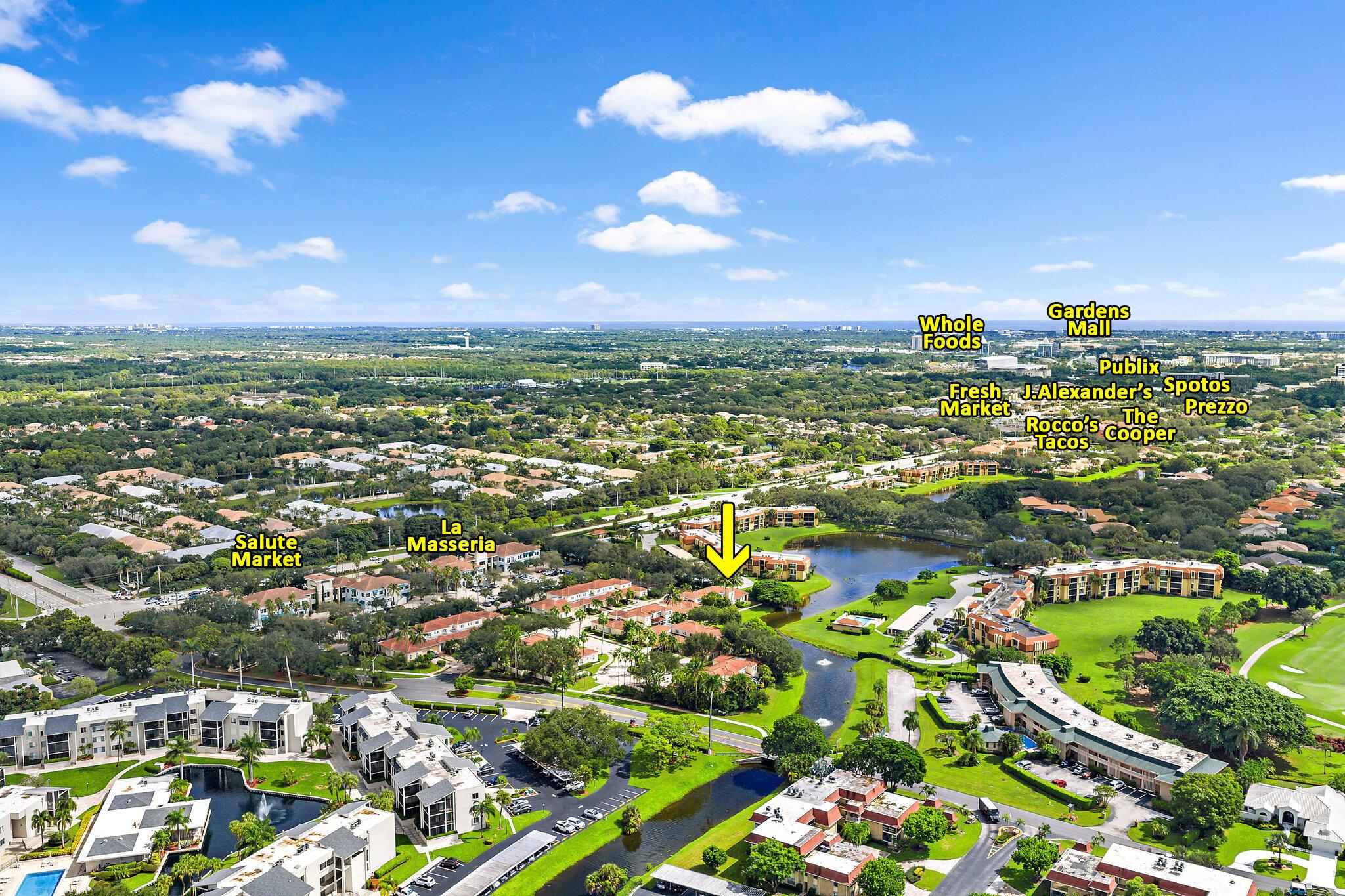 Enjoy walkability in this elegantly renovated townhome at PGA Commons--just steps from fine dining and boutique shopping, nestled behind Salute Market and La Masseria. This sophisticated residence features hurricane impact glass, custom kitchen cabinetry with quartz countertops, Samsung appliances, a built-in bar area, electric window shades, and laminate flooring. The two-car garage boasts sleek epoxy flooring and large storage cabinets. Enjoy southern views over a private canal from your back patio with travertine marble decking. Other recent upgrades include a 2018 roof, 2023 A/C, and 2020 water heater. We look forward to showing you this immaculate home.