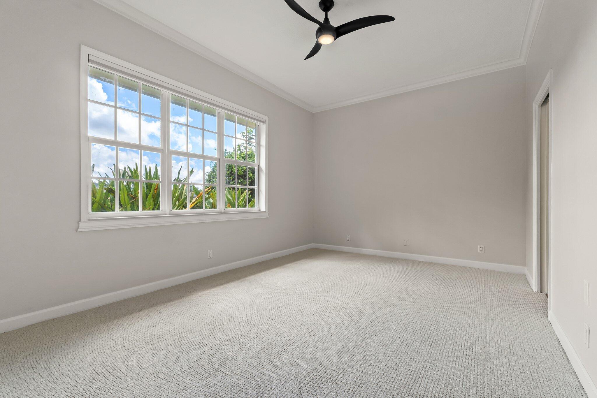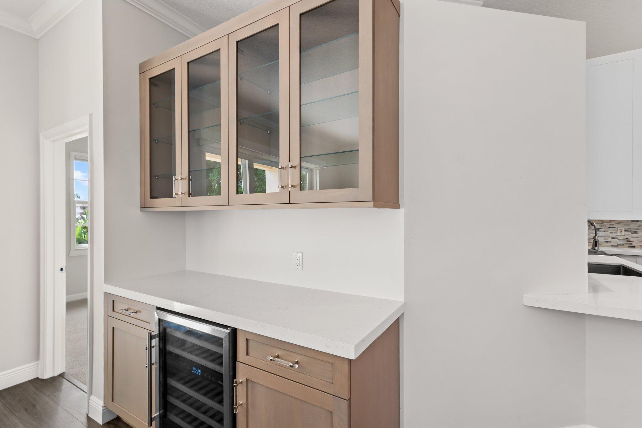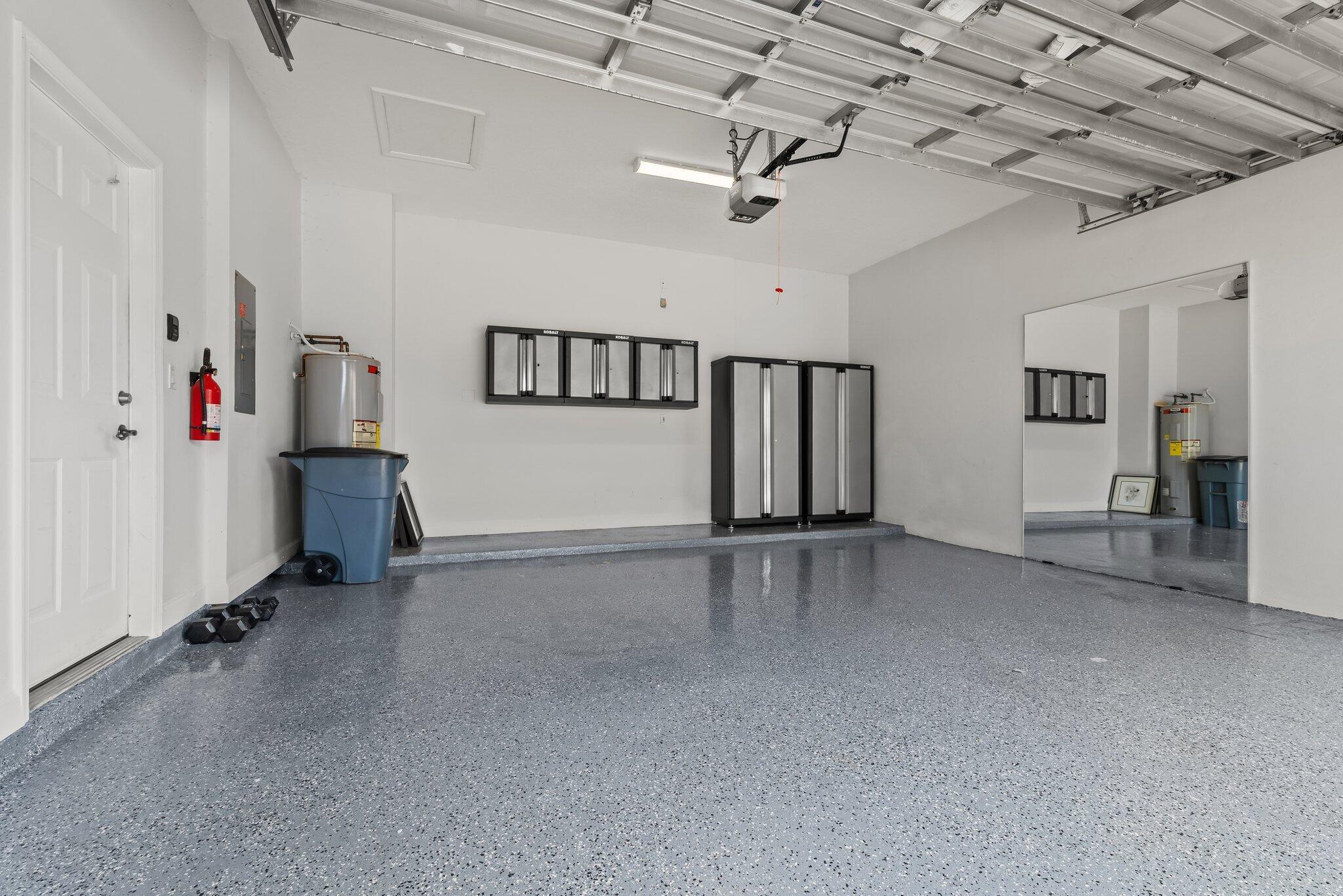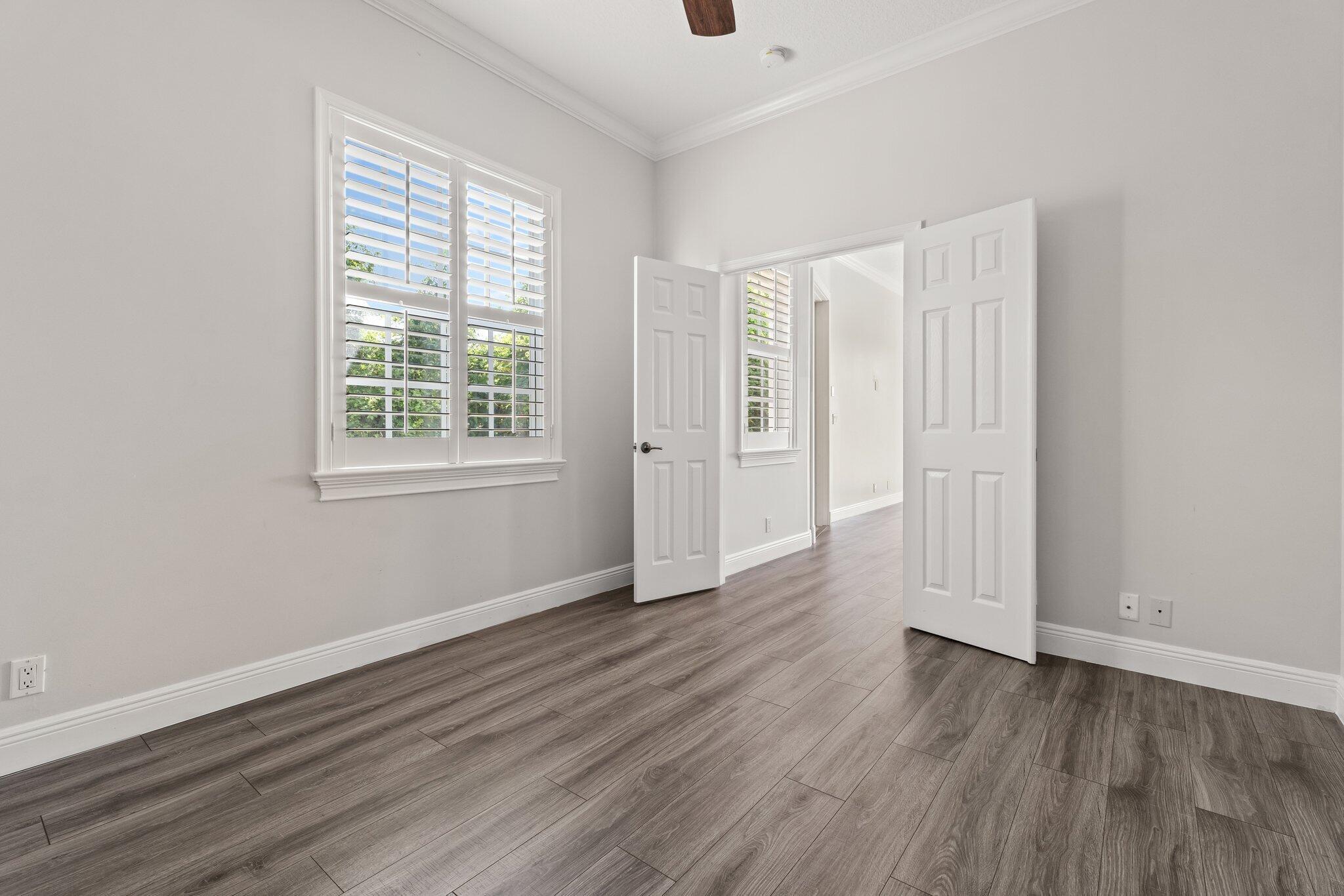 Enjoy walkability in this elegantly renovated townhome at PGA Commons--just steps from fine dining and boutique shopping, nestled behind Salute Market and La Masseria. This sophisticated residence features hurricane impact glass, custom kitchen cabinetry with quartz countertops, Samsung appliances, a built-in bar area, electric window shades, and laminate flooring. The two-car garage boasts sleek epoxy flooring and large storage cabinets. Enjoy southern views over a private canal from your back patio with travertine marble decking. Other recent upgrades include a 2018 roof, 2023 A/C, and 2020 water heater. We look forward to showing you this immaculate home.