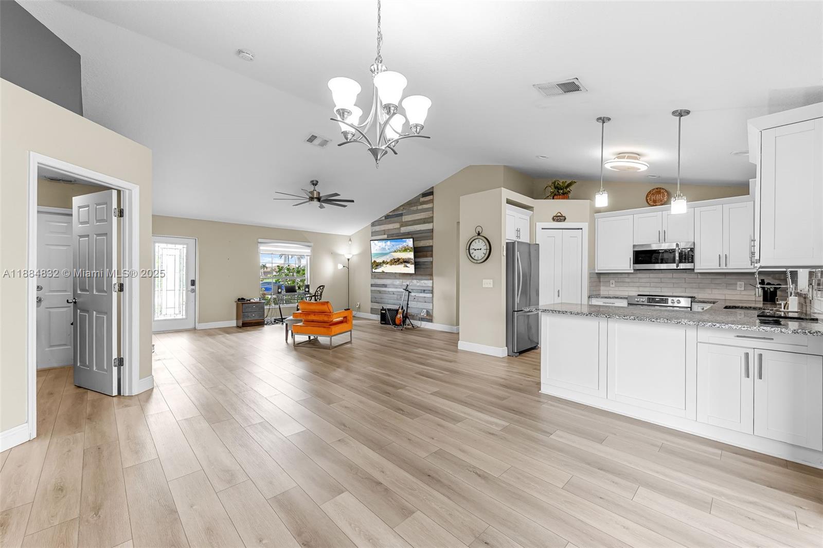 Welcome to this beautifully renovated Cape Coral home located at 2335 SW 27 St. This stunning residence has undergone significant upgrades in recent years, ensuring modern comfort and style. Renovations include, Kitchen, Master Bathroom and guest bathroom. Enjoy the spacious laundry area featuring a new washer and dryer, and a furnished master closet for optimal organization. The outdoor living space has been transformed with a beautifully renovated lanai, complete with pavers and a wooden ceiling, perfect for entertaining. New fence, The backyard showcases an incredible pool surrounded by lush landscaping, creating a private oasis. This move-in-ready home combines comfort, modern updates, and outdoor paradise, making it a perfect place to call HOME