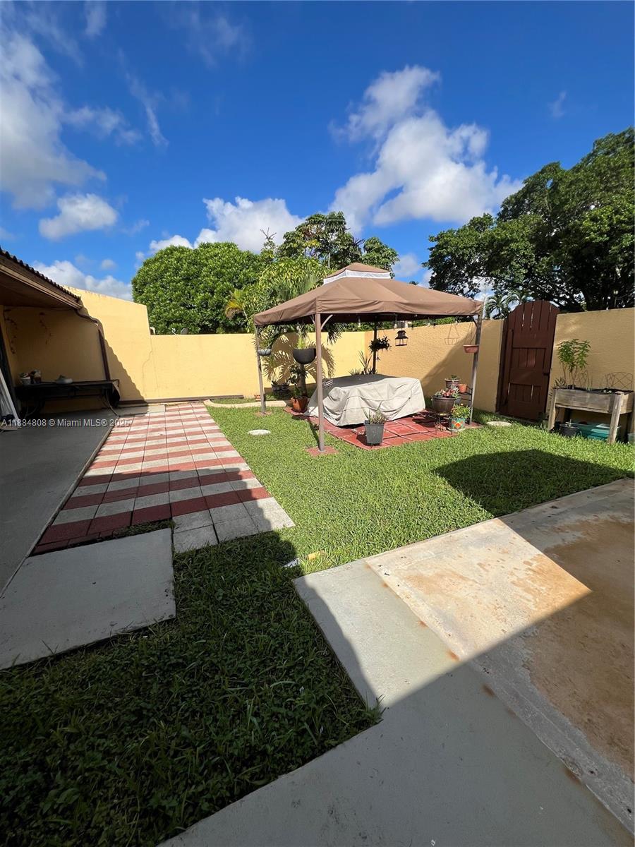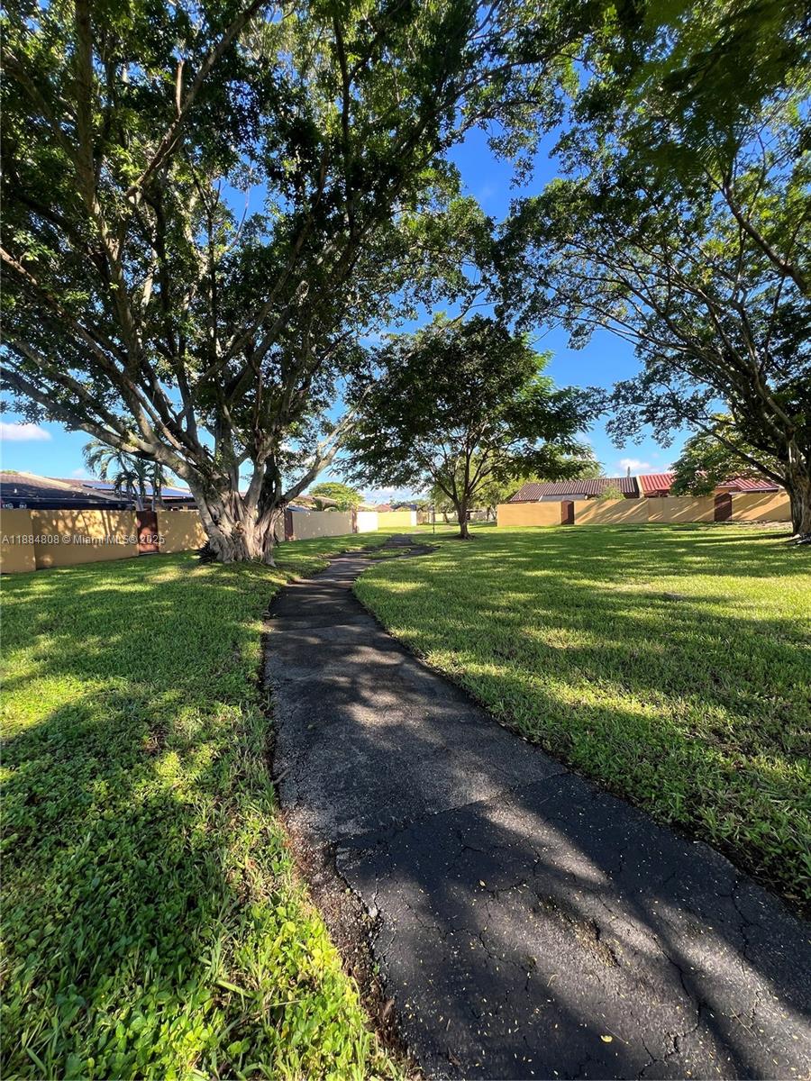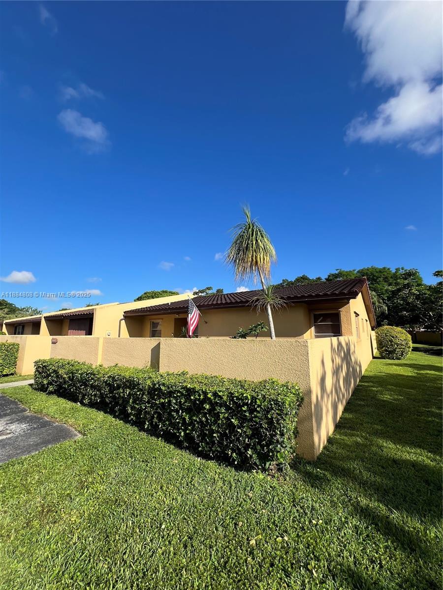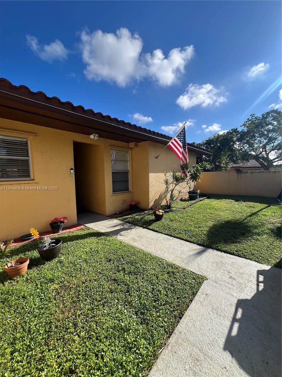 In the Kendale Lakes West/Miami area, a quiet community with walking paths. The community is centrally located off Kendall Drive (88th Street) near Target, Walmart, and Home Depot. Top-rated school zone, and just 5 minutes from Baptist Hospital, LA Fitness, and plenty of restaurants to choose from. This is a corner lot townhome unit featuring three bedrooms and two full bathrooms with plenty of closet space. Living, dining, and kitchen combined. Washer/Dryer in the utility room, with a new water heater, and A/C. The front and backyard concrete fencing barrier ensures safety, security, and privacy. For added security, the main entrances are monitored by 24-hour surveillance cameras. The unit comes with 2 parking spaces available in the front for two cars, and plenty of guest parking.