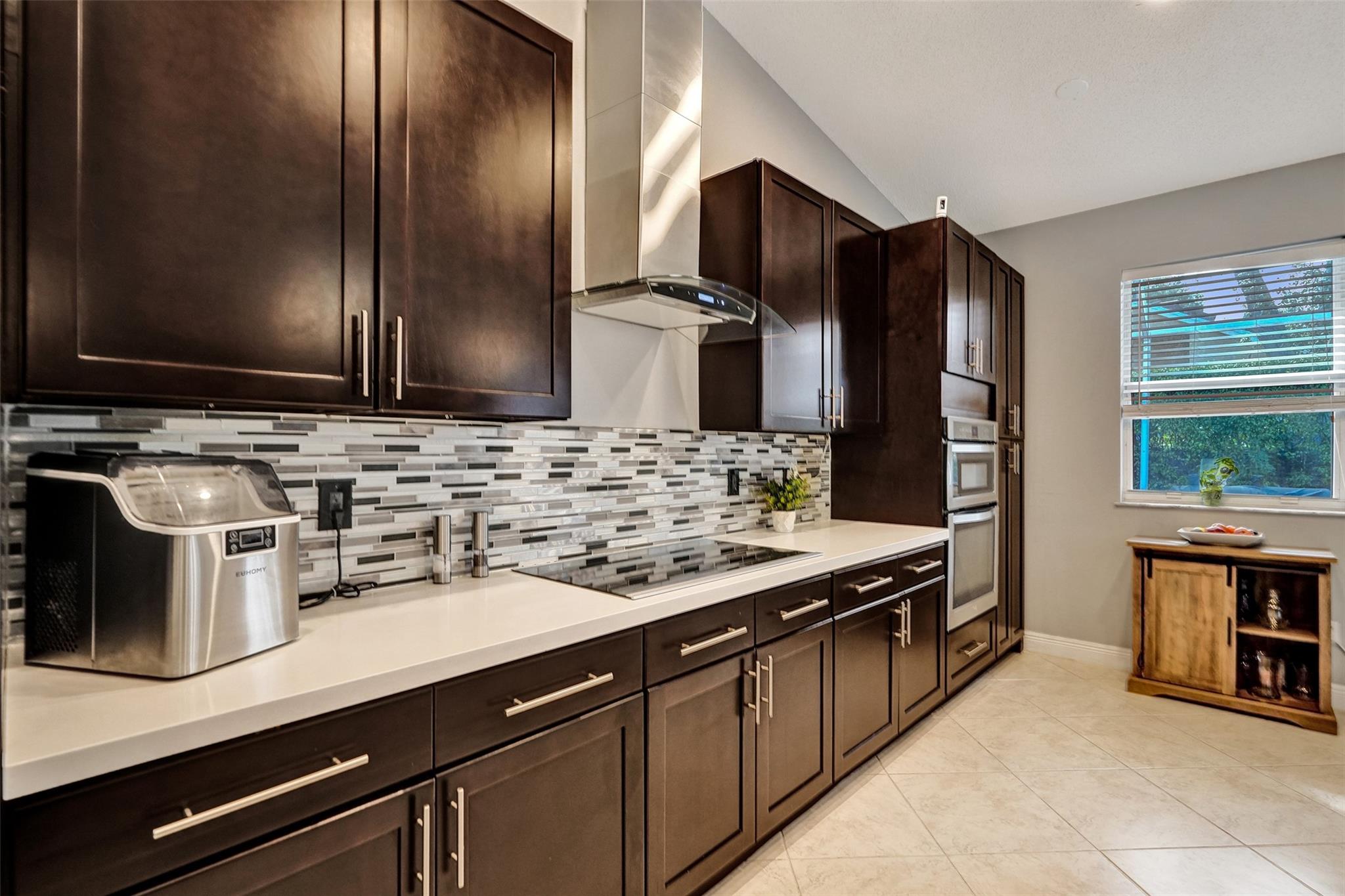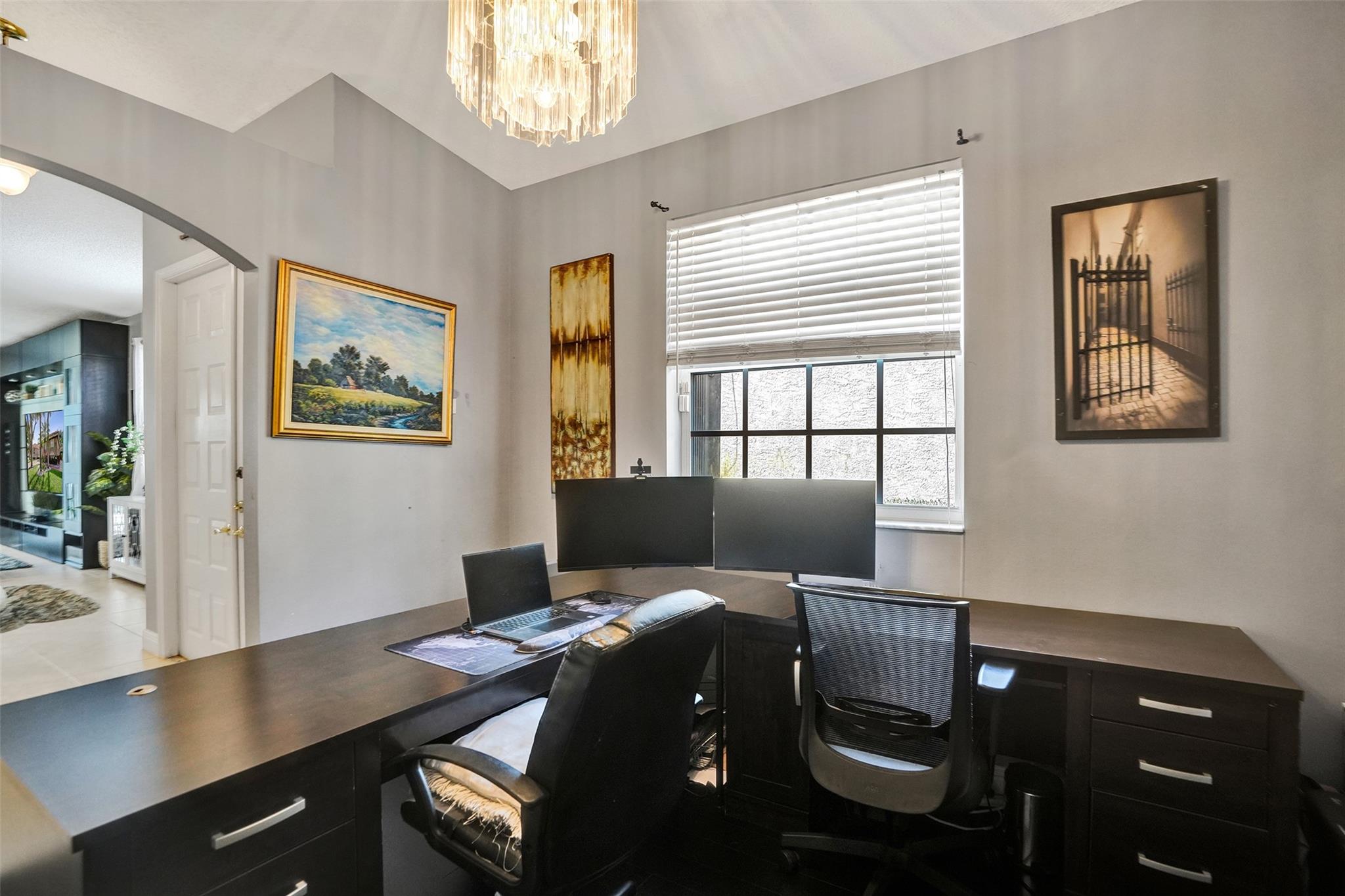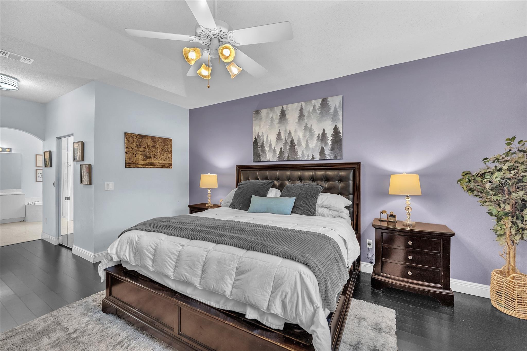 Located in the desirable subdivision of Parkland Place, this 4 bedroom, 2 bath home offers 2,096 SF of refined living on a 5,271 SF lot. The split, open concept floor plan provides flexibility, with the 4th bedroom currently serving as an office. The renovated kitchen features white quartz countertops and island, stainless steel appliances, wine cooler, and new dishwasher. The primary suite includes two walk in closets and a spacious bathroom with dual shower heads. All bedrooms feature bamboo wood flooring for a warm and modern touch. Outdoor living is complete with a screened patio and travertine pavers. Low HOA of $195/month includes lawn care, gate, and neighborhood park. Conveniently located near major highways in an A rated school district. Don't miss your chance to own this gem!