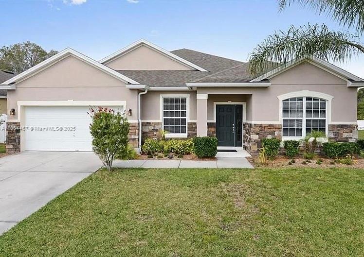 Welcome to this inviting 4-bed, 3-bath residence. Move-in ready, it features solid block construction, elegant porcelain tile floors, and arched accents. A flexible layout includes formal dining and living rooms plus a spacious family room that flows into a chef’s kitchen with granite countertops, solid wood cabinetry, and nickel finishes. Large sliders open to a covered lanai and fenced backyard ideal for relaxing or entertaining. The primary suite offers patio access, two walk-in closets, and a spa-style bath with dual vanities, a corner tub, and a glass shower. A laundry room with extra storage, a two-car garage and proximity to Lake Tohopekaliga, Lake Nona.