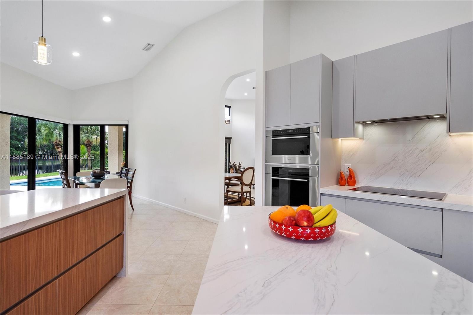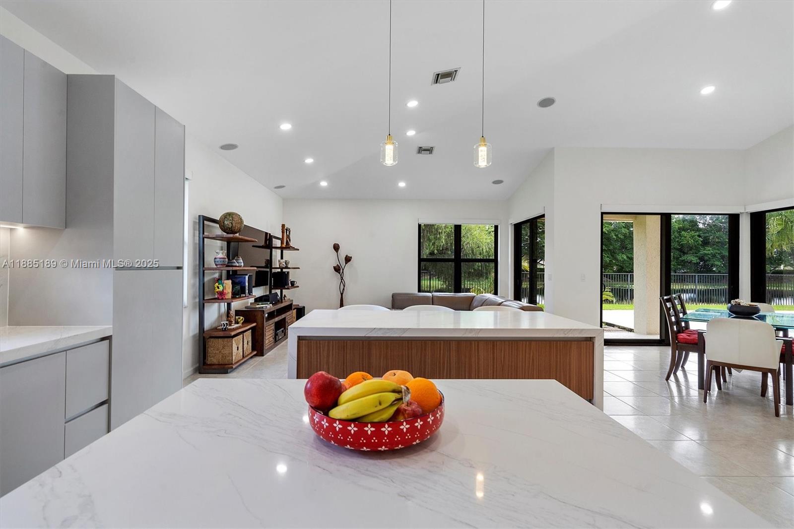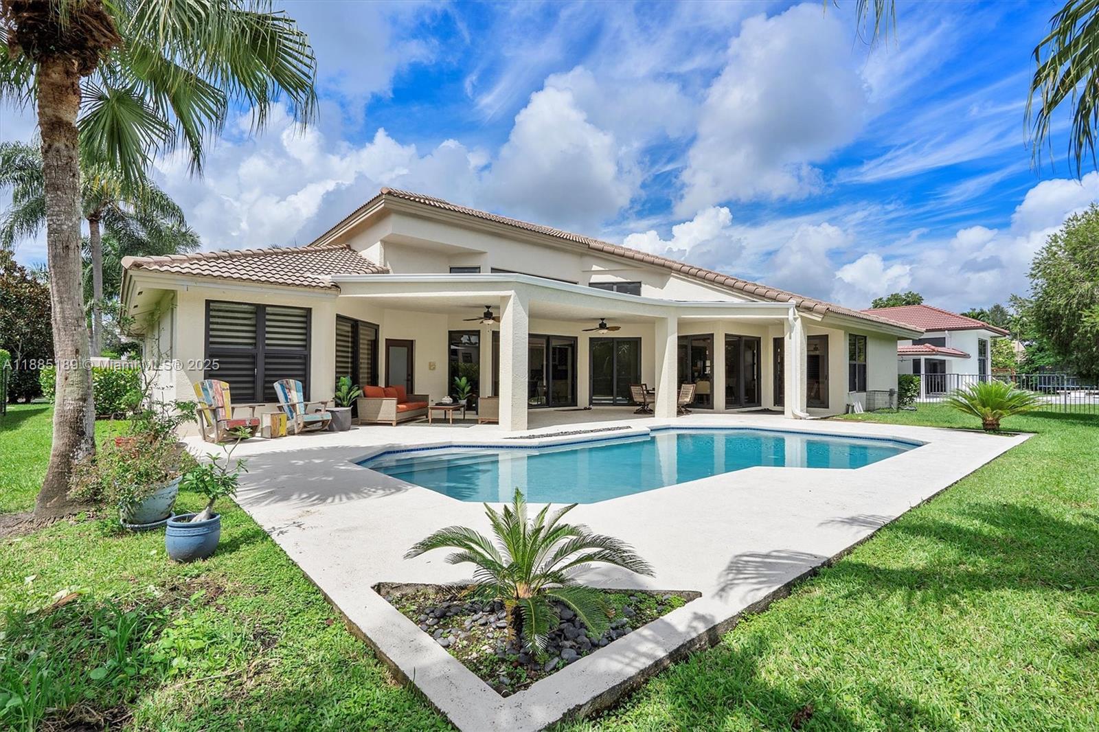 LAKESIDE LIVING! Weston’s Palm Island. Remodeled 5 bedrooms, 4 bathrooms one-story lakefront home. Well thought out floor-plan with expansive living room and dining room high ceilings full of natural light, 2025 modern kitchen with high-end appliances open to the family room where you will find elegance and comfort. The well appointed primary suite offers a spa-style retreat. High-Impact windows and doors throughout. The outdoors boast a saltwater pool with magnificent lake views, covered patio perfect for entertainment. Gated community conveniently located near park, A+ schools, shopping and dining!