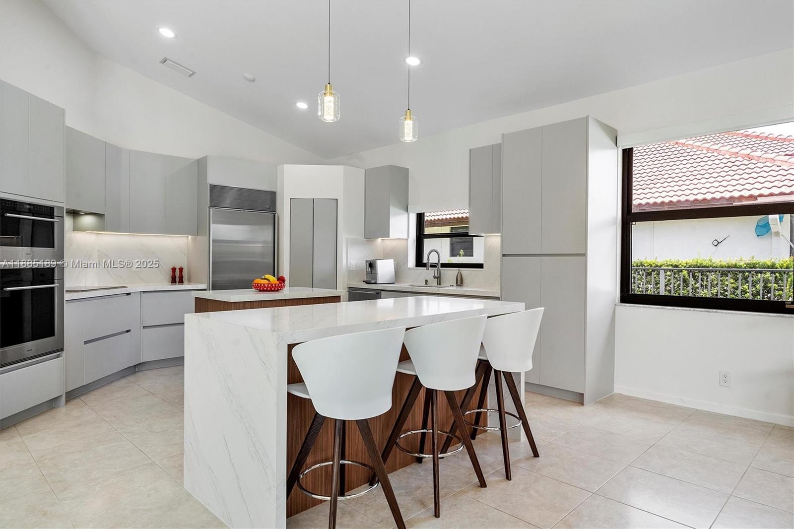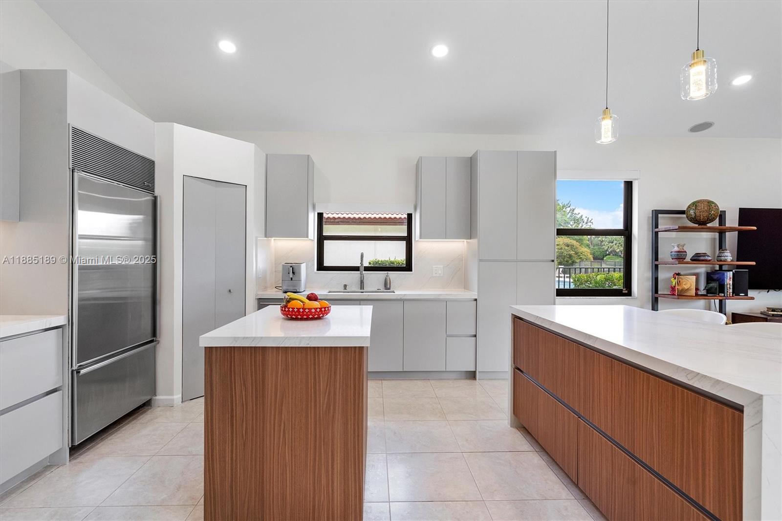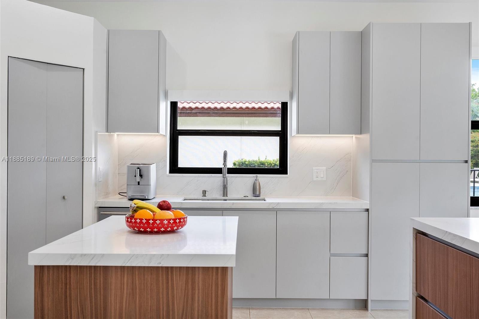 LAKESIDE LIVING! Weston’s Palm Island. Remodeled 5 bedrooms, 4 bathrooms one-story lakefront home. Well thought out floor-plan with expansive living room and dining room high ceilings full of natural light, 2025 modern kitchen with high-end appliances open to the family room where you will find elegance and comfort. The well appointed primary suite offers a spa-style retreat. High-Impact windows and doors throughout. The outdoors boast a saltwater pool with magnificent lake views, covered patio perfect for entertainment. Gated community conveniently located near park, A+ schools, shopping and dining!