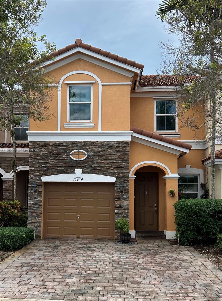 Welcome to your dream home in the gated community of Emerald Creek Townhomes! This exquisite 4-bedroom, 2½-bath residence offers impact windows, a graceful Mediterranean style, and volume ceilings. The updated kitchen features granite counters, stainless steel appliances, and wood cabinetry. New laminate flooring on the stairs and second floor, while the first floor is finished with elegant tile. Spacious bedrooms include walk-in closets and natural light throughout. Additional upgrades include exterior paint and pre-wired for ADT. Enjoy low HOA fees, a community pool, and professionally maintained landscaping. Prime location: walking distance to American Heritage School, close to I-595, I-75, Sawgrass Mills Mall, and top-rated public schools. This move-in-ready gem won’t last!