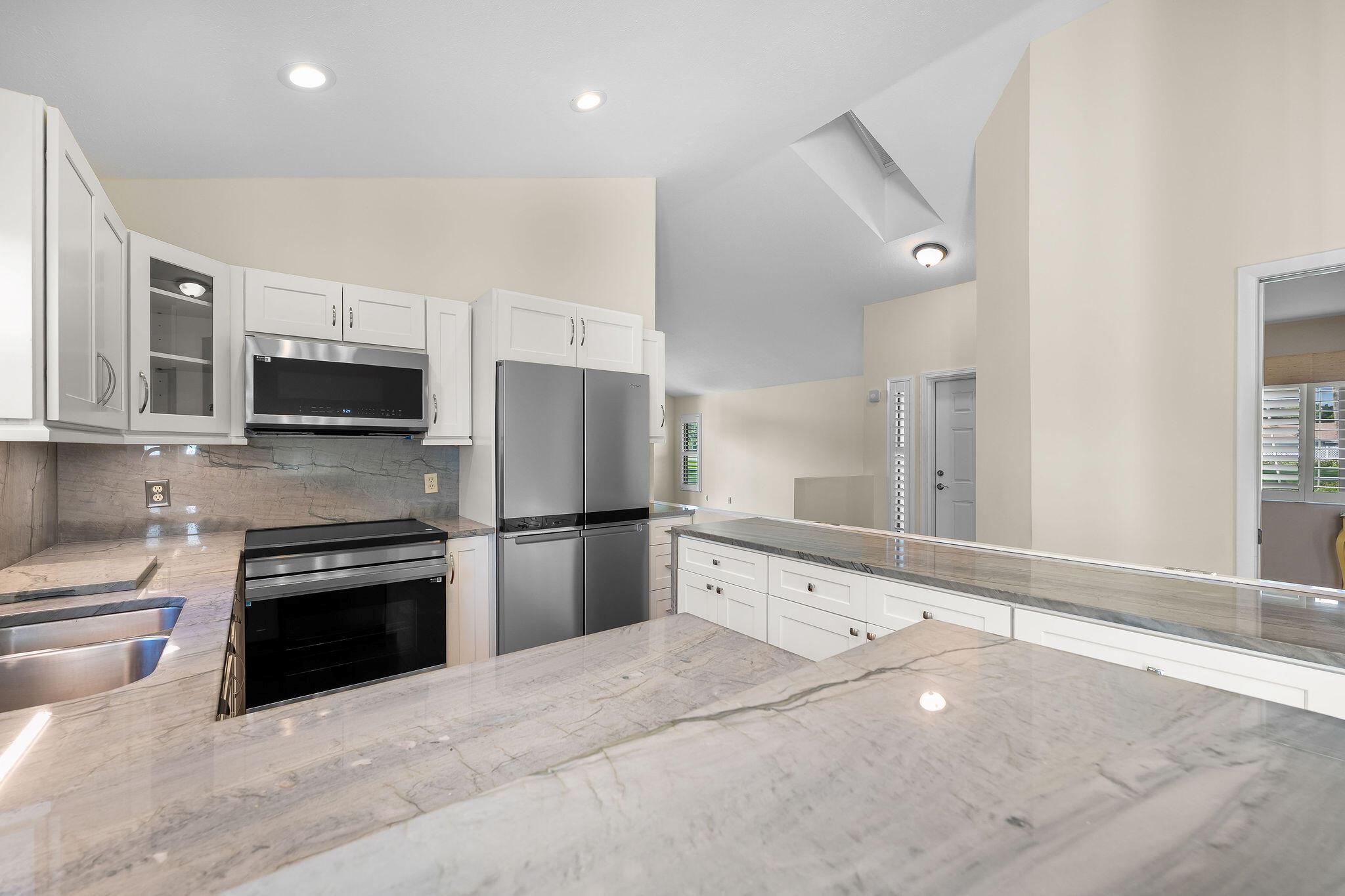 Enjoy peaceful lake views from this well-maintained 3-bedroom home in Heritage Ridge North. Set on nearly one-third of an acre on a waterfront peninsula, the home features vaulted ceilings, Brazilian Cherry engineered wood floors, and an updated kitchen with wood cabinets and Quartzite counters. The spacious primary suite includes dual closets and access to the screened patio. Recent upgrades include a 2021 roof, 2024 impact windows and doors, NEW kitchen appliances, new garage door, and a whole-house generator with an underground propane tank. The community offers a pool, tennis, pickleball, and golf options. Close to parks, beaches, shopping, and dining.