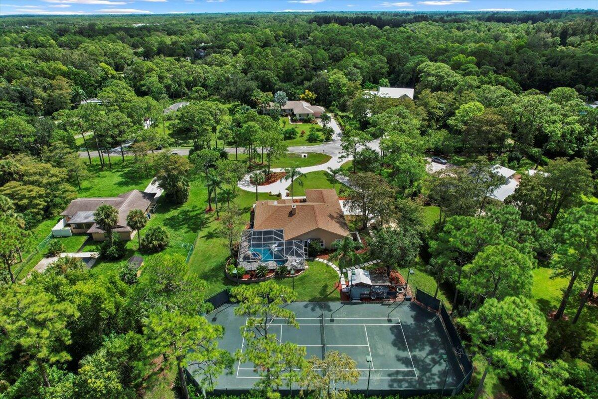 Private Tennis Court! Is tennis your dream? Then this is your dream come true--the ball is in your court! Set at the end of a quiet, paved cul-de-sac is a beautifully landscaped 1.04 acre lot with landscape lighting and a cobblestone driveway. This distinctive 3-bedroom plus den, 3-bath residence is a private paradise for tennis lovers and outdoor enthusiasts. Play every day on your private, regulation-size, Har-Tru (clay) tennis court with eight professional 1,000-watt metal-halide lights (newer ballasts and bulbs) for evening matches and a 10-foot fence on 3 sides for optimal play. An automatic above-ground sprinkler, fed by well water, keeps the court in peak condition. Between sets, relax in the stunning 10' x 20' cedar gazebo with Trex flooring, ceiling fan, power, lighting