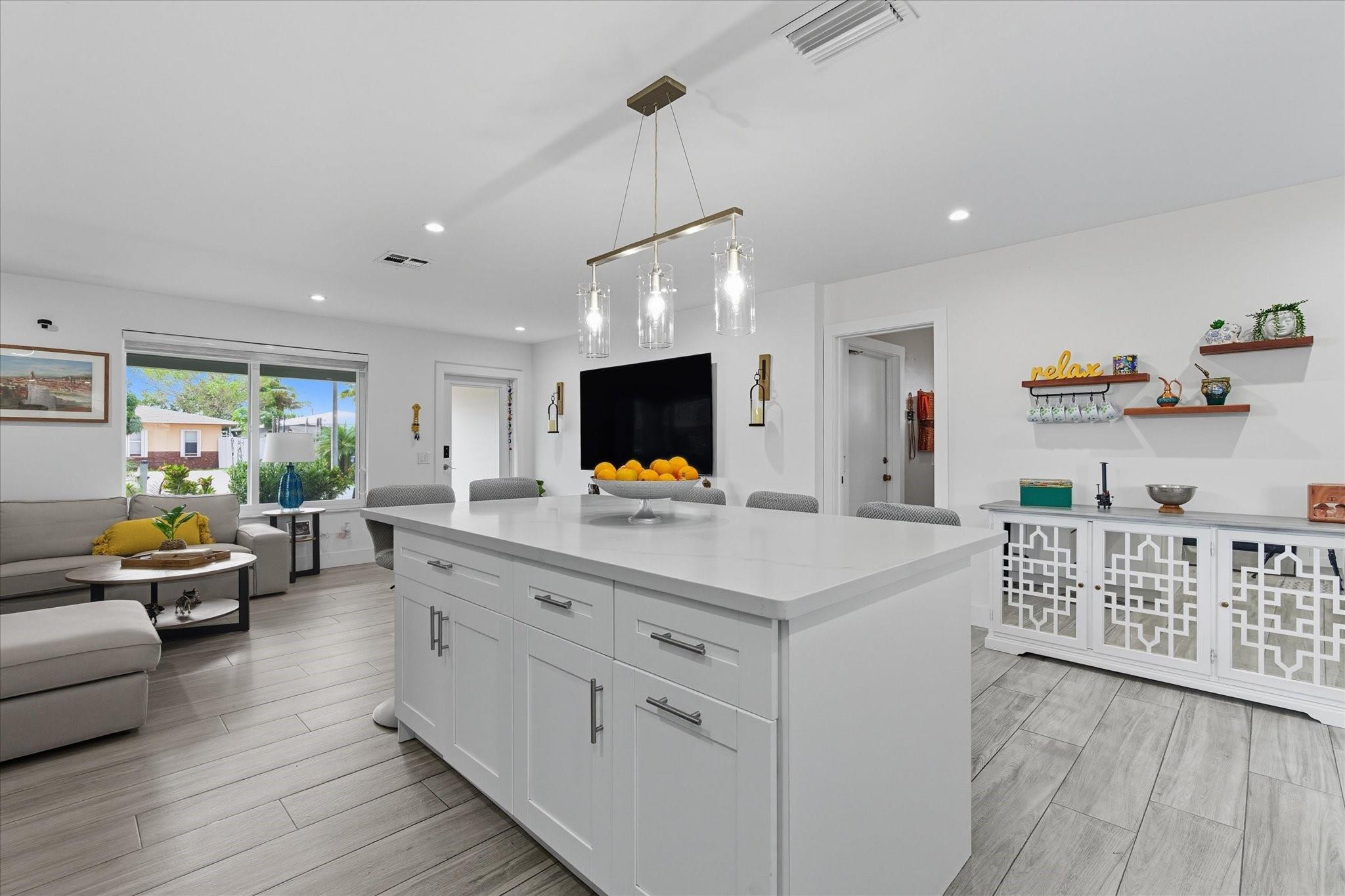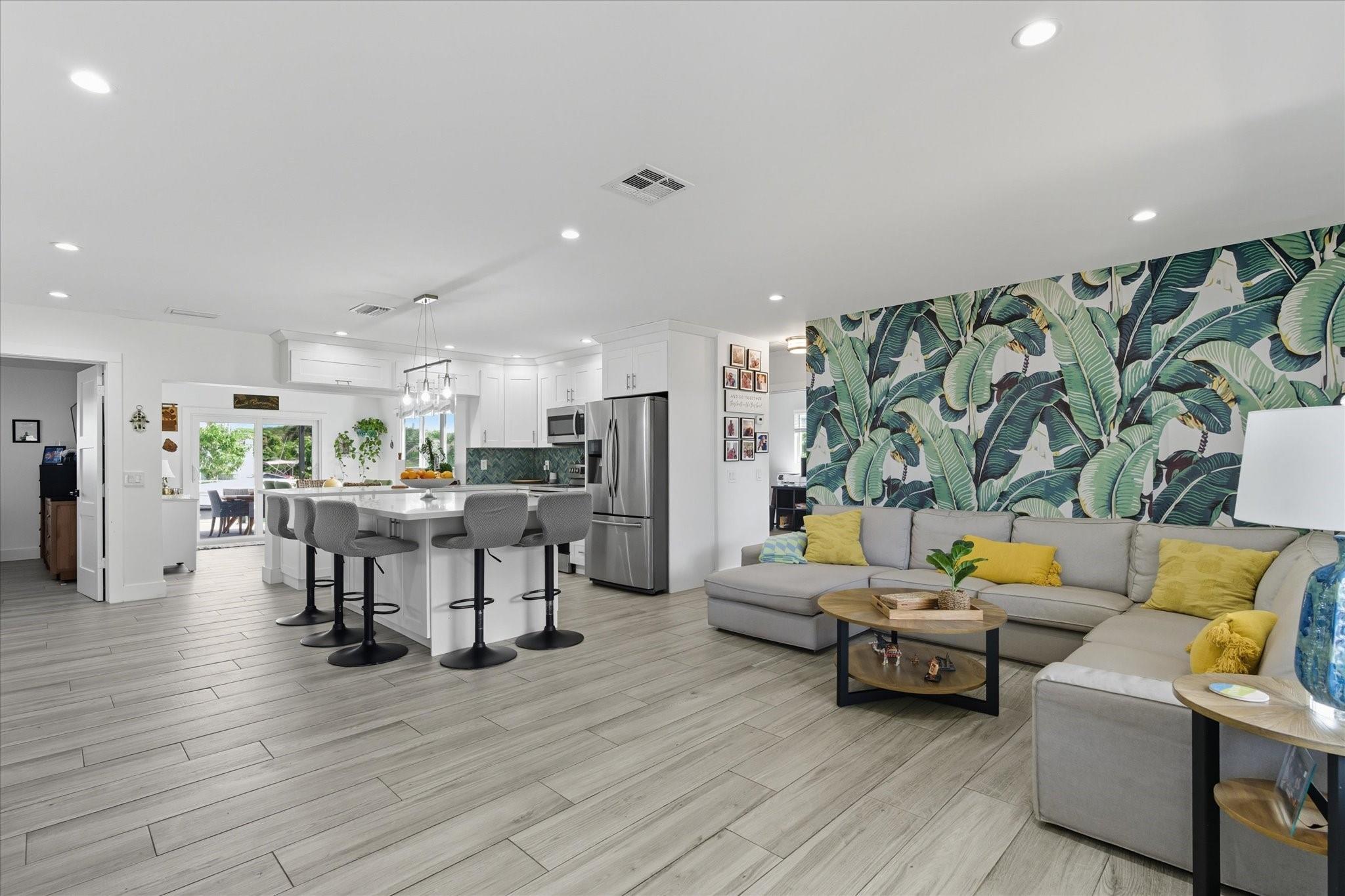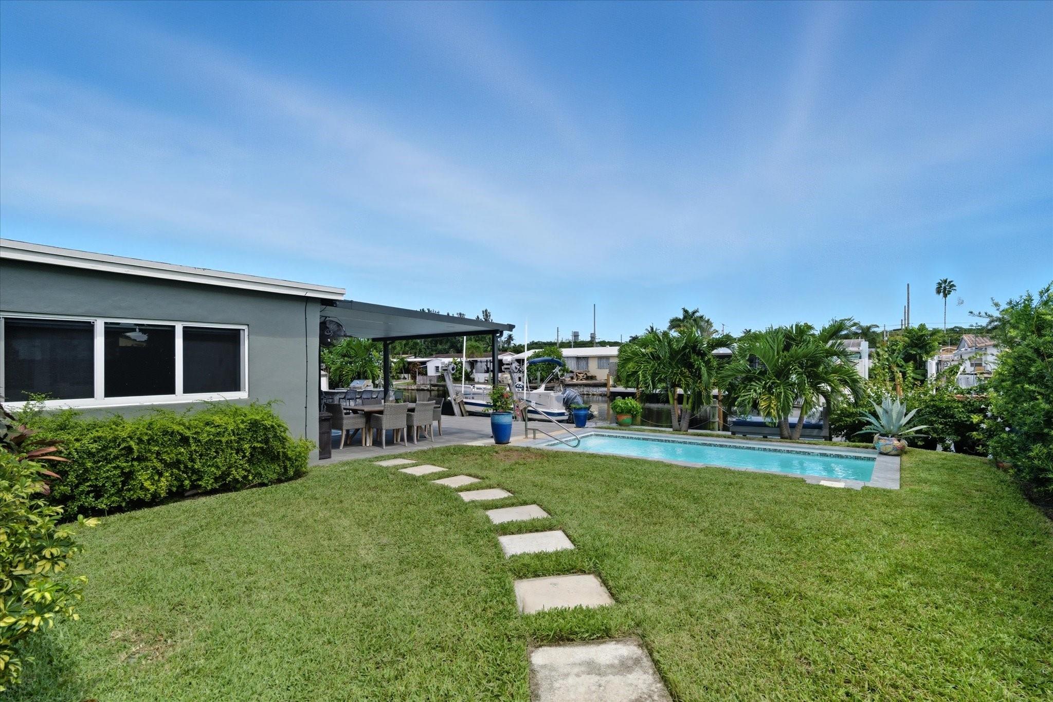 Rare opportunity to own a beautifully renovated waterfront retreat with 3 bedrooms and 2.5 baths. This home offers a formal dining space, chef’s kitchen with stainless appliances, white cabinetry, and a large island with seating. LVP flooring flows through the main living areas, while the laundry room provides full-size washer/dryer and generous storage. Outdoors, enjoy a fenced backyard oasis with pool, sundeck, covered patio with pavers, summer kitchen/bar, cabana bath, and dock with lift, power, and dual levels for easy boat loading. Boasting 65’ of direct ocean-access waterfront, plus a new metal roof, updated plumbing/electrical, and impact windows/doors. No HOA! With so much to love about this home the only way to take it all in is to tour it before it's gone.