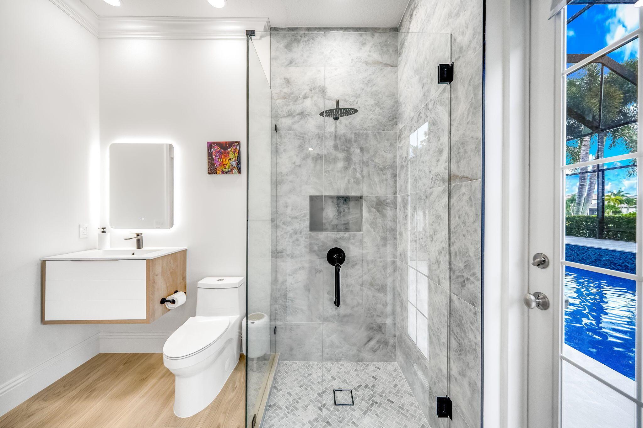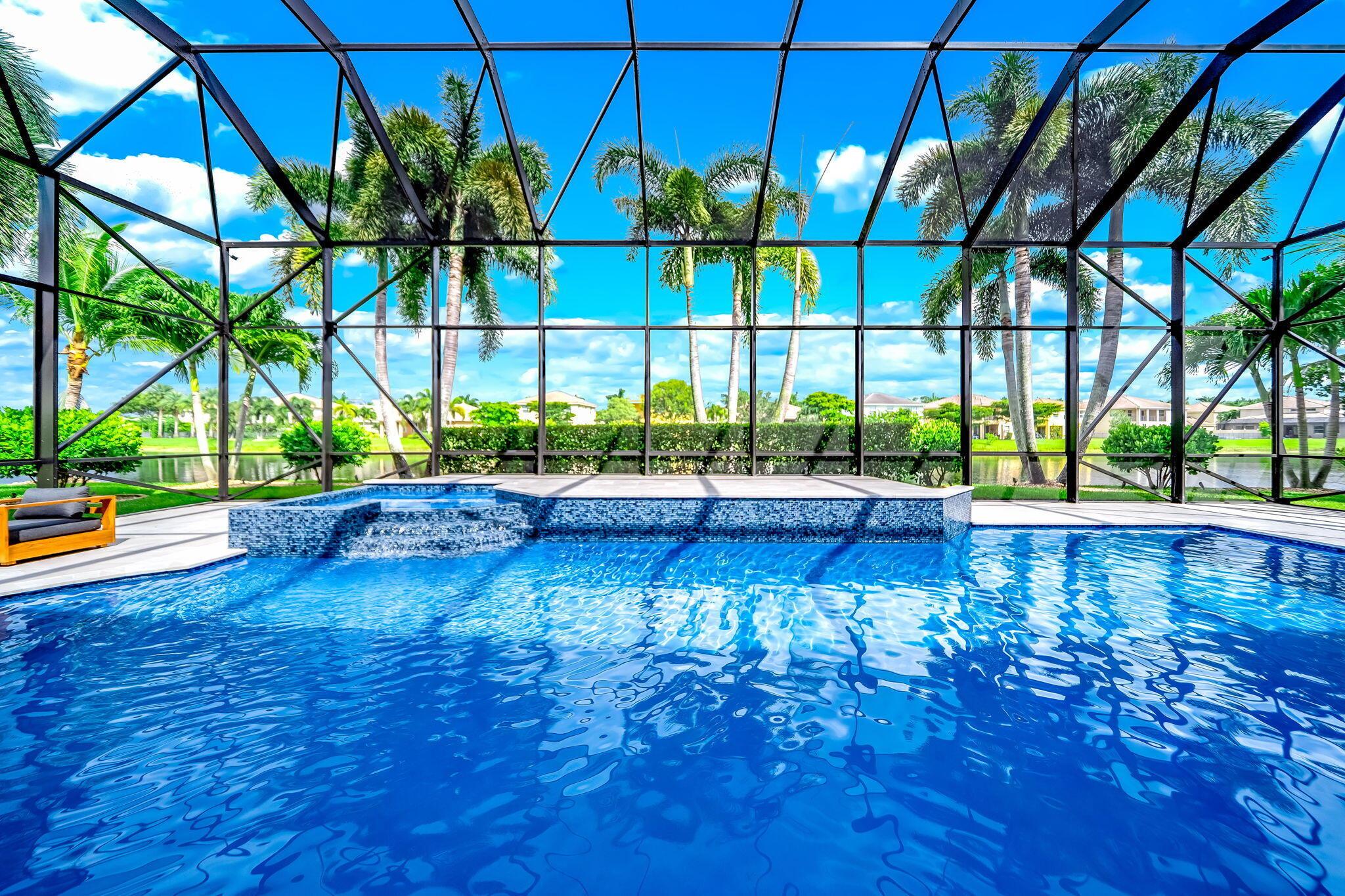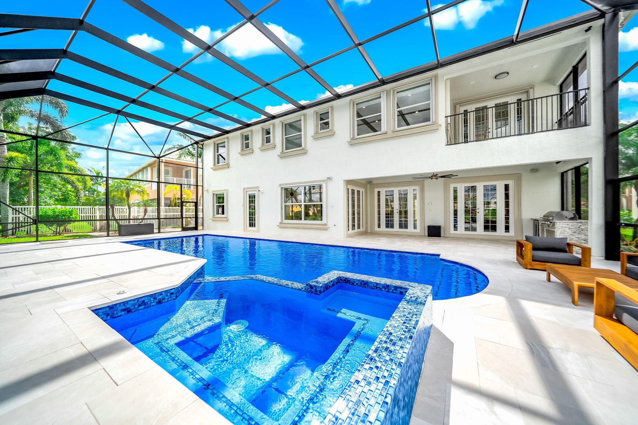 Welcome to Olympia! 5 bedroom, 5.5 bath estate home with office/den, huge flex room and loft area. Two-stories screen enclosure with sun protection top screens. Second level balcony. Humongous master suite wing with freestanding jacuzzi tub. Property outlines multiple built-ins throughout, top-of-the-line finishes, fully variable speed HVAC systems, multiple iPads and Jandy panel for smart home integration. Custom white oak stair railing with stainless steel rods. Walnut wood veneer wall panels entertainment TV wall. Circular driveway with lush landscape. Enormous pool with spillover spa and marble deck. Summer kitchen with 42'' 5-burners grill. Several smart features. Complete air conditioned gym and much more. Very unique property located in resort-style Wellington gated community.
