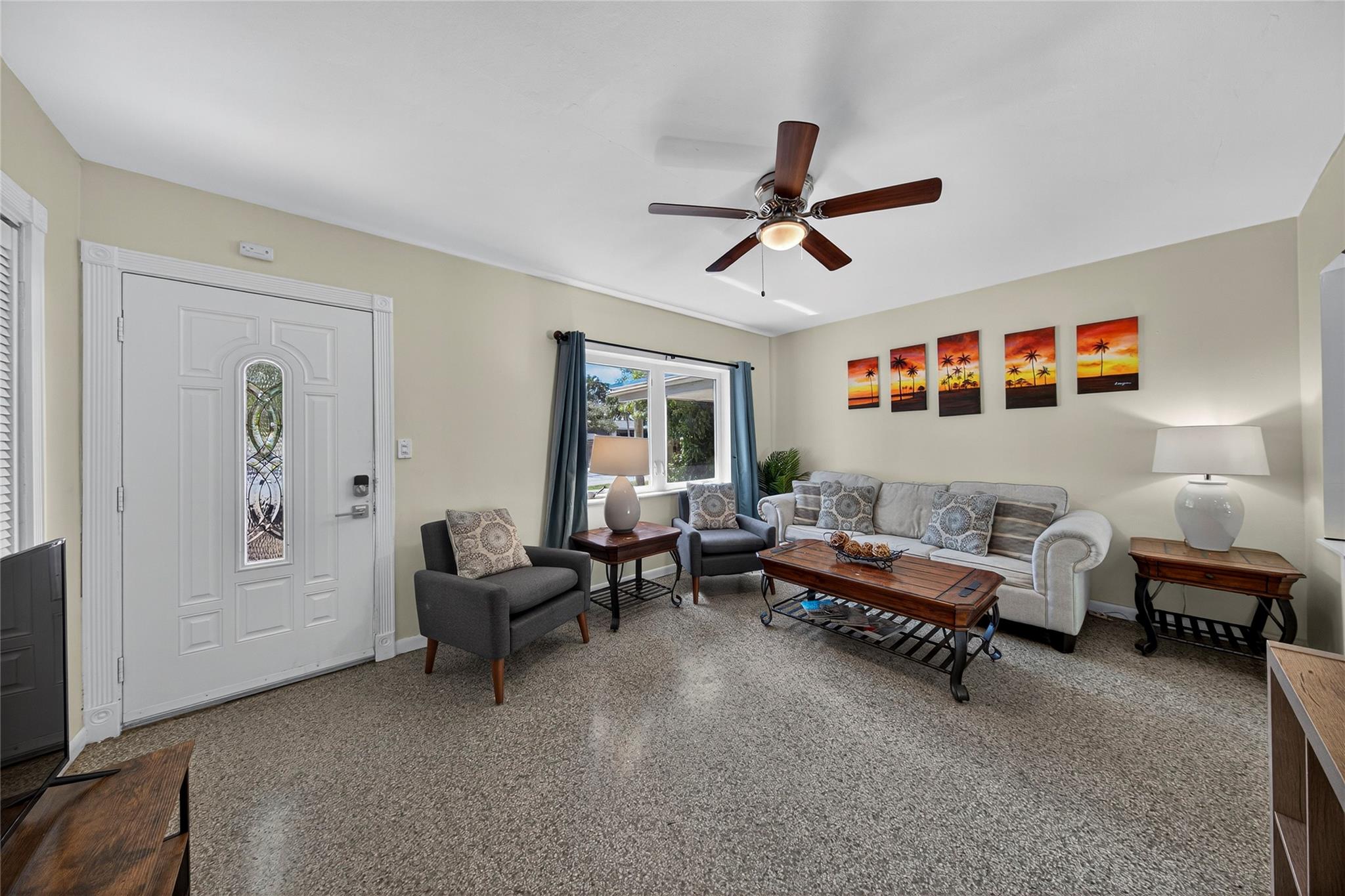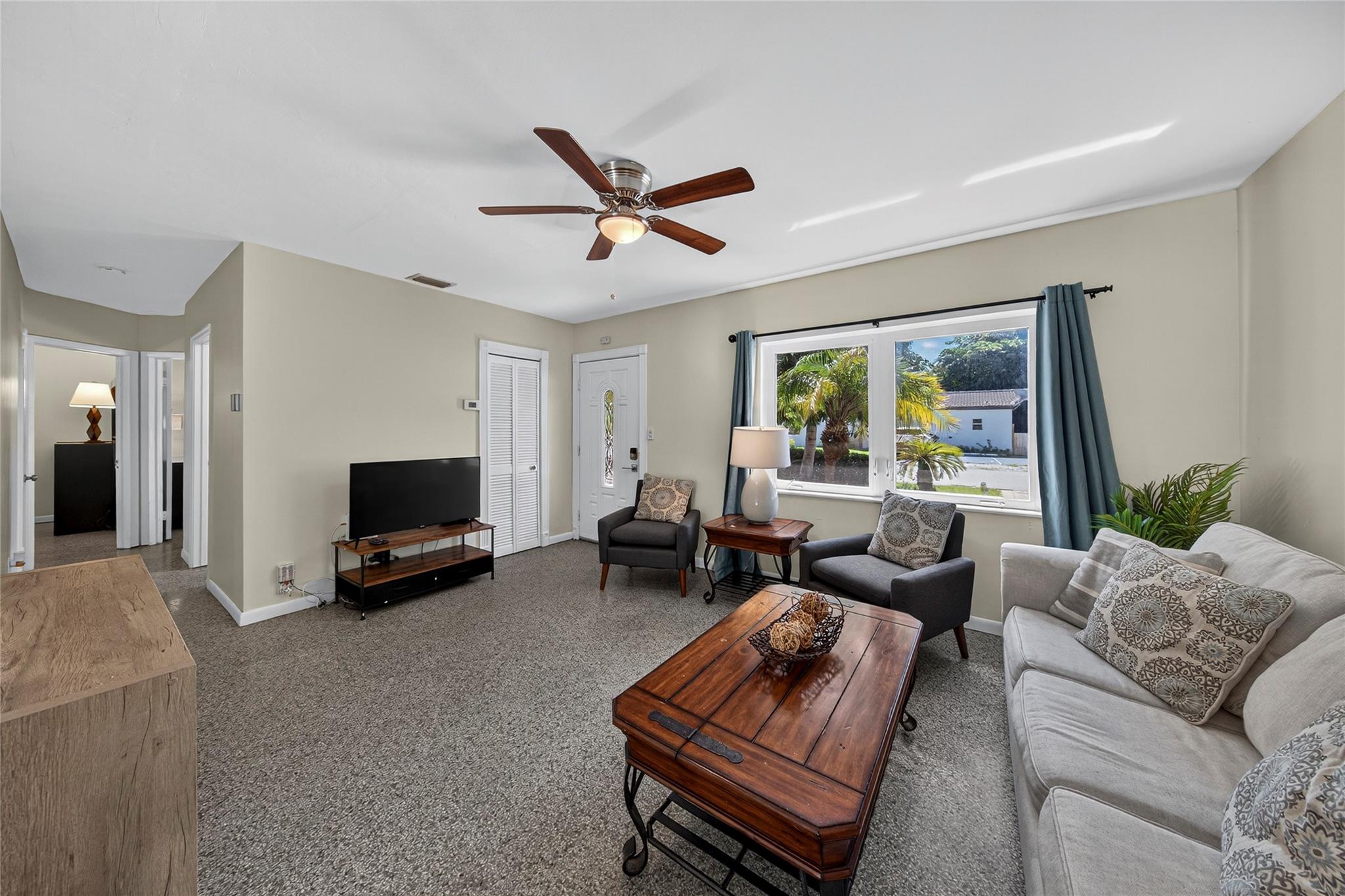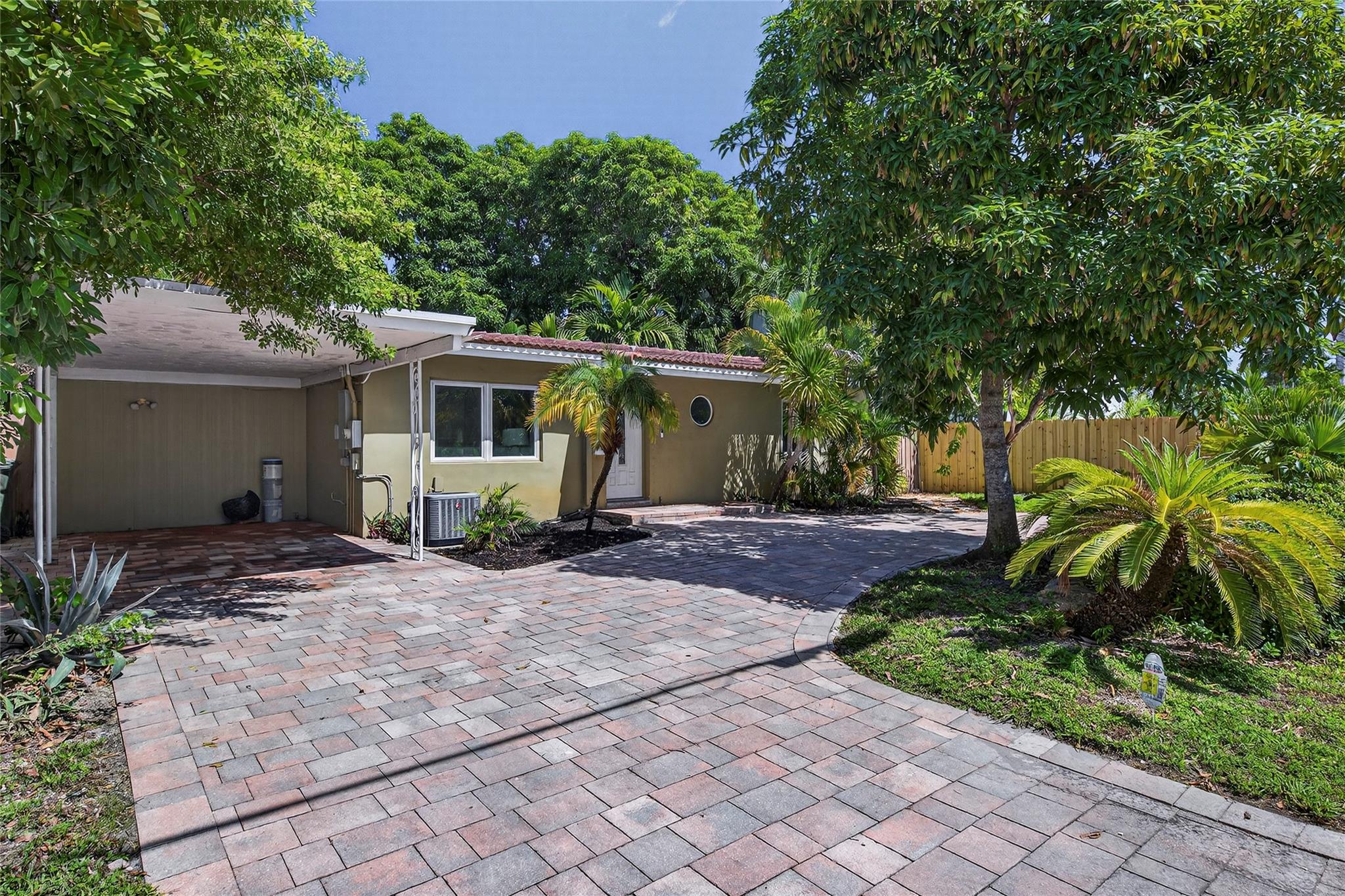 HIGHLY desired Poinsettia Heights neighborhood gem! Updated kitchen with granite counters, large pantry and snack counter facing the beautiful pool area. Primary suite offers renovated bathroom with walk-in shower and walk-in closet split from the other two bedrooms. Nicely updated guest bathroom has a tub and shower combination and large linen closet. Extra closet in the hallway. VERY good condition terrazo flooring throughout. Large heated pool and hot tub are in a VERY private backyard. Home offers a ton of natural light, a carport and a nice circular driveway made out of pavers. Ideal for a primary home, second home or short term rentals! No HOA. Close to the beach, downtown and 15 mins to the airport.