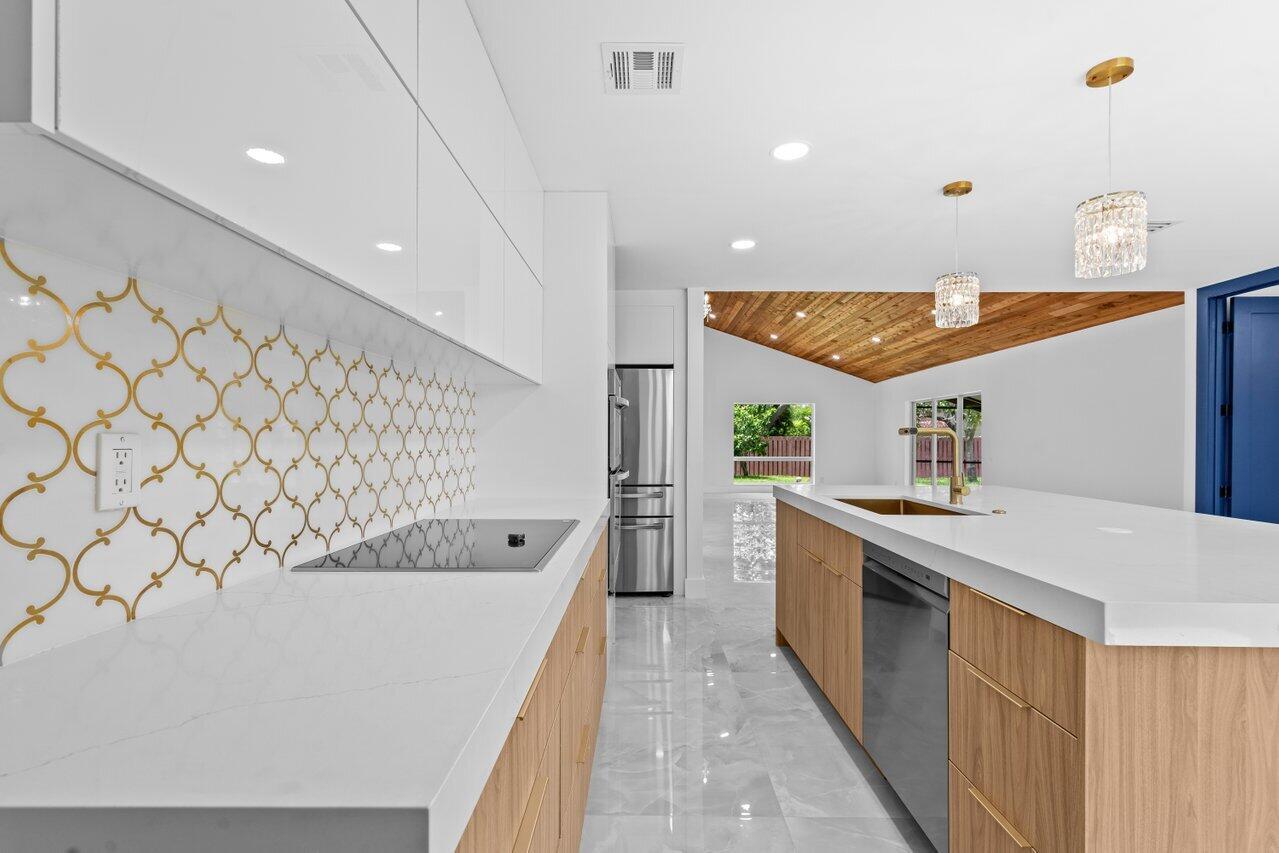 Experience Boca living at its finest in this 3 bedroom 2 bath PLUS den/office area stunning corner-lot home. located in the highly sought-after, family-friendly neighborhood of Timbercreek! Situated on an expansive 9,879 sq ft lot, there's plenty of space to build your dream pool and still enjoy a spacious backyard. This home has been fully renovated from top to bottom, featuring a sleek modern kitchen with a quartz island, elegant porcelain tile flooring throughout, beautifully updated bathrooms, and much more! Zoned for top-rated schools and just minutes from parks, shopping, and dining--this home truly has it all. Don't miss your chance to own a turnkey gem in one of Boca Raton's most desirable communities!