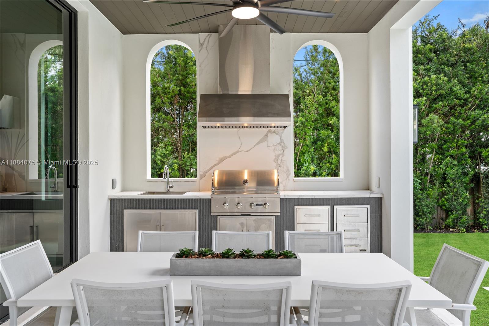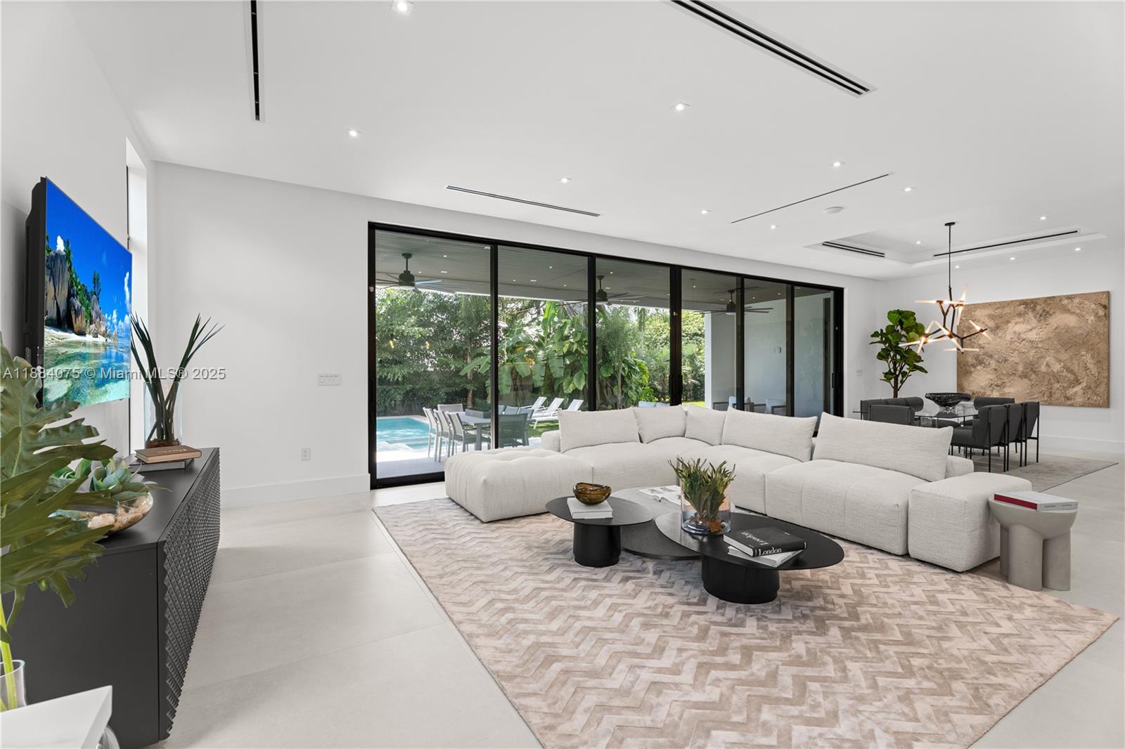 Brand-new construction by Pacheco Architecture, this contemporary-modern estate offers 6 beds plus office with 7.5 baths total 7,142 sq. ft. of construction. The grand entry with double-height ceilings opens to expansive living spaces. Massive floor-to-ceiling sliding doors lead to a covered terrace w/ fully equipped outdoor kitchen & private pool. The chef’s kitchen features top-of-the-line appliances, and an elevator connects to 4 upstairs bedrooms, including a luxurious master suite with private balcony, spa-like bath, and custom LED-lit closet. Features include a wine cellar, wet bar, 3-car garage, smart home tech, gates & lush landscaping. Perfectly located near top Miami schools, shops, dining and entertainment. Home is ideal for upscale family living and entertaining.