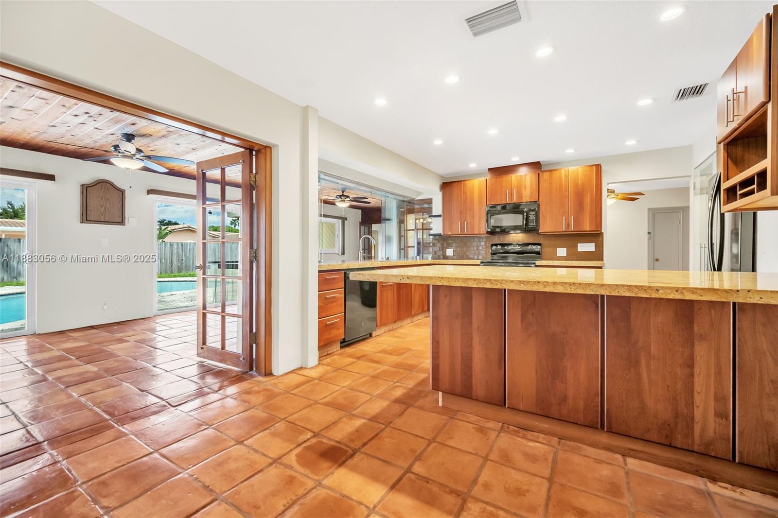 Warm and inviting describes this single home in Hollywood Hills. More than 2700 sq ft of living space, 3 bed, 2 bath with lots of natural light, extra room for home office or 4th bedroom. Fabulous chefs' kitchen with Cherry Wood soft closing cabinets, stone countertops and double oven. Open floor plan with pass through to Florida room. Impact windows throughout give you peace of mind. Smart home upgrades include WiFi thermostat and light switches, Ring doorbell and surveillance system with cameras. ADT wired home. Heated saltwater pool with safety fence. Centrally located near shopping, hospitals and major highways. Close to houses of worship. This home won't last long.