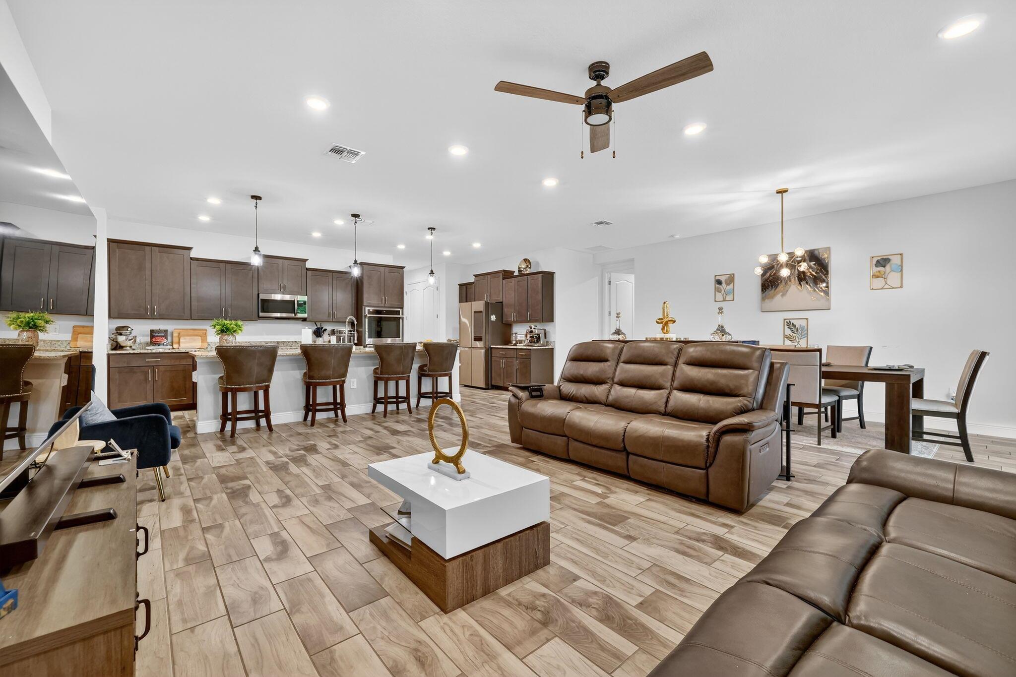Stunning Port St. Lucie Single Family Home, No Association, this Energy Efficient BEE Smart Home features 4 bedrooms 3 bathrooms 3 car garage with a large Flex/Bonus room, large Office with Double French doors, Chef Kitchen with 42'' Soft Close Wood Cabinets, Granite countertops, 12' Kitchen Island, Double Wall Ovens, extra-large Master Bedroom with a sitting room and 10' Tray Ceilings, His & Her Walk-in Closets, Master Bathroom has His & Her separate areas with a Large Shower and Soaker Tub, matching tile throughout the complete home, Energy Efficient LED Recessed Light throughout the house, large Screened Lanai, 2 Way Pest Prevention & Treatment System, Builder 10-year Limited Transferable Warranty, and much much more!!!