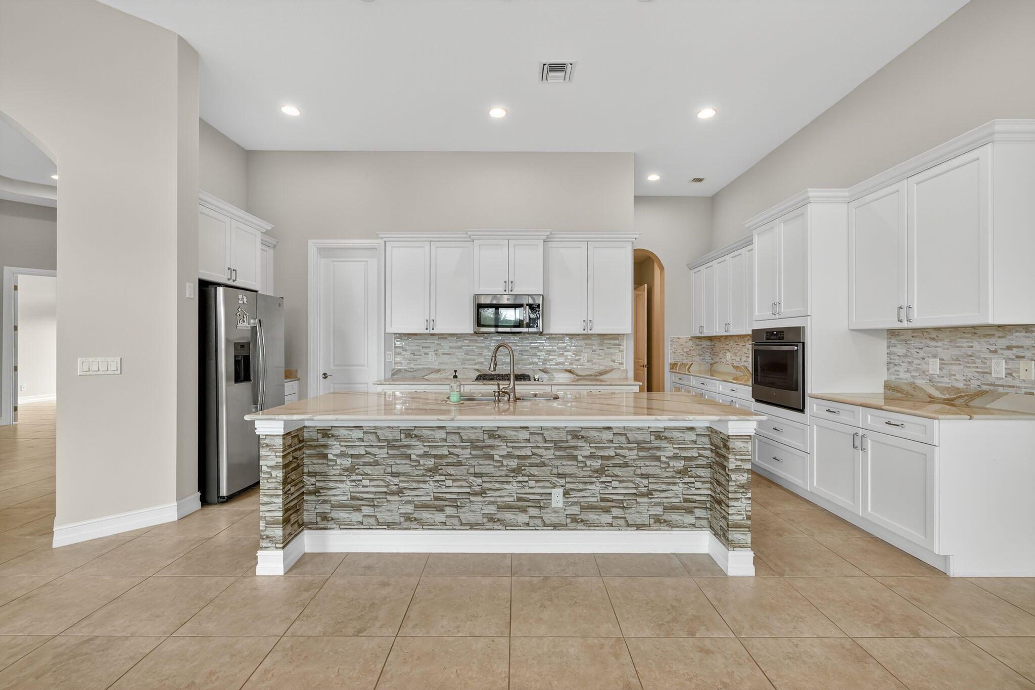 Elegant 4-bedroom, 4.1-bathroom home with an office, located at 2960 SW English Garden Dr in the prestigious Canopy Creek community by Kolter Group Builders. This single-story residence boasts a prime lot overlooking a spacious pool & tranquil lake-perfect for relaxing and entertaining. Designed w/ updates & upgrades, this home features a modern HVAC system with UV light, a whole-house generator, a water softener system. The screened porch provides a serene outdoor retreat, ideal for enjoying morning coffee or evening sunsets while taking in the breathtaking lake views. Recently added an awning extends shaded outdoor living, enhancing the space's comfort & usability. The primary bathroom includes a luxurious walk-in bathtub for easy showers.