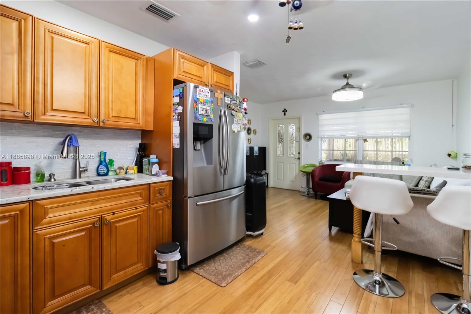 No HOA! Beautifully updated 2BR/1BA home with Den & office may be used as extra rooms. Split plan + in-law quarters in the heart of Miramar! Features a brand-new roof, new central A/C, and fully renovated kitchen & bath with modern finishes and newer appliances. Elegant wood flooring throughout. Front & back screened patios perfect for relaxing or entertaining. Complete new electrical system including updated exterior service by FPL for peace of mind. Plenty of parking w/ side space ideal for trailer or boat. Close to shopping, dining, schools & major highways.